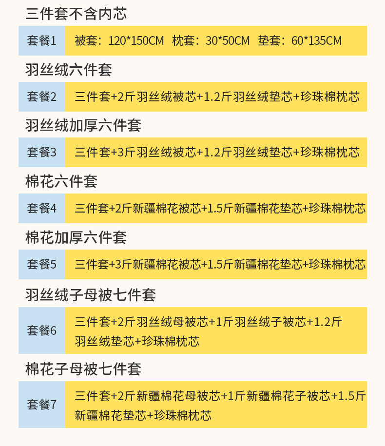 丝绵子母芯(1斤+2斤)七件套 | ¥127.00 |