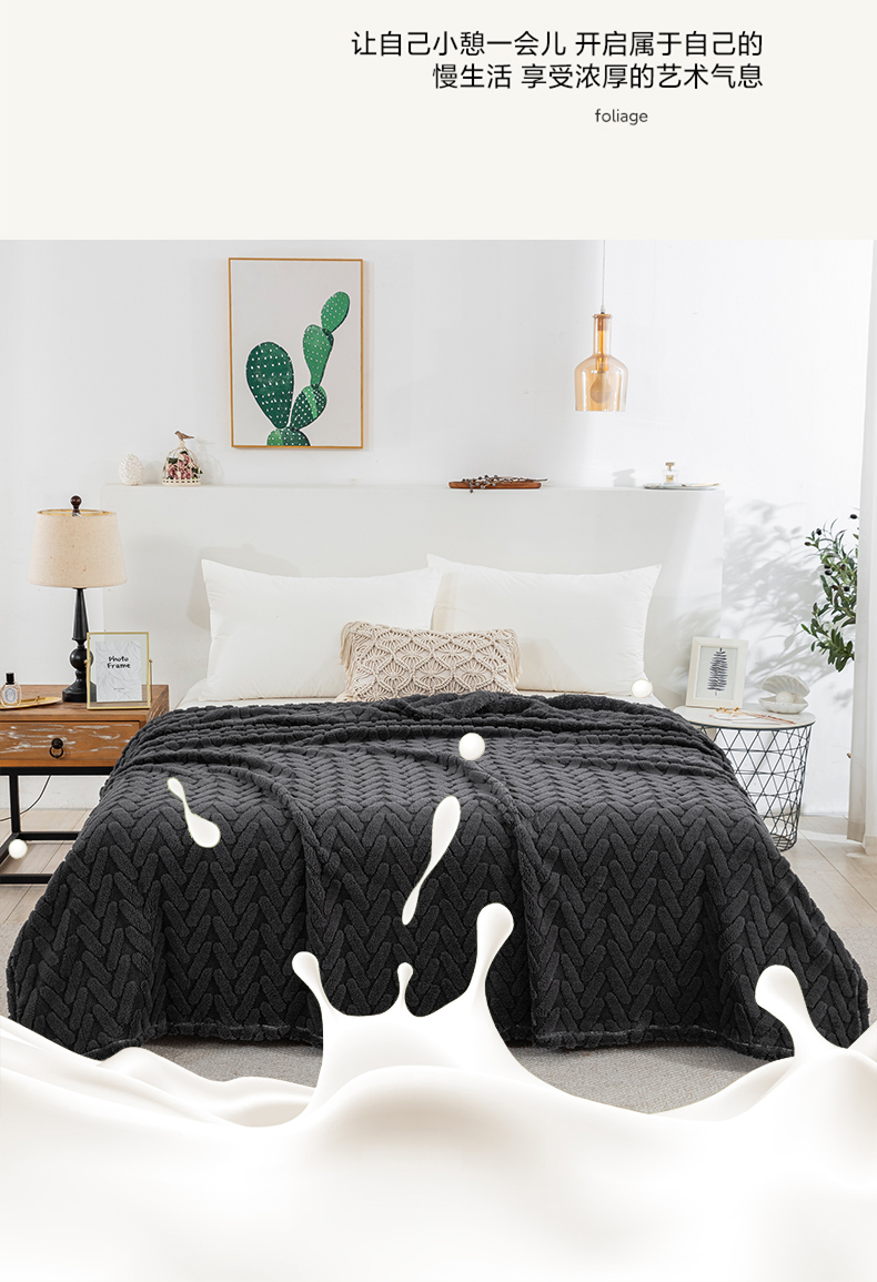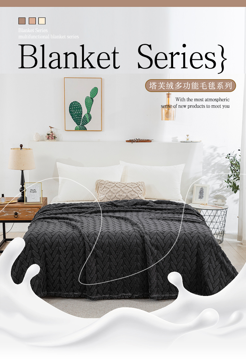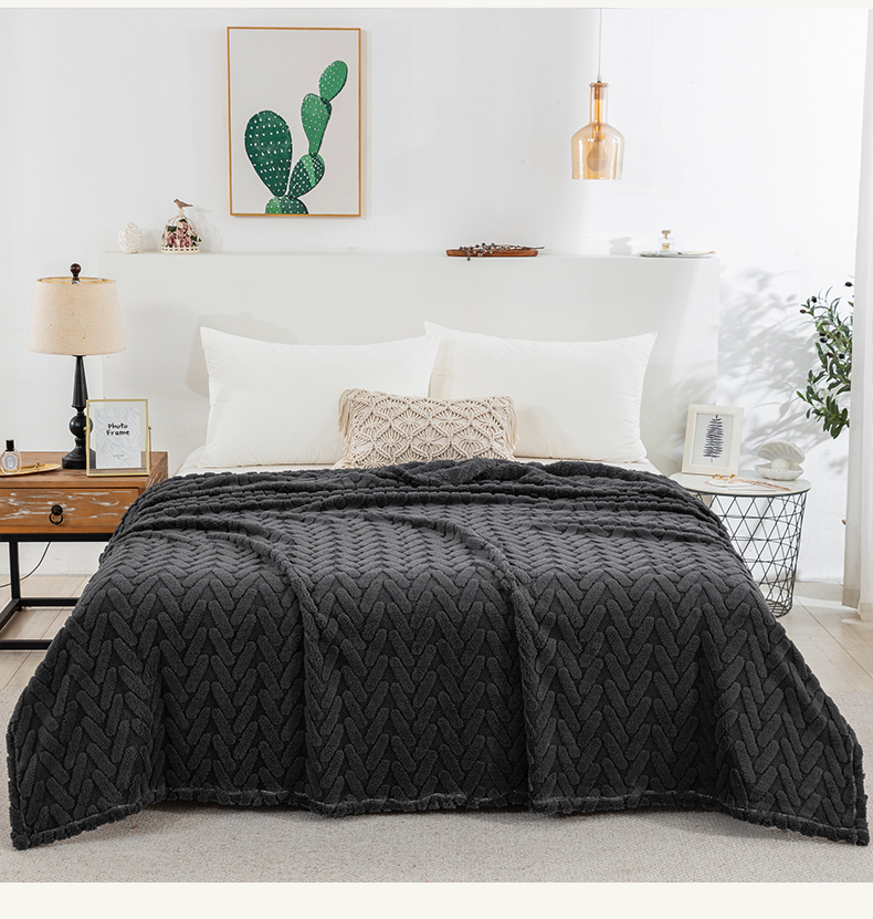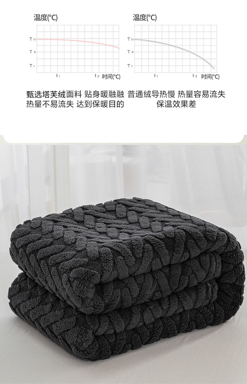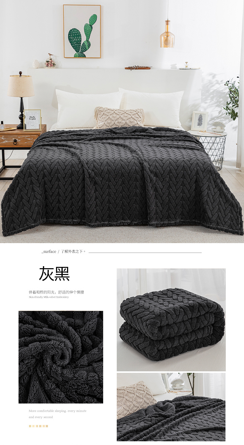 商品名称:一左一右 2024秋冬新款高克重单层双面提花塔芙绒毛毯舒棉绒毯多功能毯子外贸跨境电商 灰黑