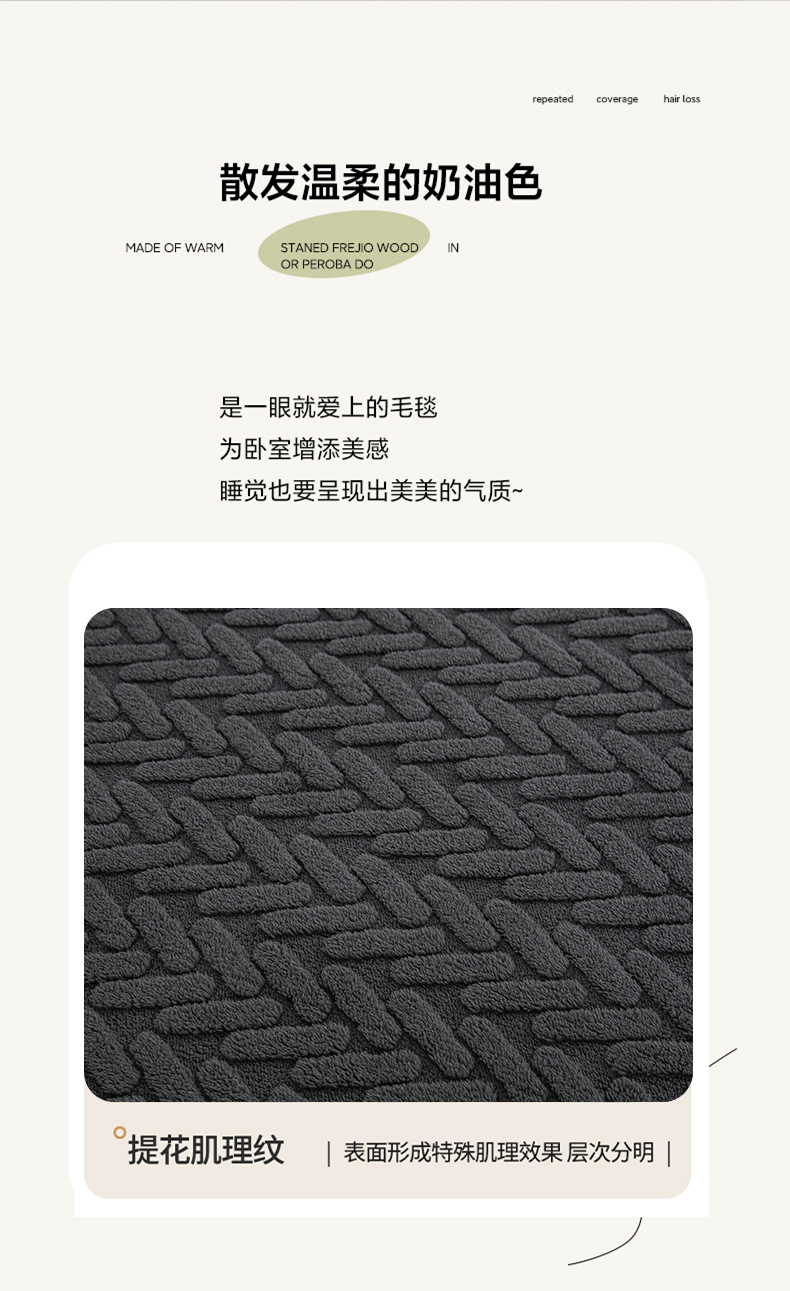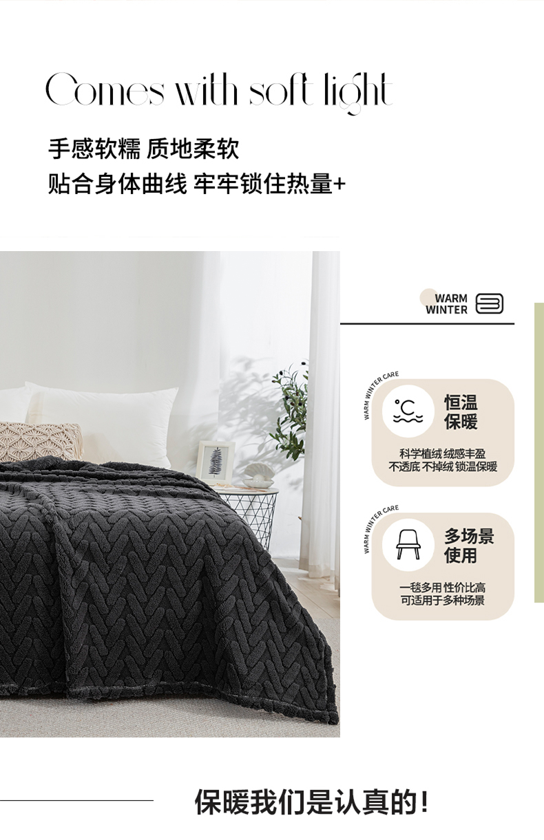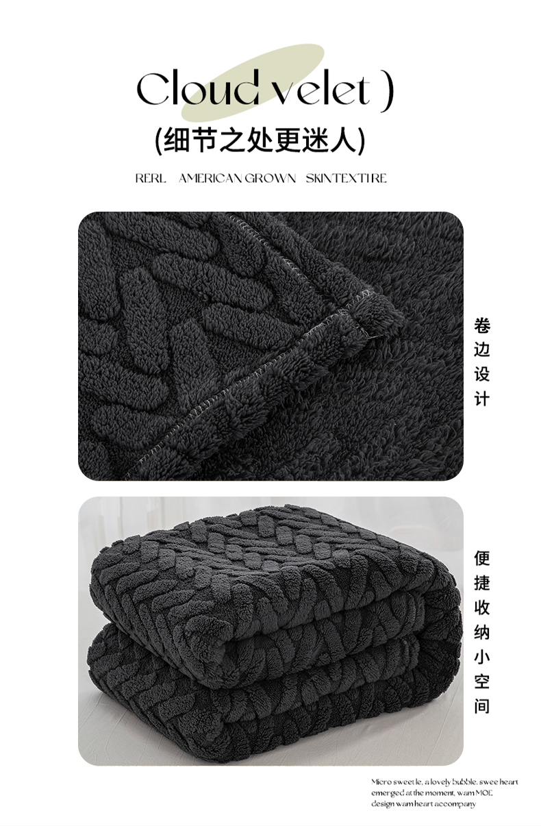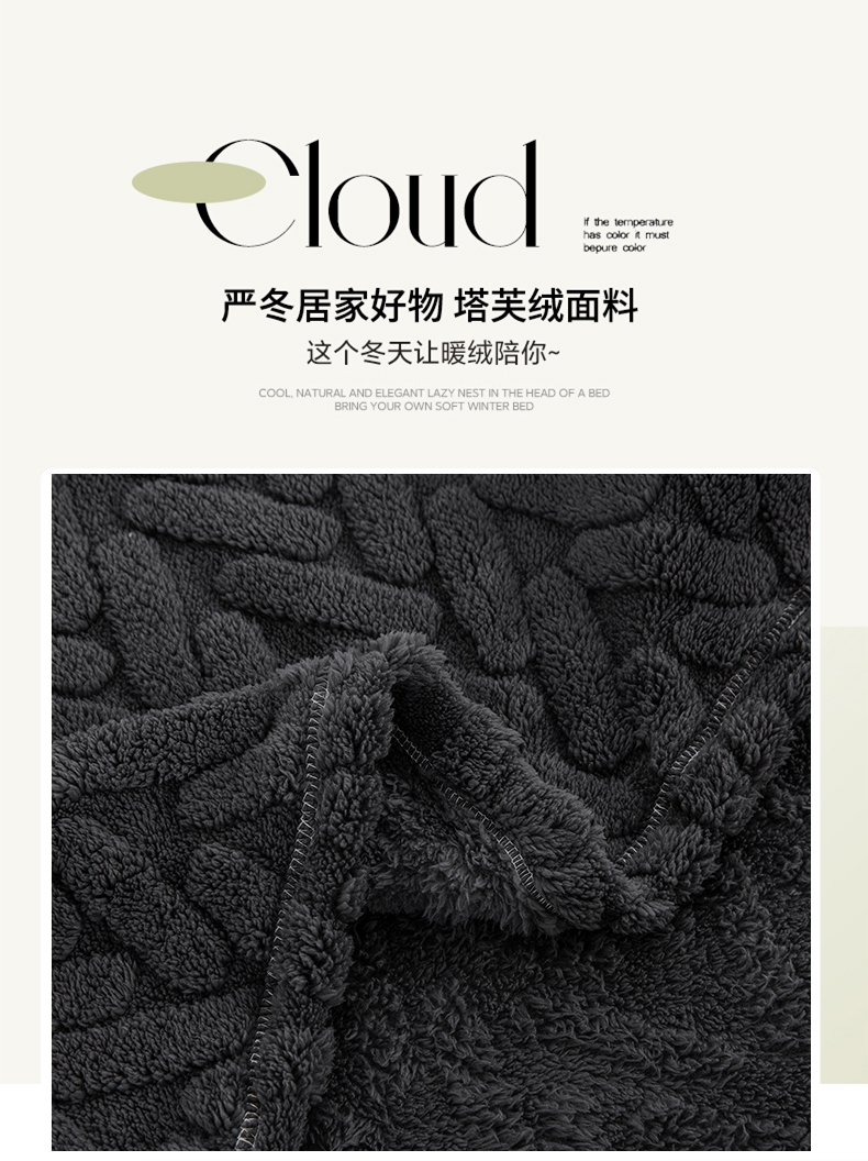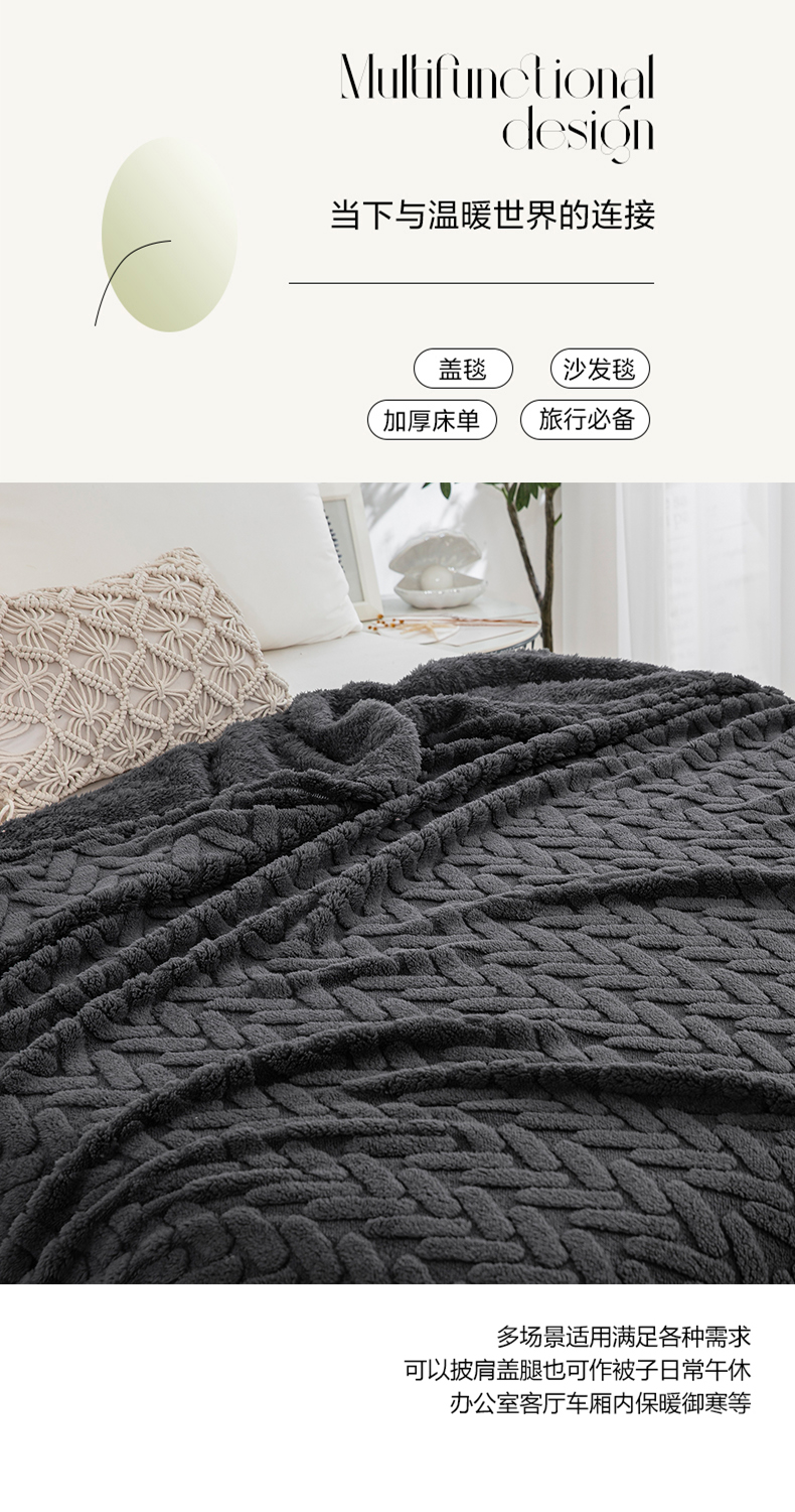 商品名称:一左一右 2024秋冬新款高克重单层双面提花塔芙绒毛毯舒棉绒毯多功能毯子外贸跨境电商 灰黑