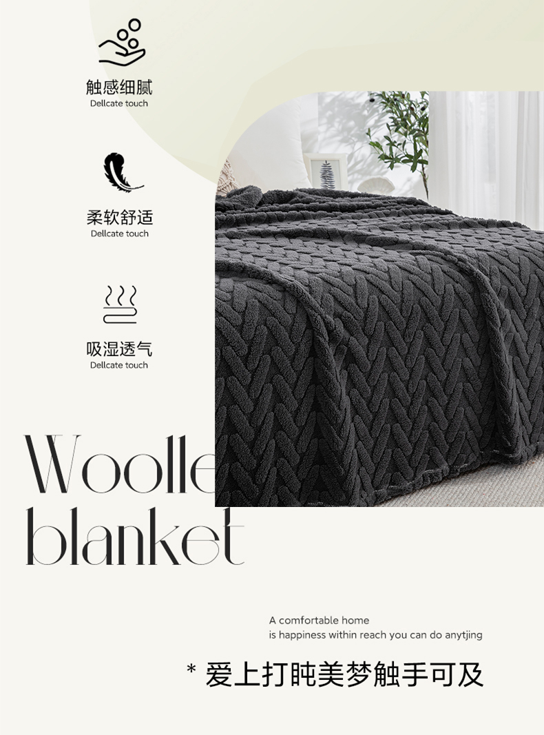 一左一右 2024秋冬新款高克重单层双面提花塔芙绒毛毯舒棉绒毯多功能毯子外贸跨境电商 灰黑