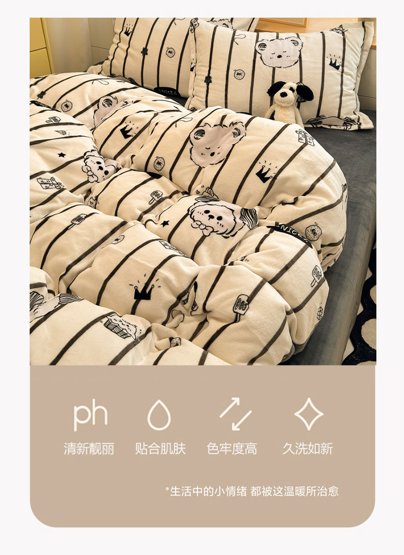 (总)德比尔斯 2025新款韩版白边黑边赫本风牛奶绒床盖四件套,爱心小熊,安妮粉,蝶恋花粉,法风小香,赫本-蝴蝶结粉,赫本-蝴蝶结咖,盛夏丛林,晕染花曳