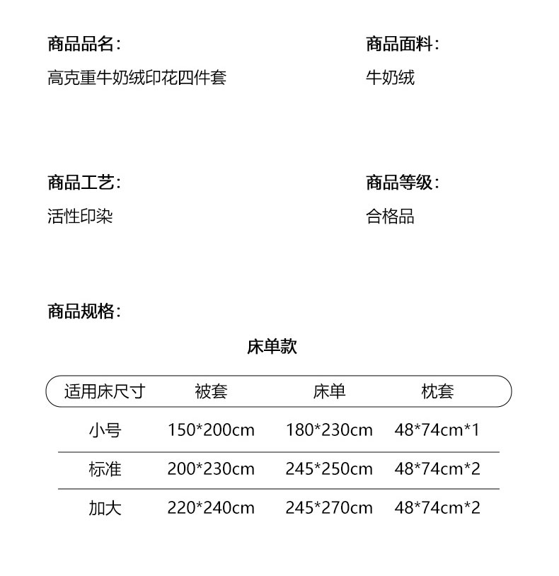 商品名称:德比尔斯 2025新款7斤重印花牛奶绒四件套爆款 尤卡布