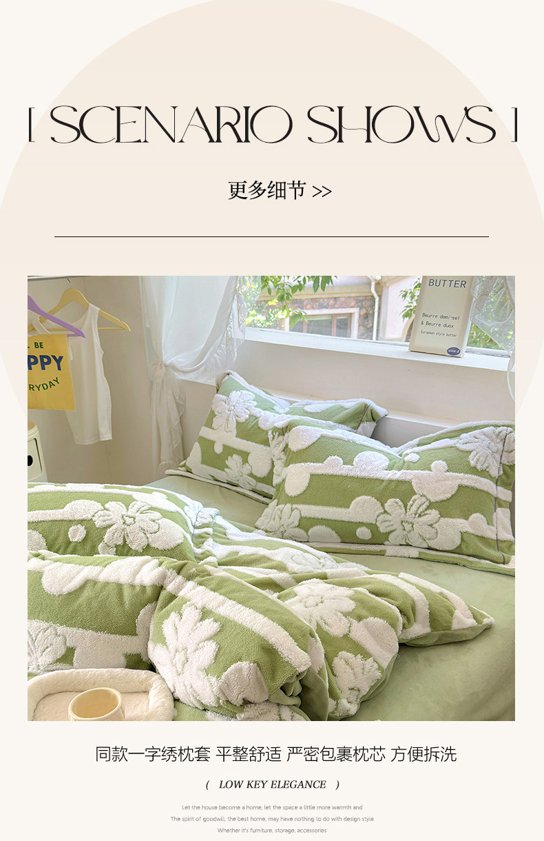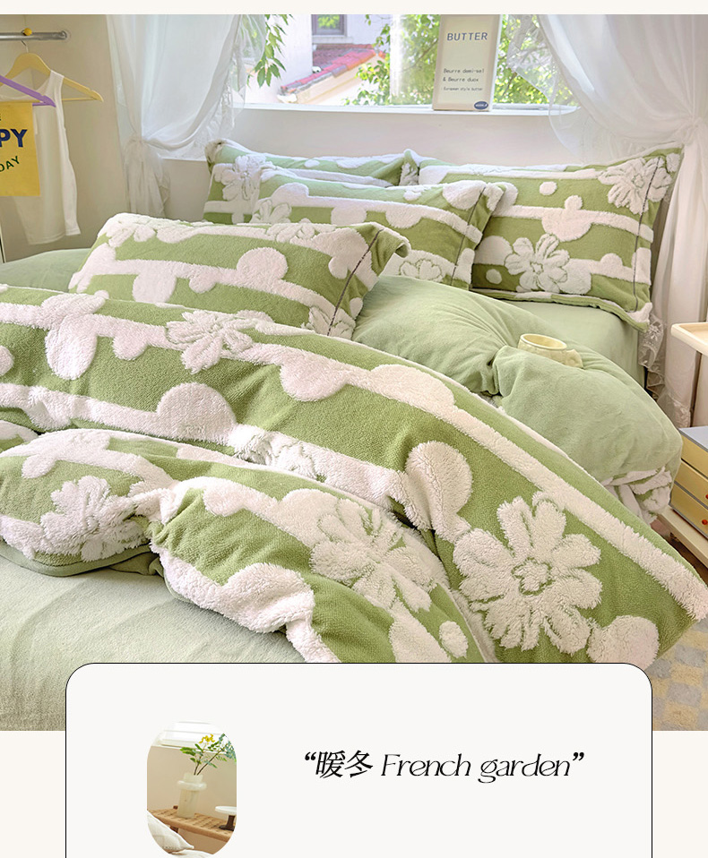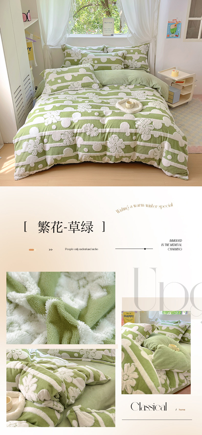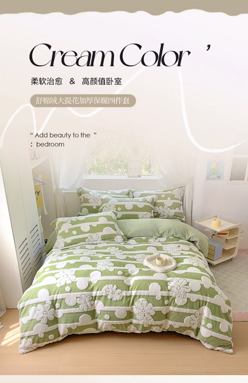 当前位置: 91家纺网 > 商品网购 > 床品套件 > 四件套 > 其它四件套 > 2024新款舒棉绒大提花加厚保暖四件套 繁花-草绿