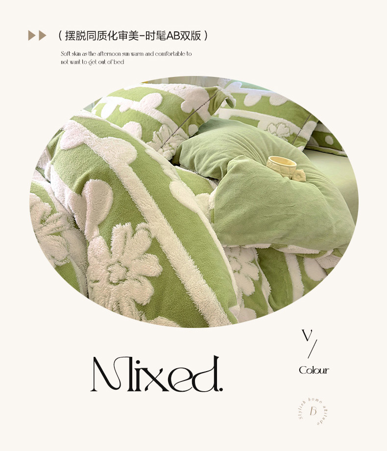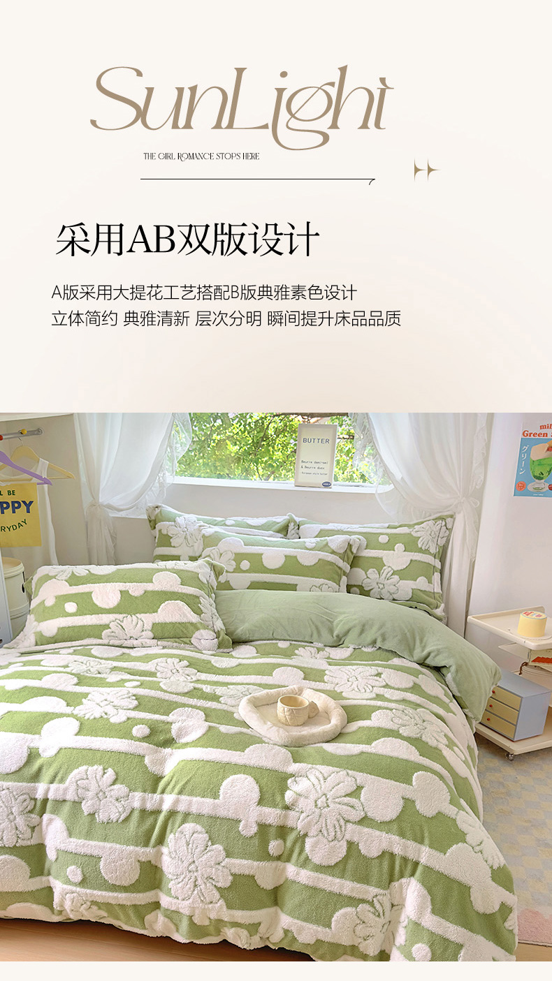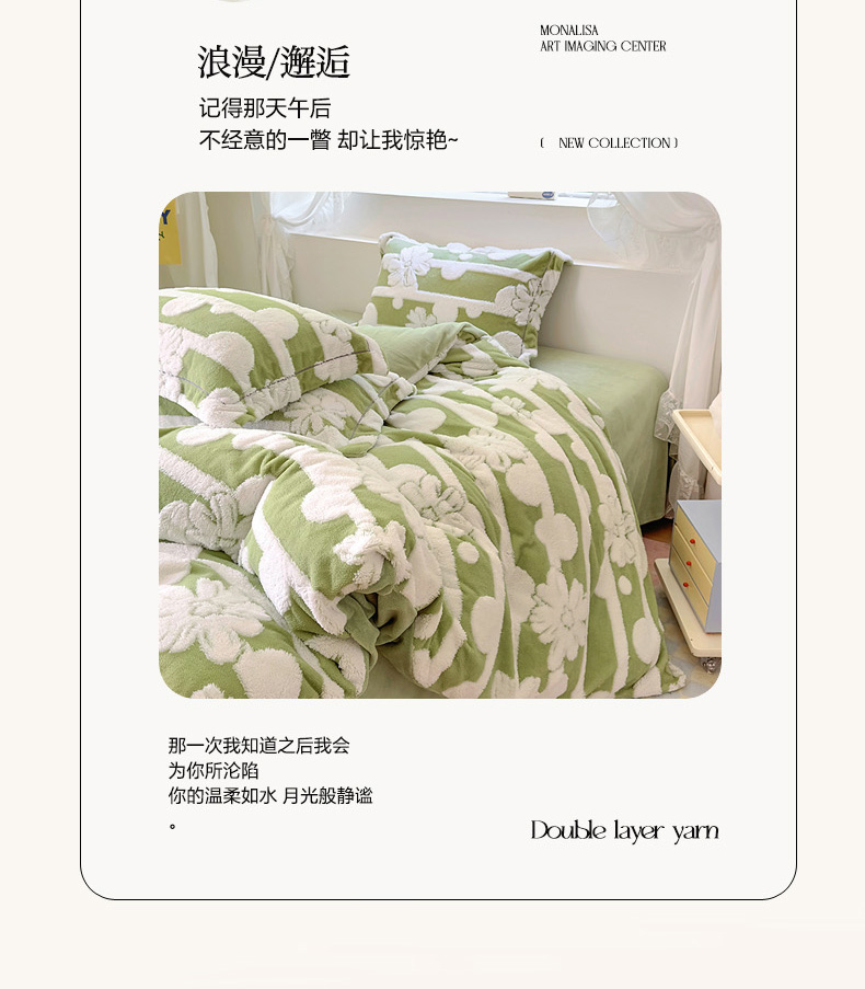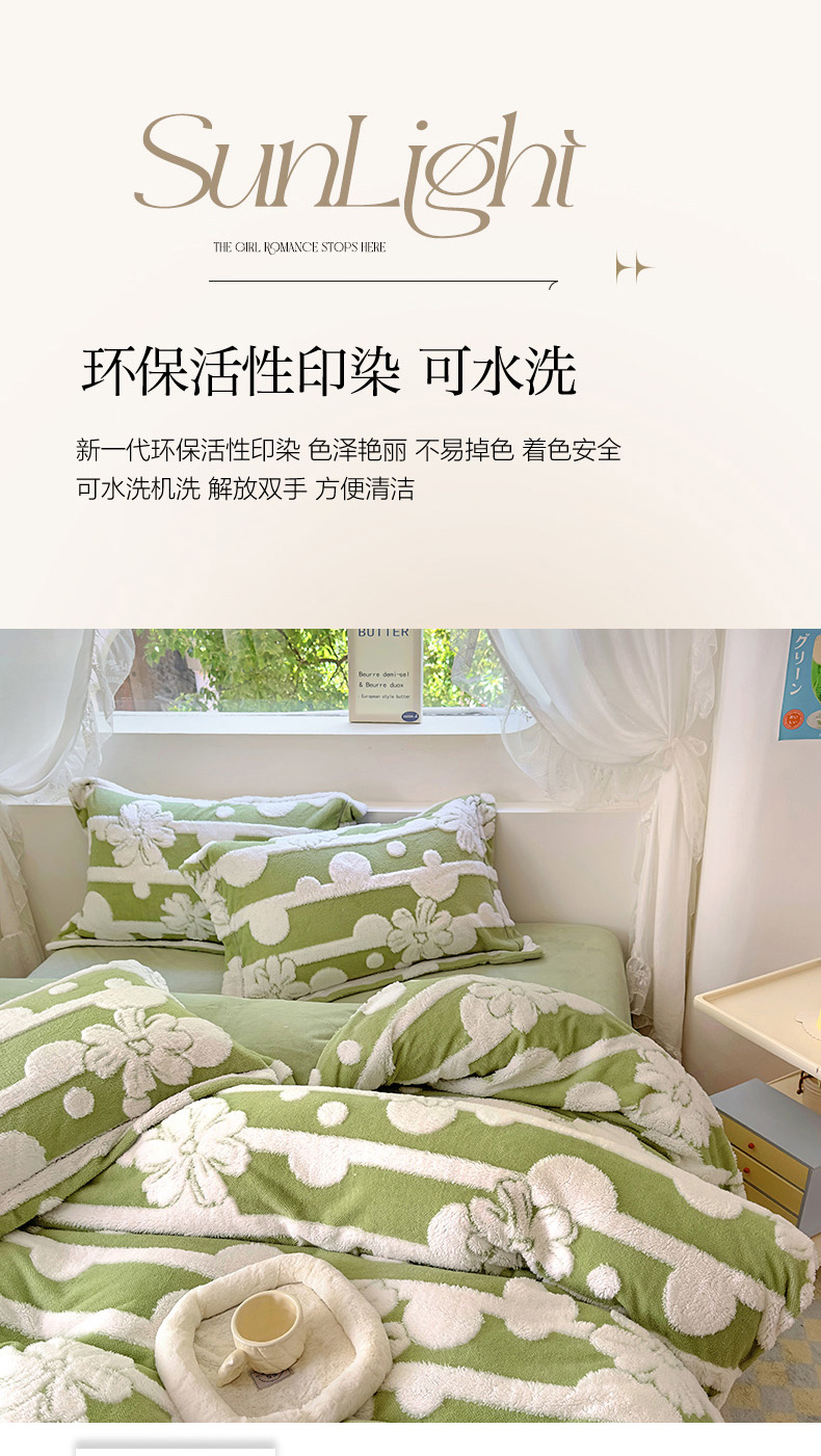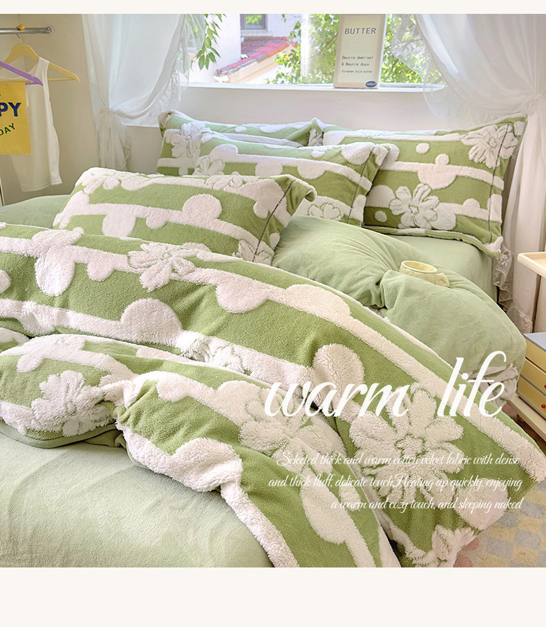 当前位置: 91家纺网 > 商品网购 > 床品套件 > 四件套 > 其它四件套 > 2024新款舒棉绒大提花加厚保暖四件套 繁花-草绿