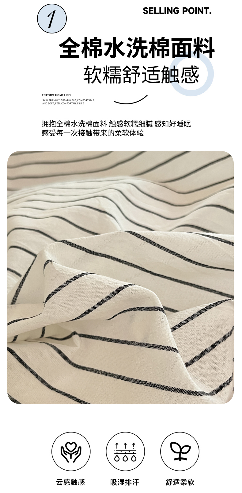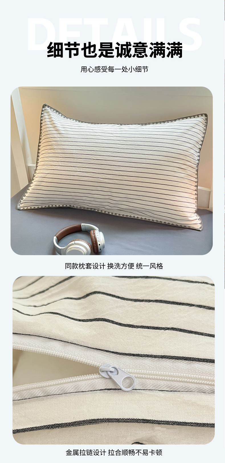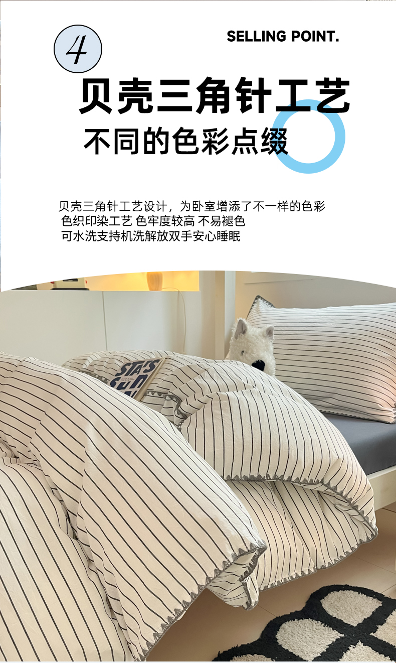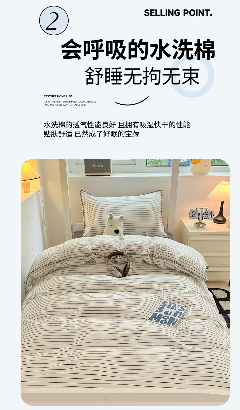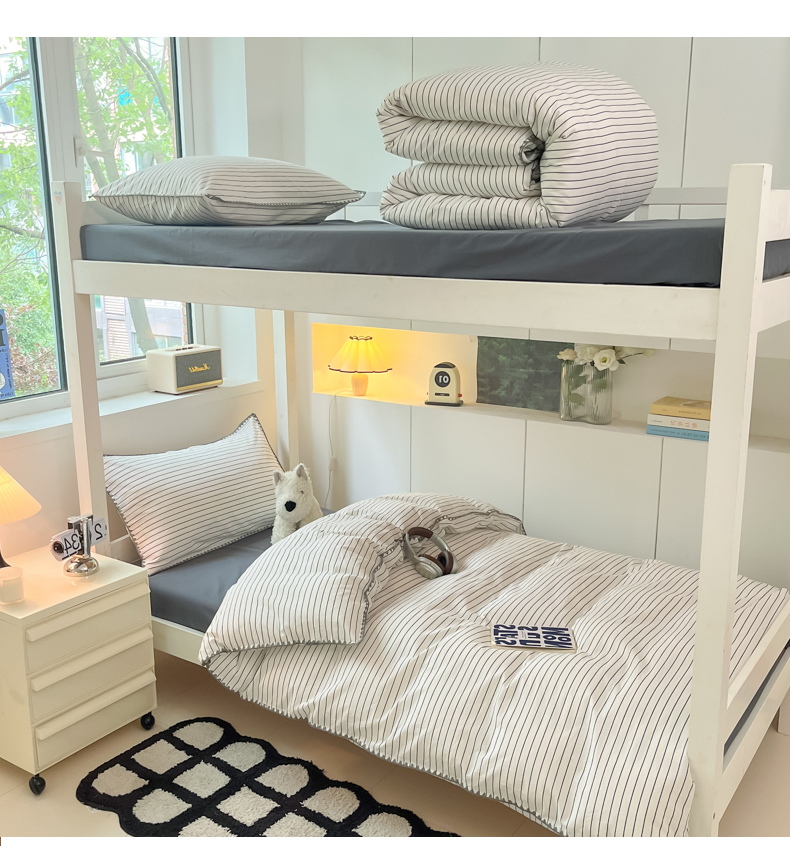 商品名称:吉象家纺 2025新款全棉水洗棉三角针学生三件套四件套 时光-横条