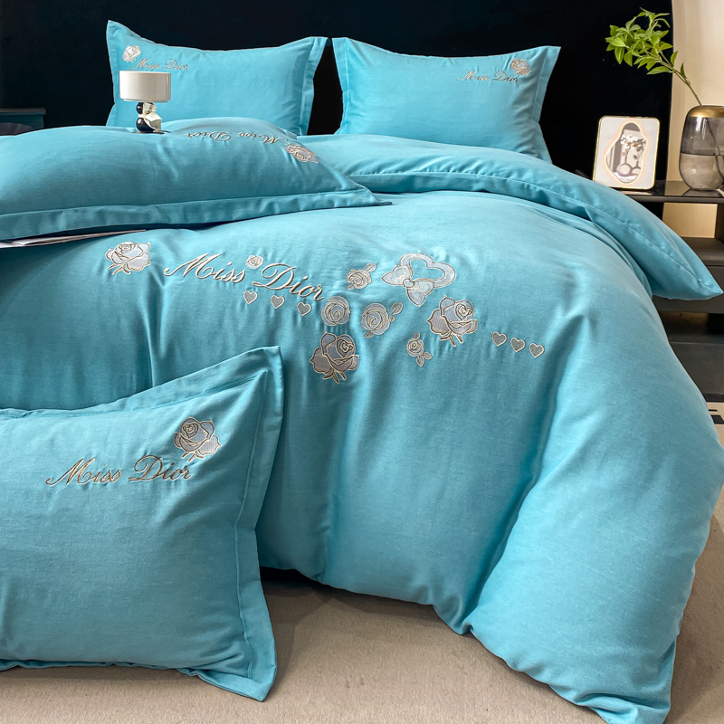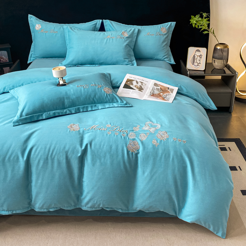 商品名称:昊翔家纺 2025新款全棉磨毛绣花四件套梦馨-迷雾绿