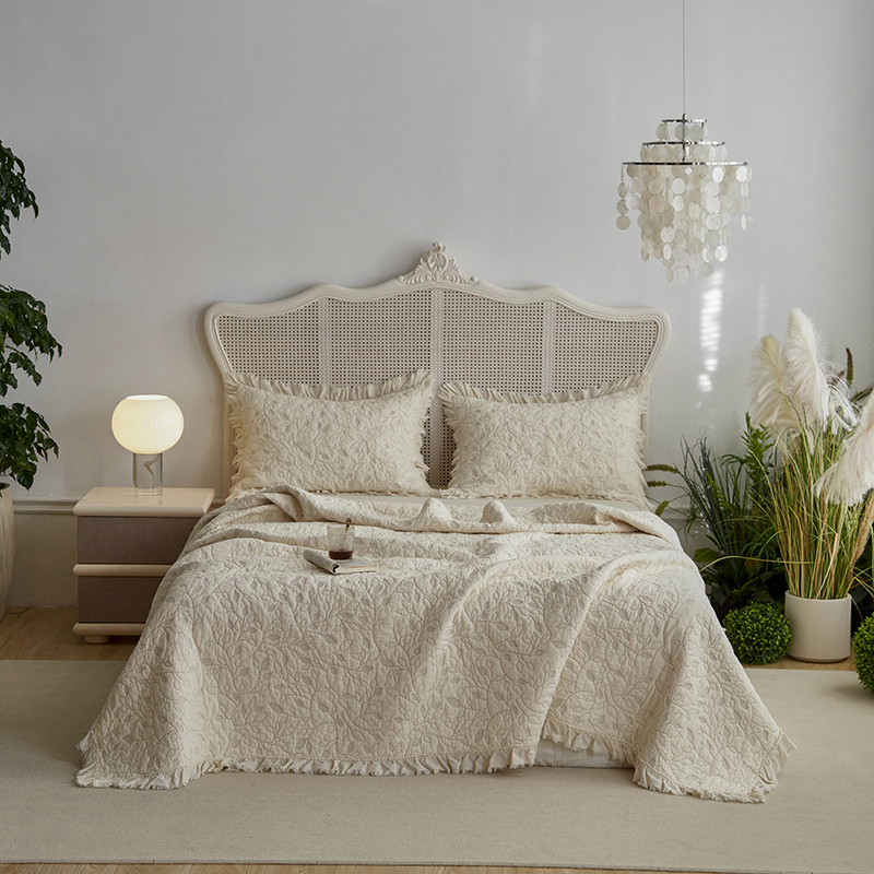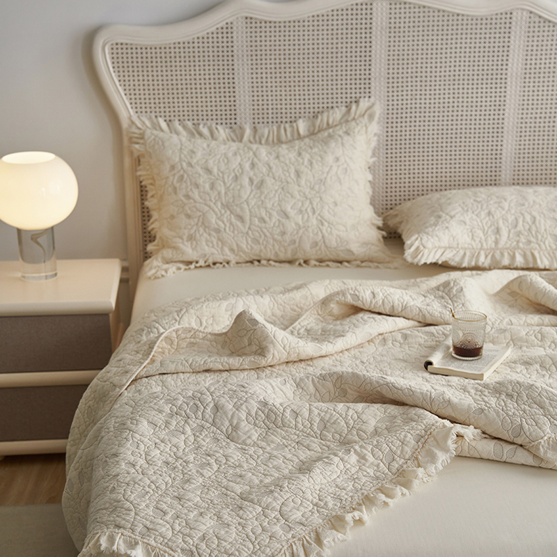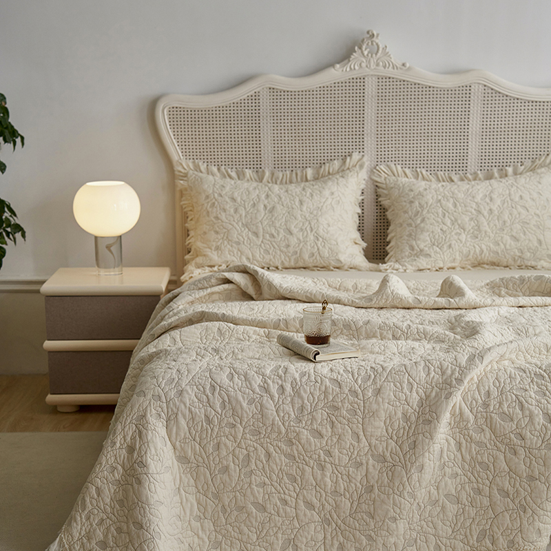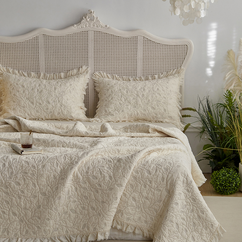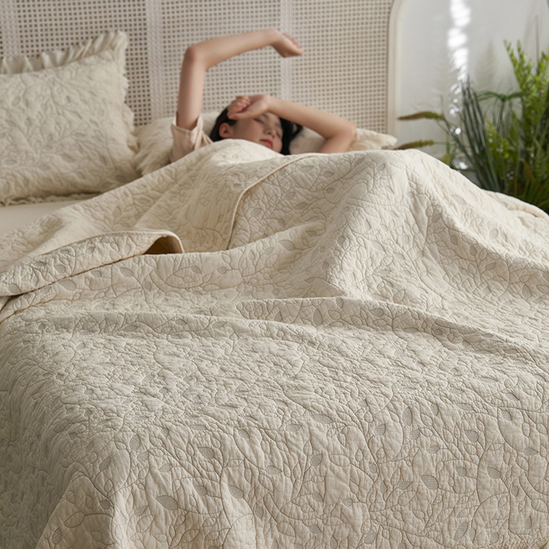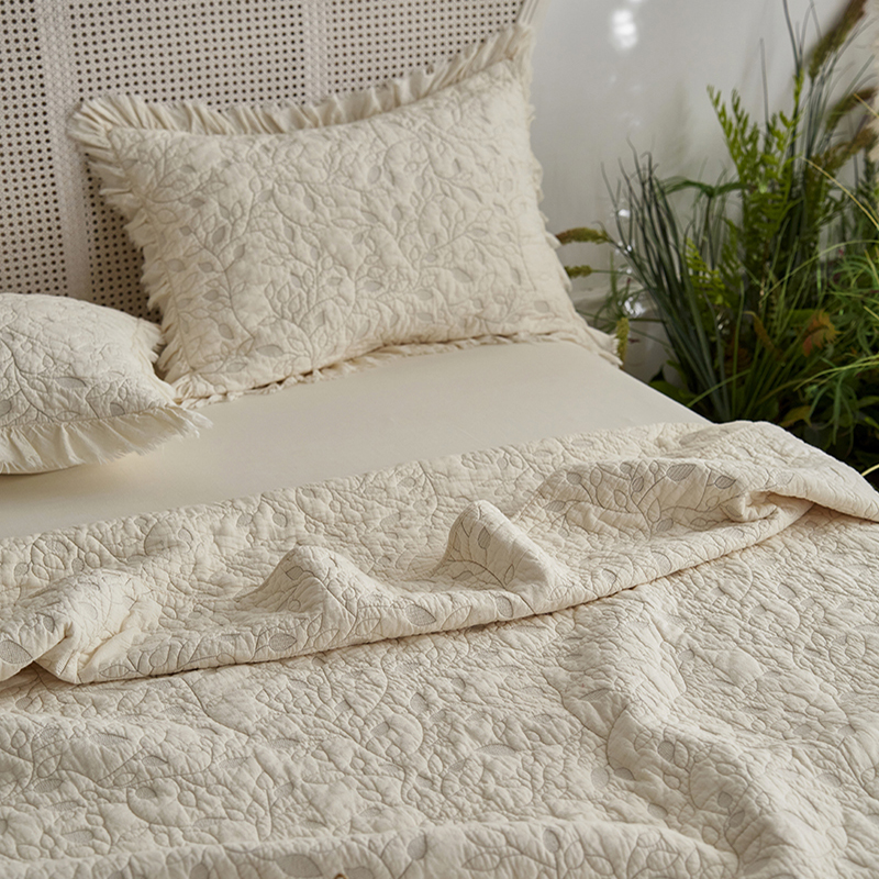 商品名称:安莱生活 2024新品百分百全棉密道绗缝成品酵素洗多功能床盖三件套 叶语