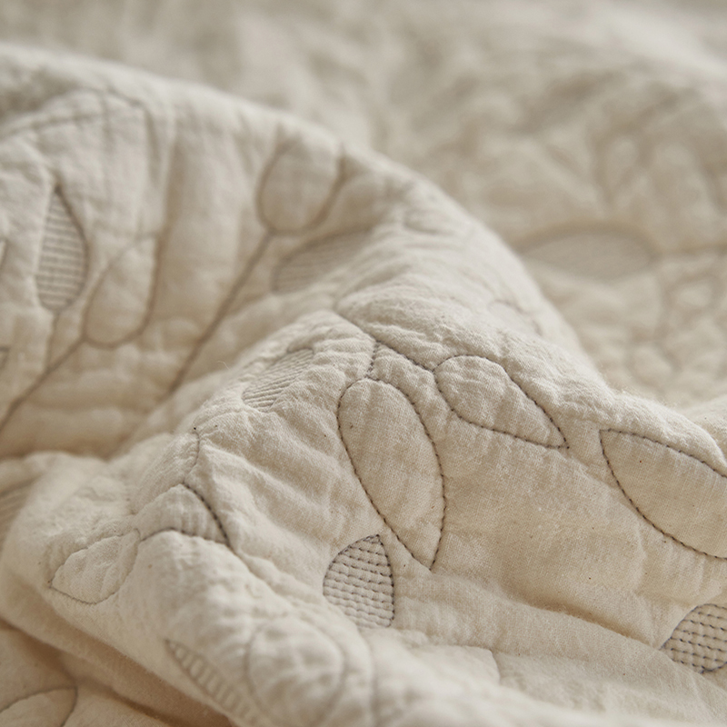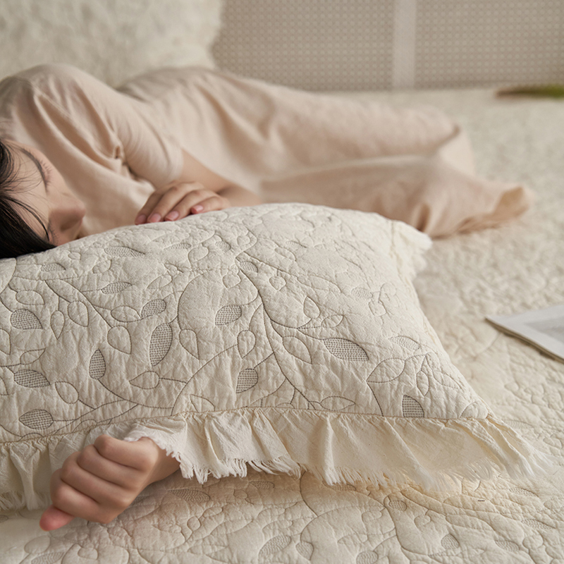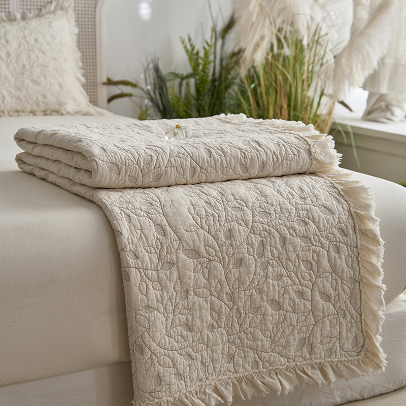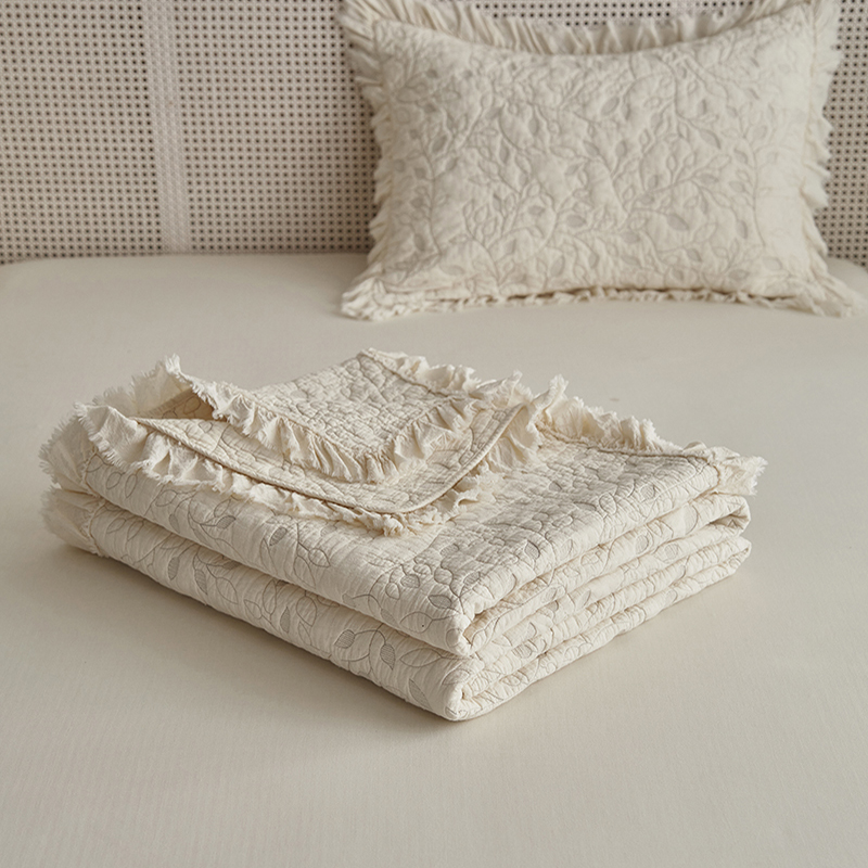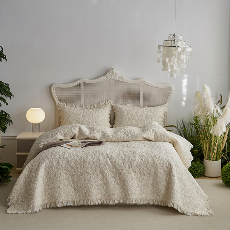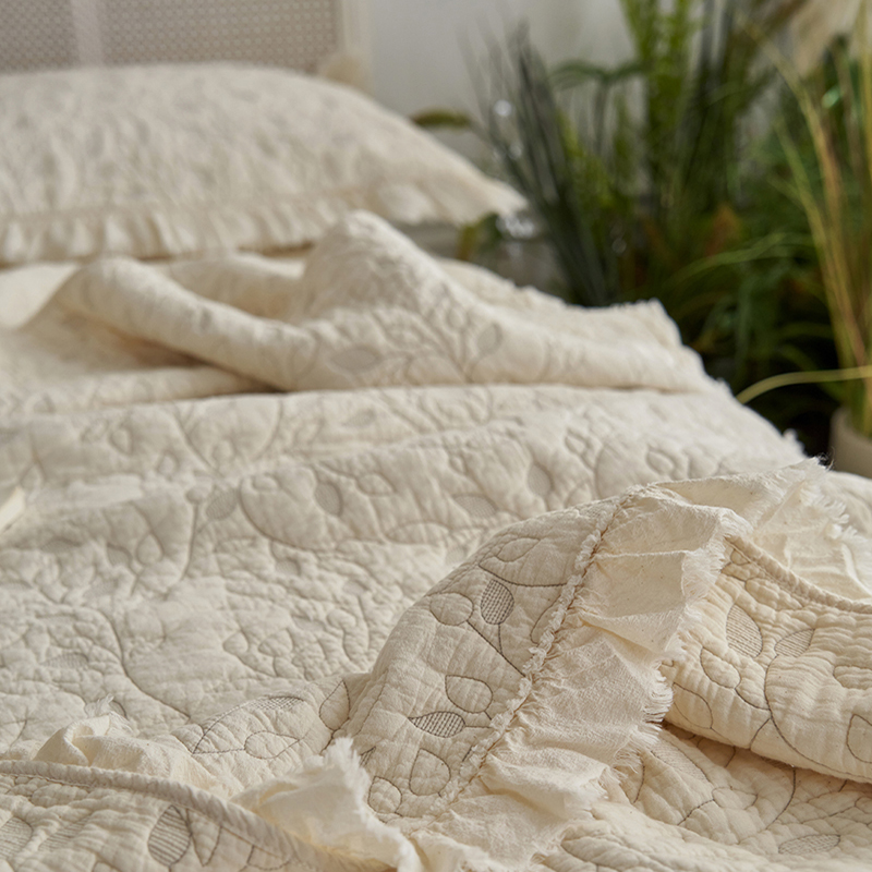 商品名称:安莱生活 2024新品百分百全棉密道绗缝成品酵素洗多功能床盖三件套 叶语