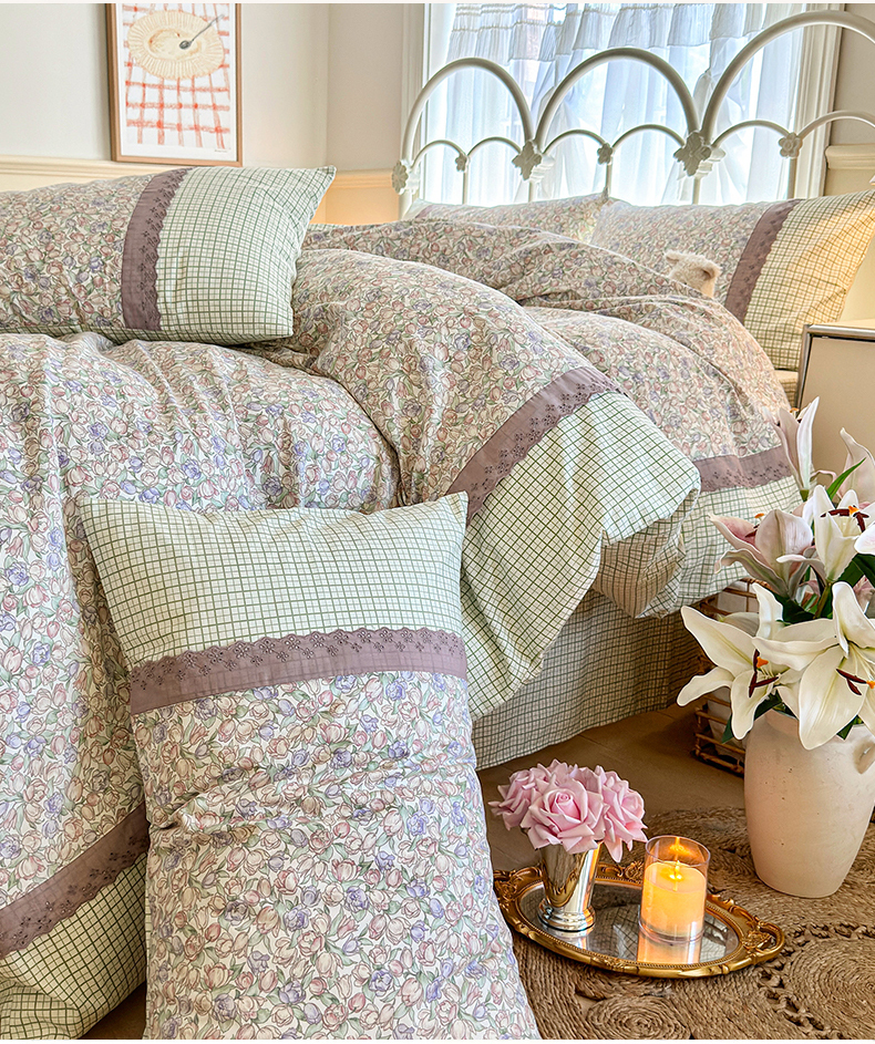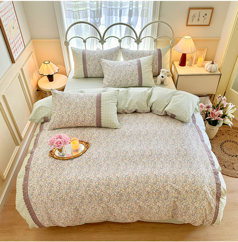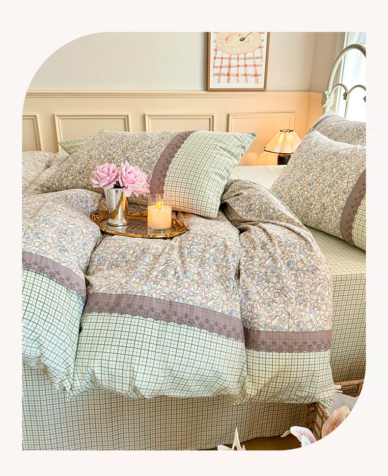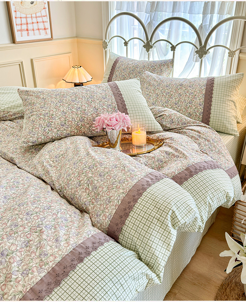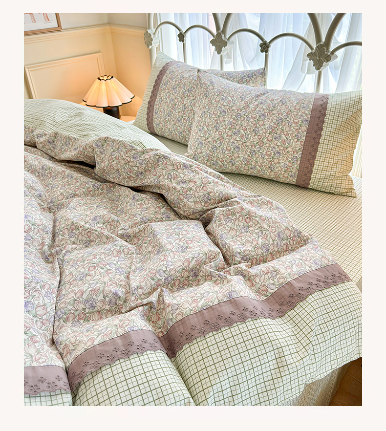 (总)安莱生活 2026年新品全棉纯棉小碎花刺绣花边款四件套-小碎花系列,花漾粉,花梦紫,凯特花园,漫语花,泡芙花园
