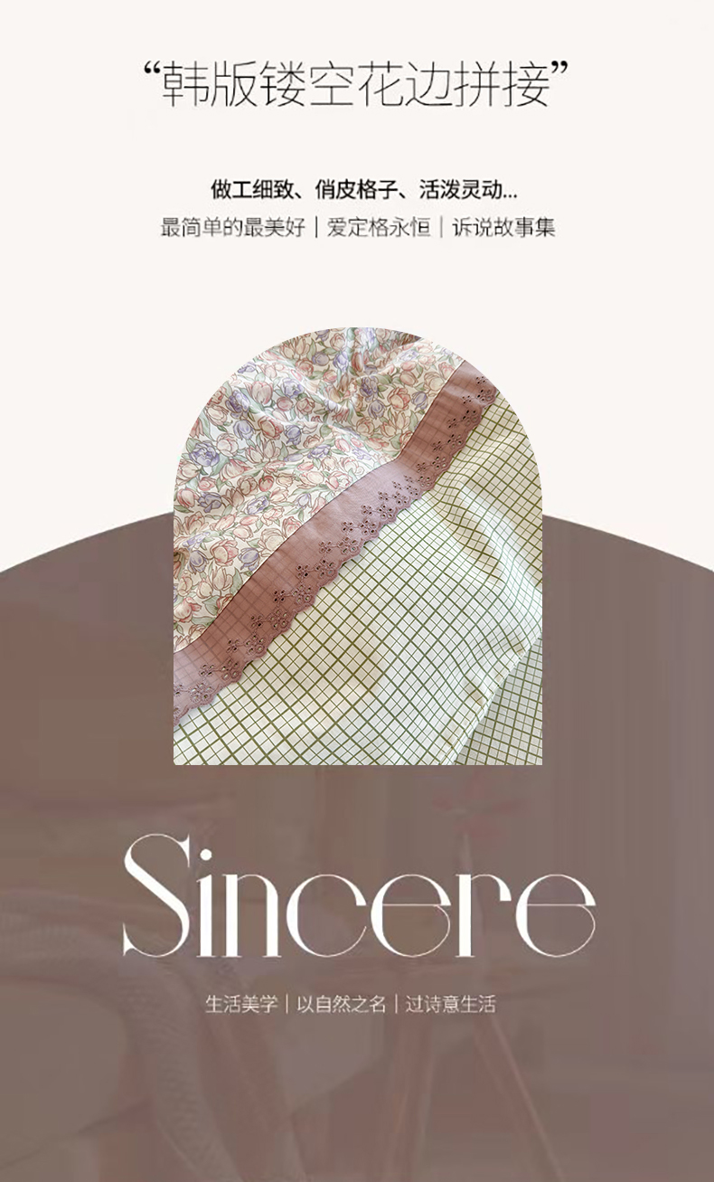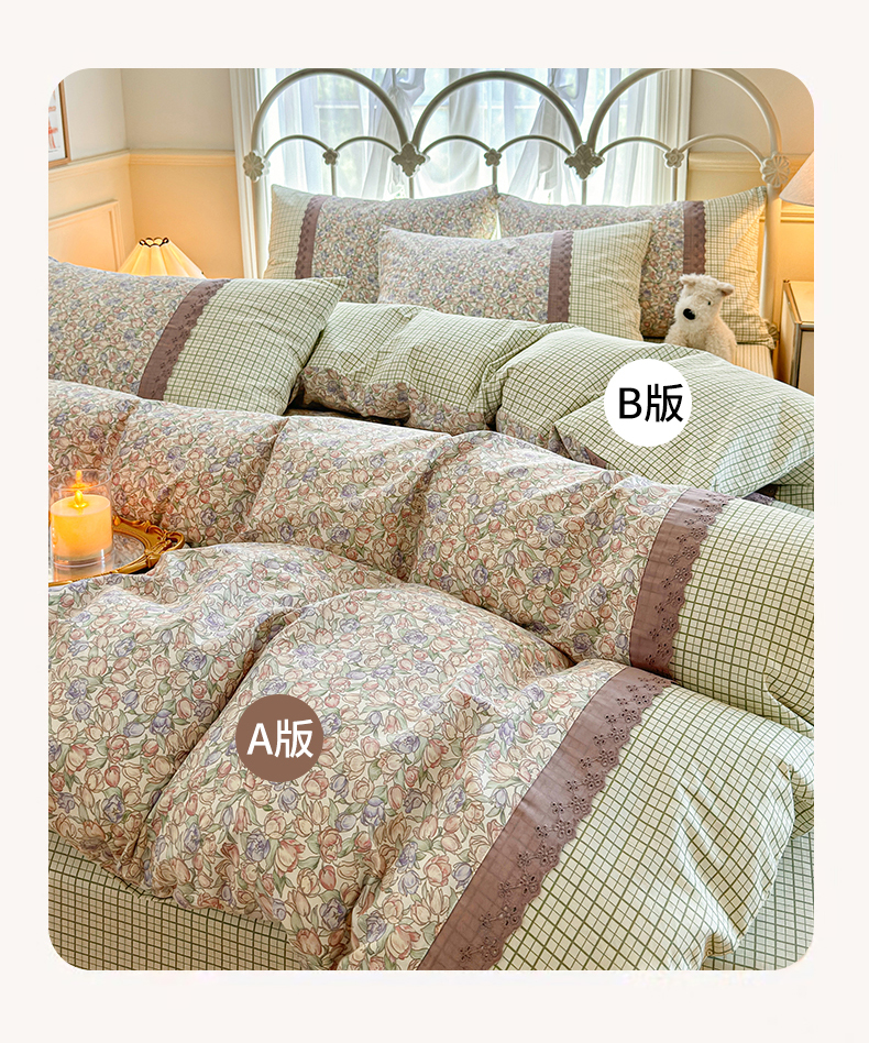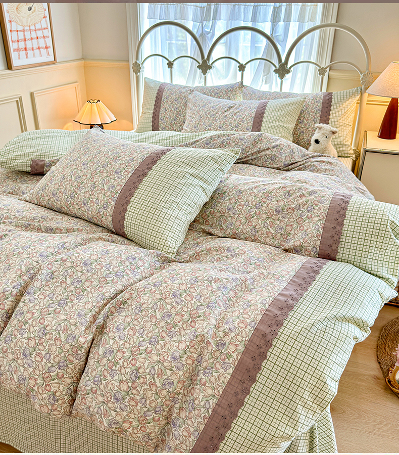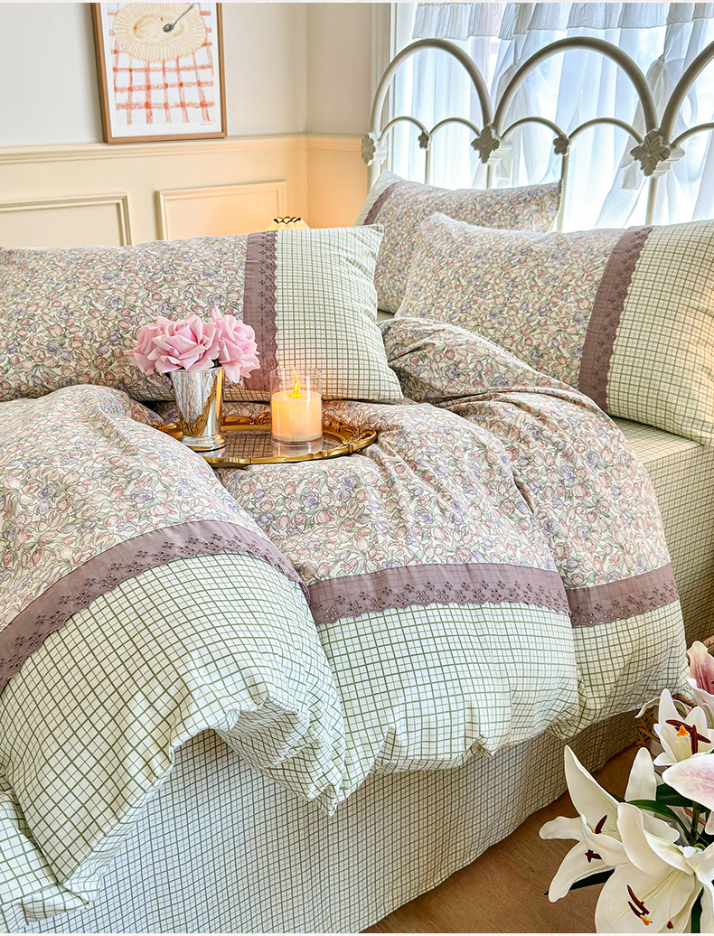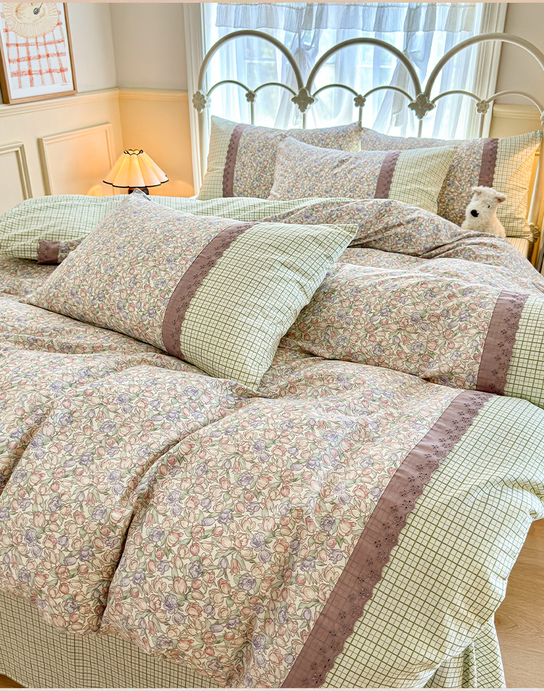 (总)安莱生活 2026年新品全棉纯棉小碎花刺绣花边款四件套-小碎花系列,花漾粉,花梦紫,凯特花园,漫语花,泡芙花园