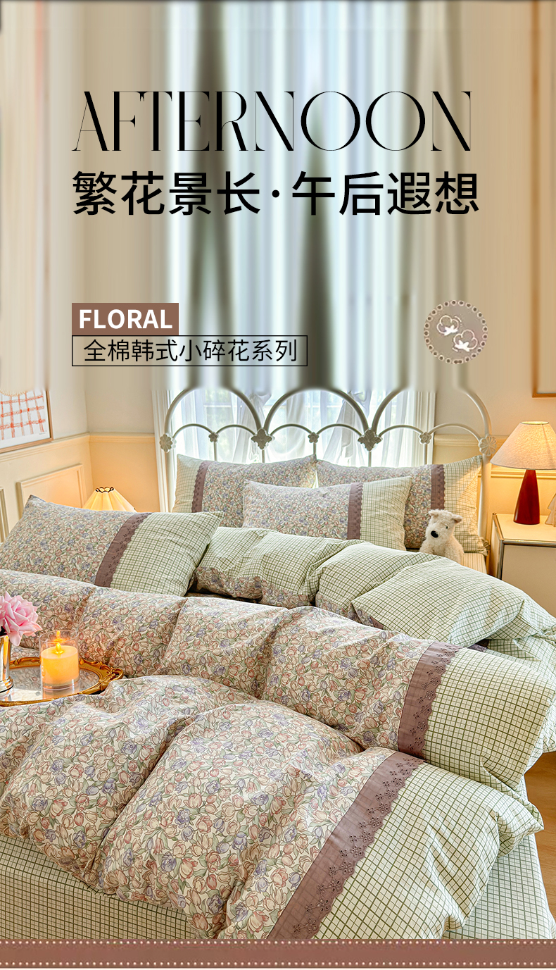 商品名称:安莱生活 2024新款全棉韩式小碎花系列四件套 玲珑花海