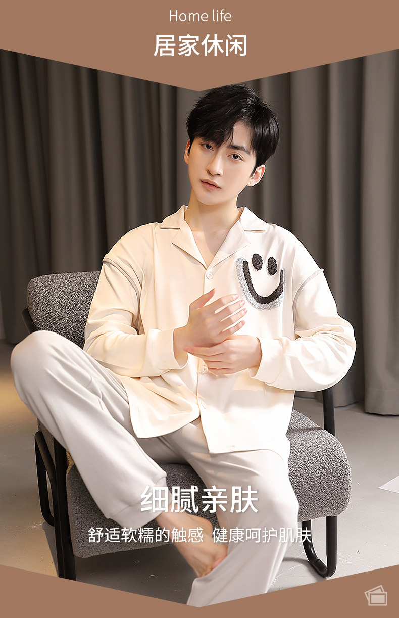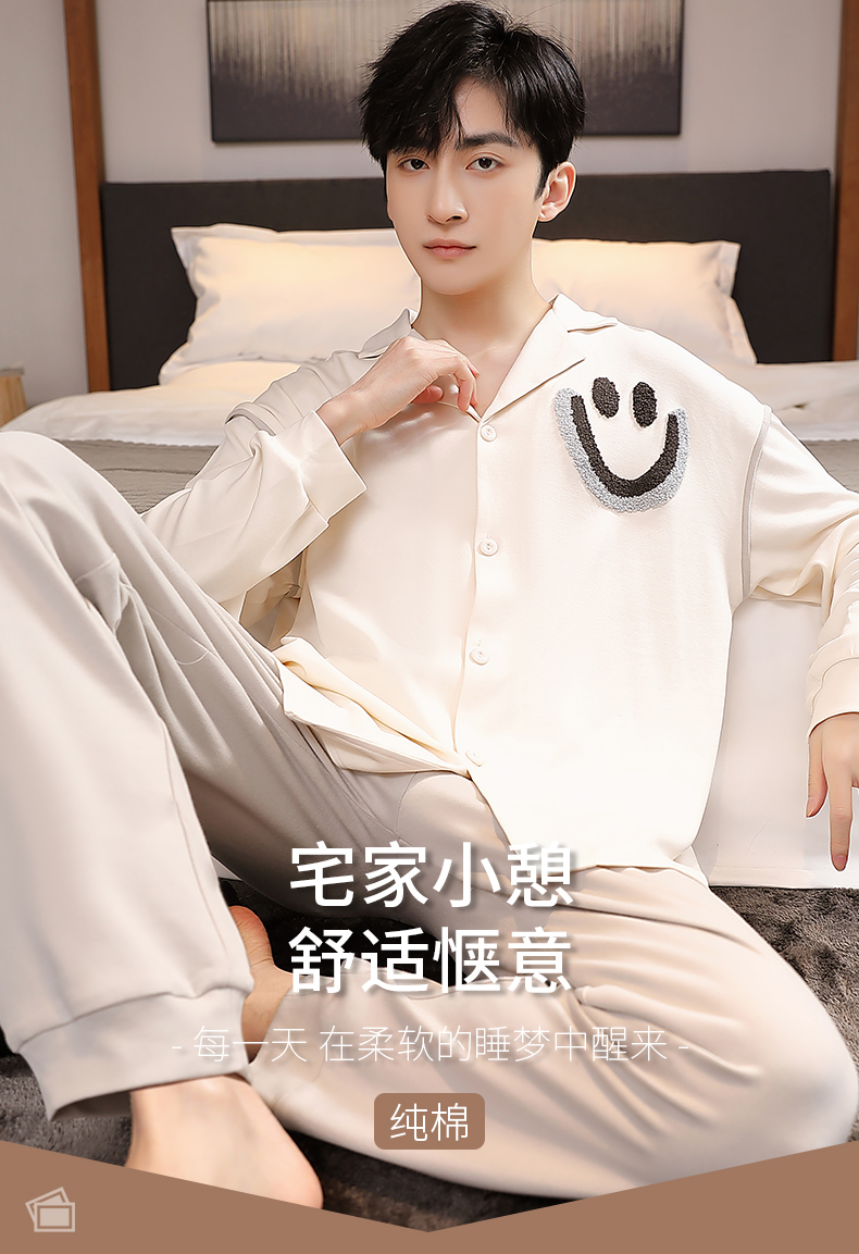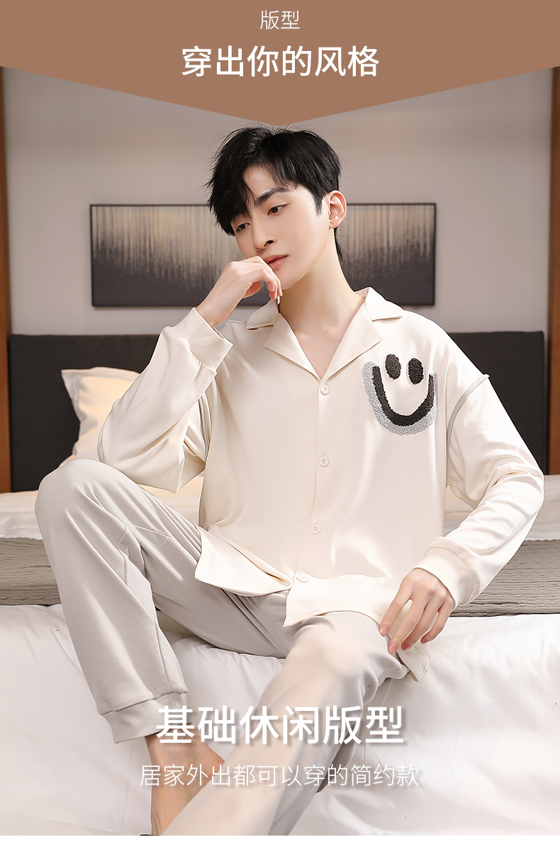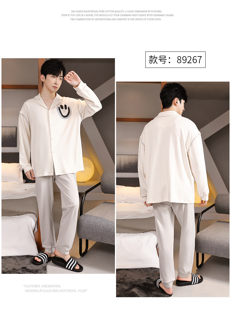 商品名称:春秋季新款纯棉休闲简约睡衣高级质量家居服夏季男士宽松舒适睡衣翻领 89267