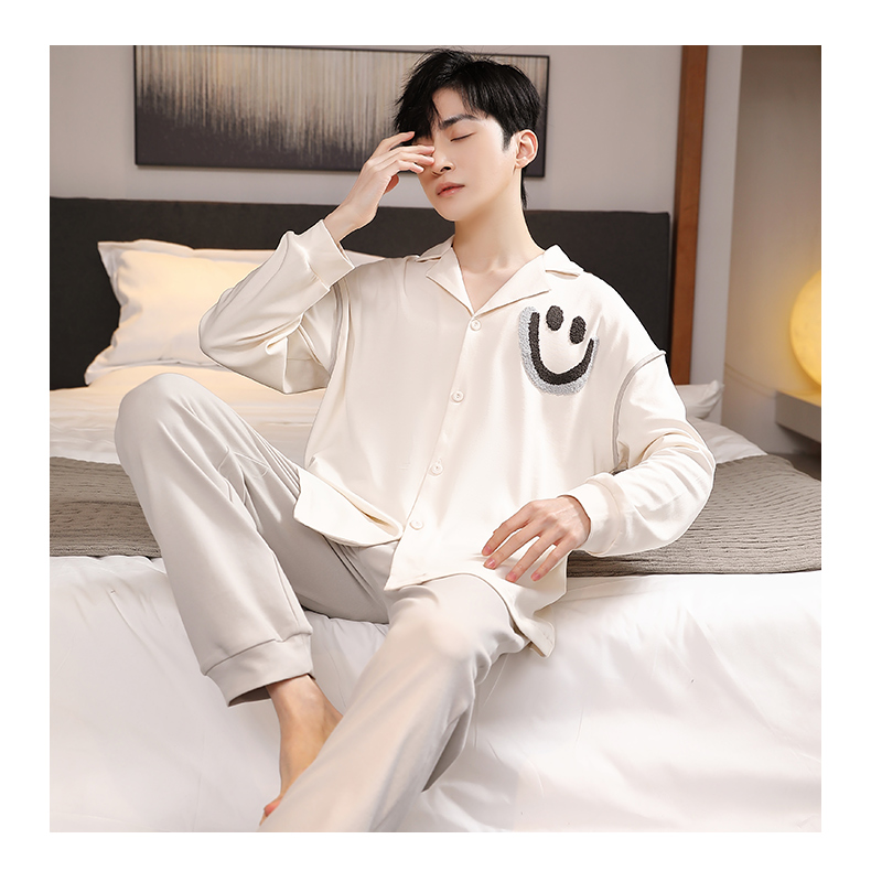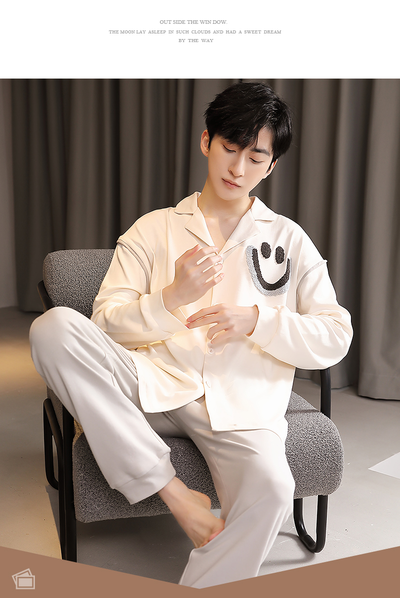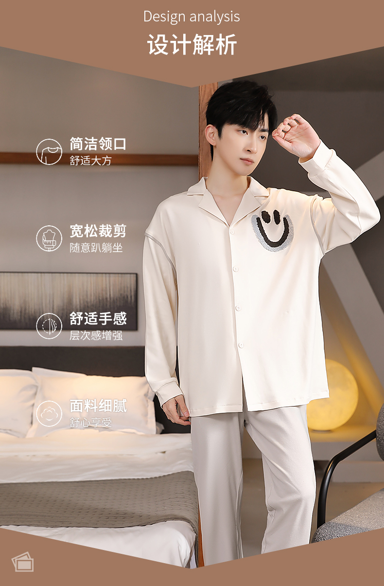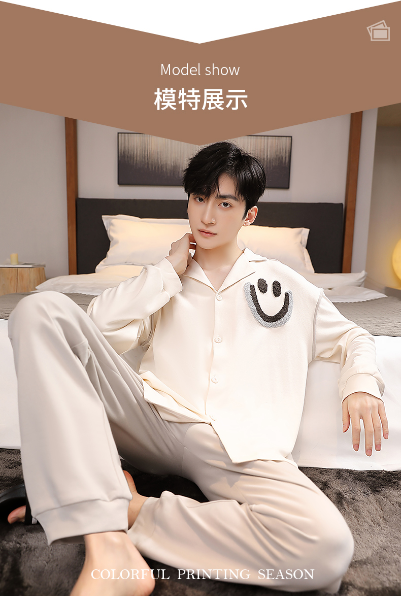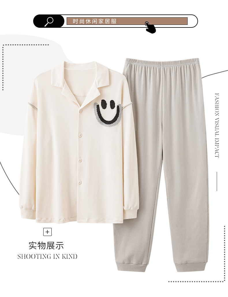 商品名称:春秋季新款纯棉休闲简约睡衣高级质量家居服夏季男士宽松舒适睡衣翻领 89267