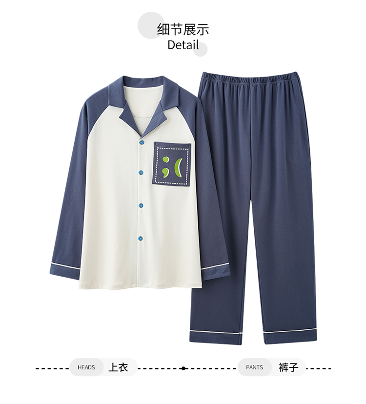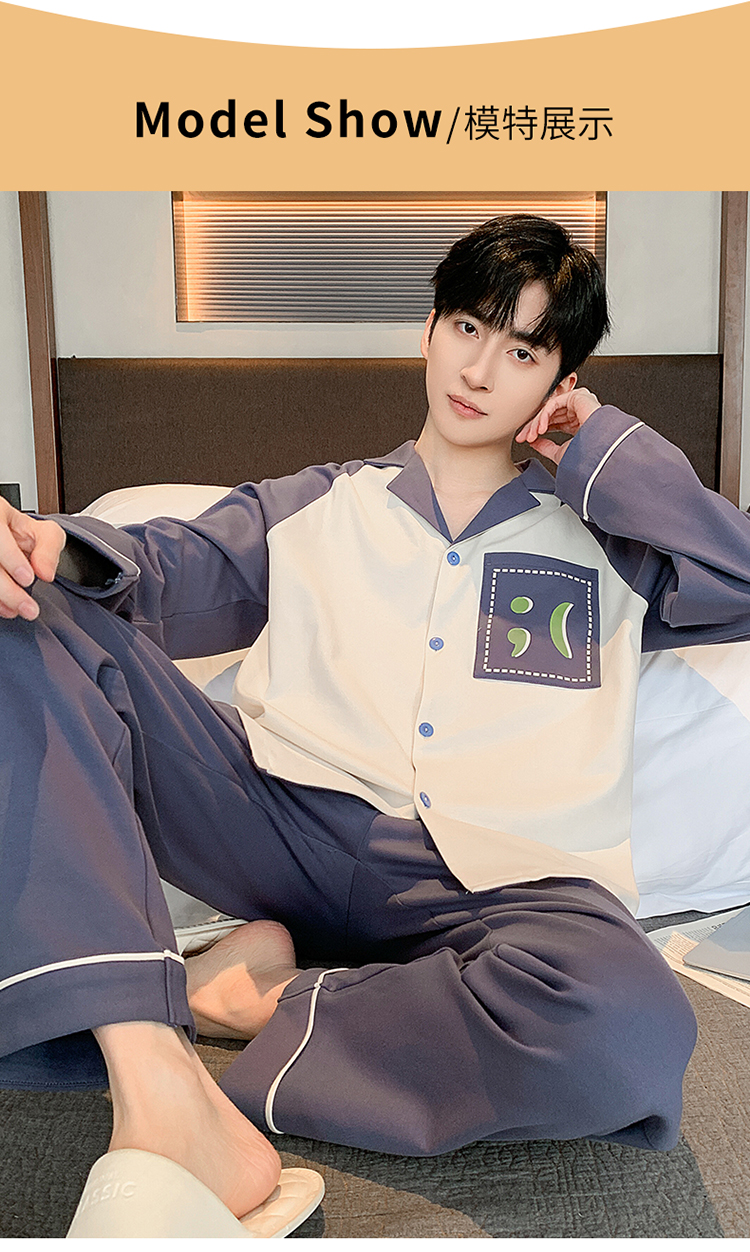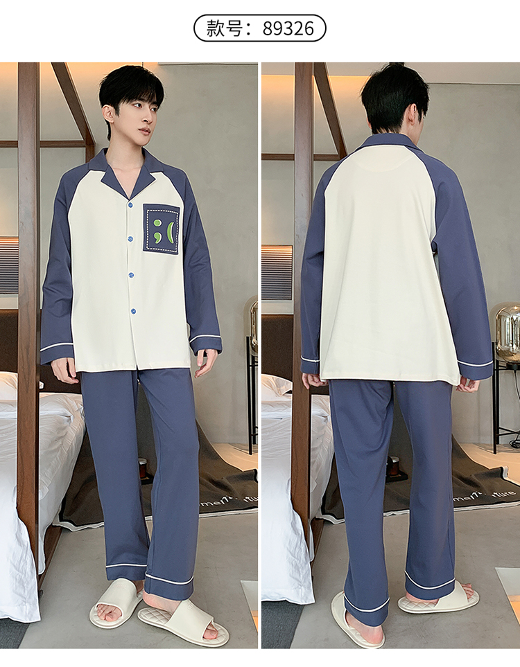 商品名称:春秋季新款纯棉休闲简约睡衣高级质量家居服夏季男士宽松舒适睡衣翻领 89326
