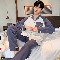 (总)洛兰沙家居馆 2025新款温澜男士纯棉双层色织棉纱家居服睡衣圆领简约格子透气长袖长裤套,温澜圆领男士长袖长裤套装-灰格