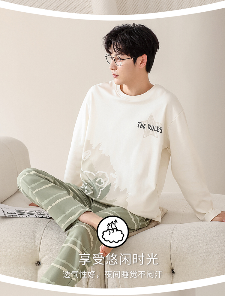 商品名称:春秋季纯棉圆领睡衣男士卡通长袖家居服夏季青少年休闲可外穿套装 713男