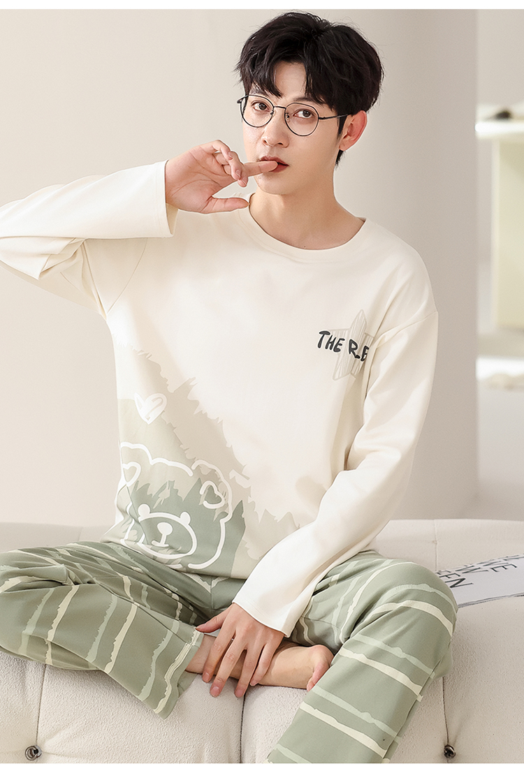 春秋季纯棉圆领睡衣男士卡通长袖家居服夏季青少年休闲可外穿套装 713男