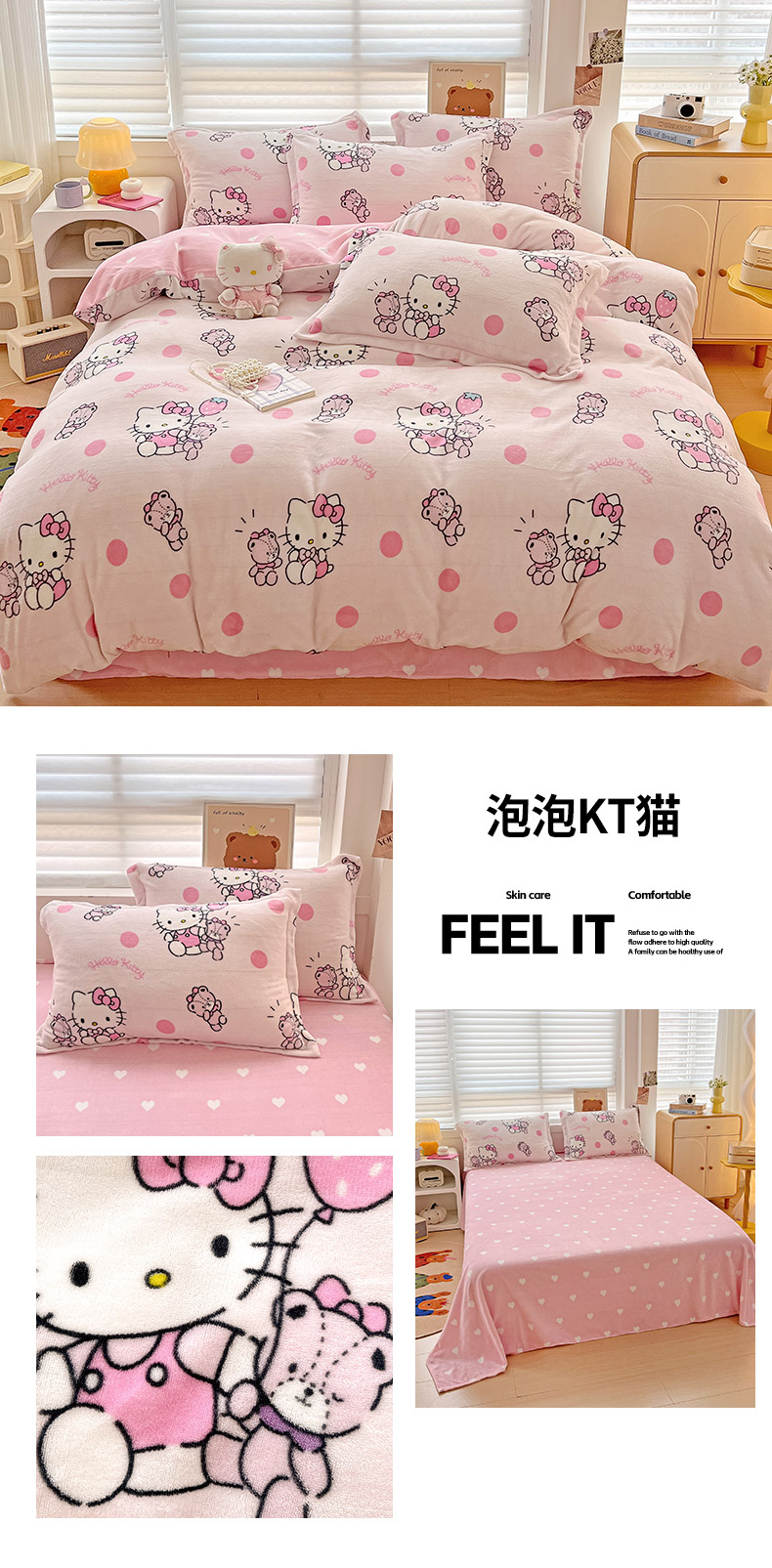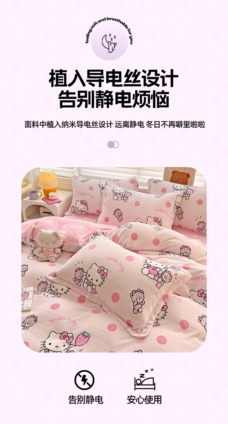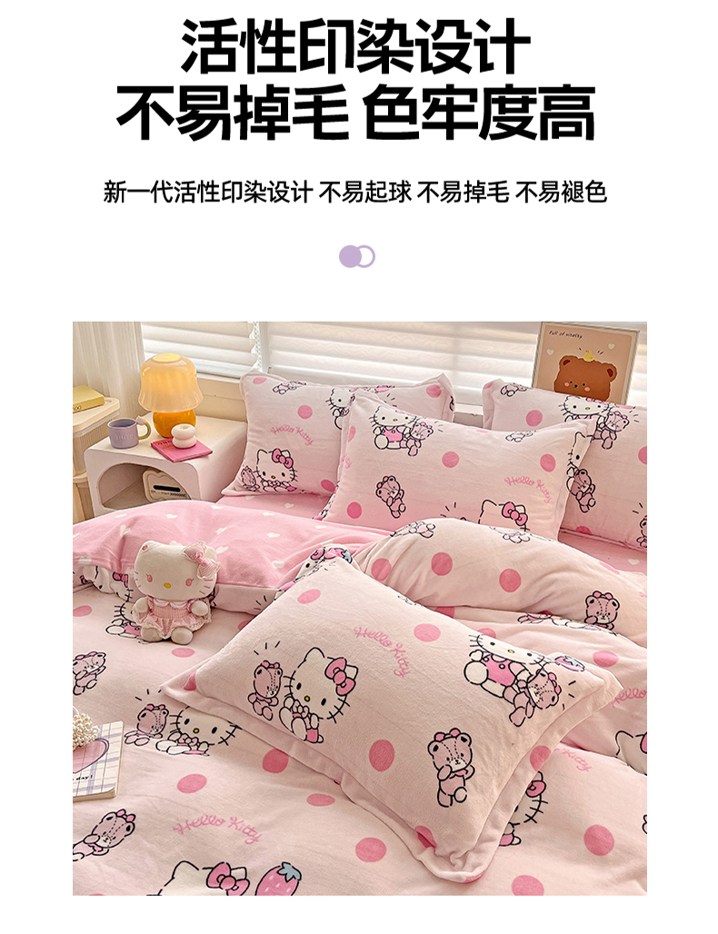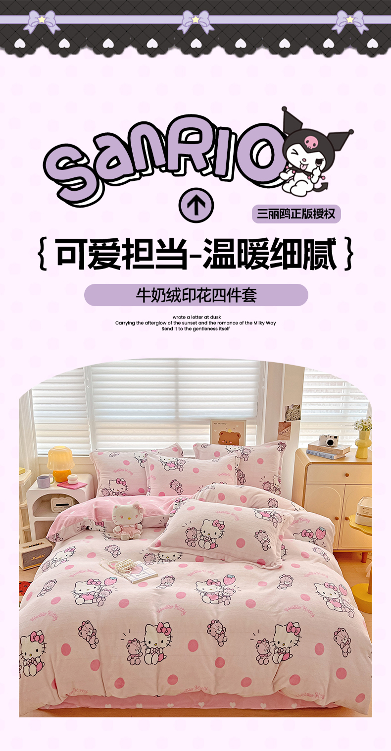 当前位置: 91家纺网 > 商品网购 > 床品套件 > 四件套 > 牛奶绒四件套 > KT猫直营店 2024新款三丽鸥库洛米牛奶绒四件套 泡泡KT猫