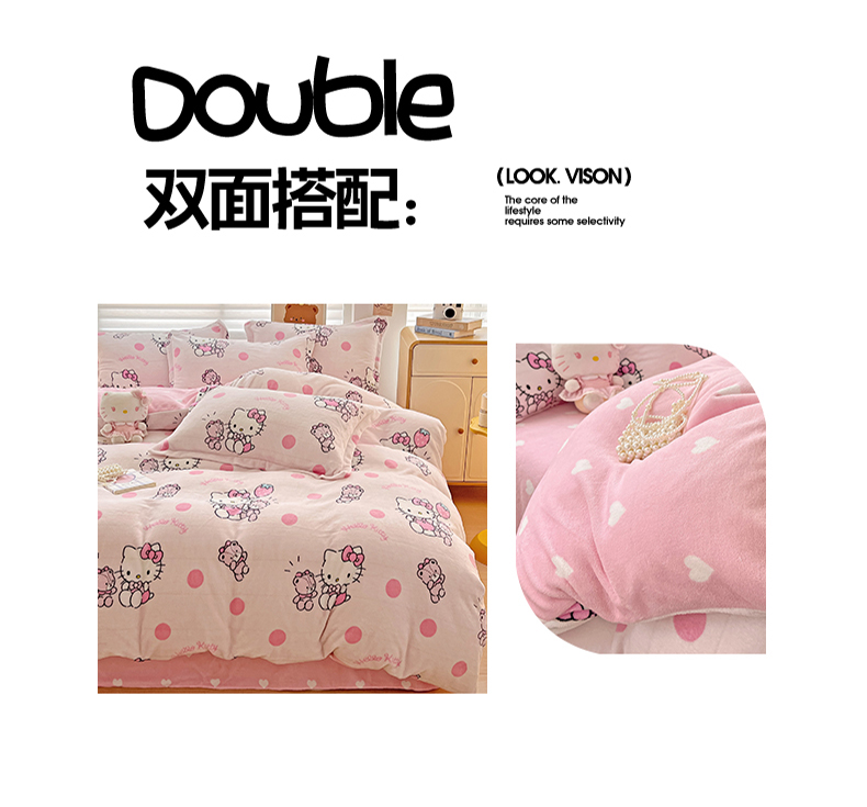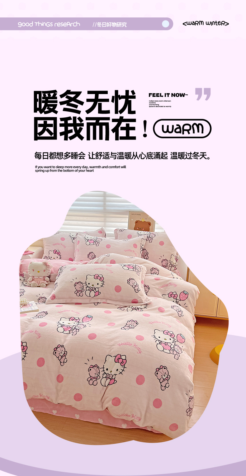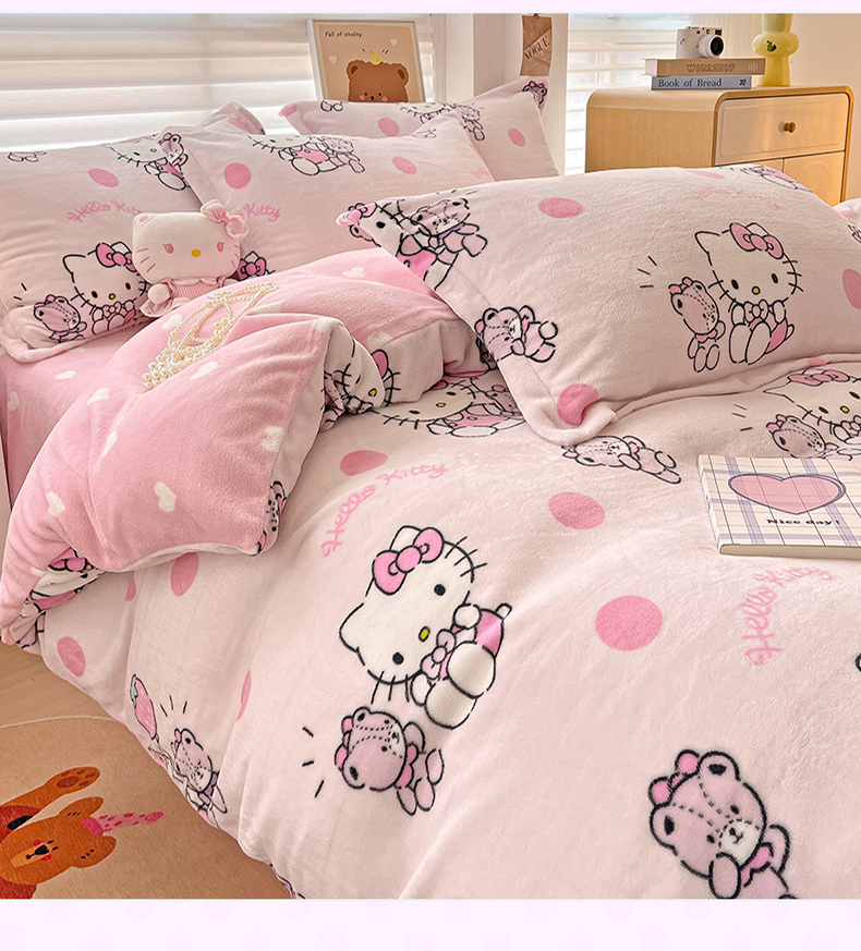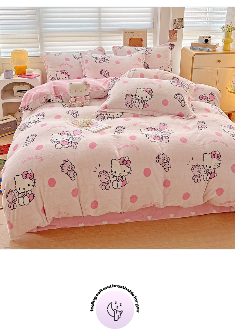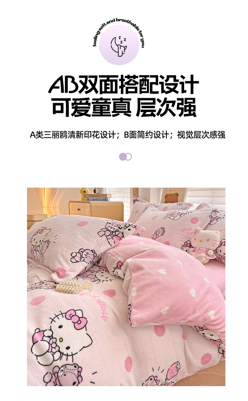 当前位置: 91家纺网 > 商品网购 > 床品套件 > 四件套 > 牛奶绒四件套 > KT猫直营店 2024新款三丽鸥库洛米牛奶绒四件套 泡泡KT猫