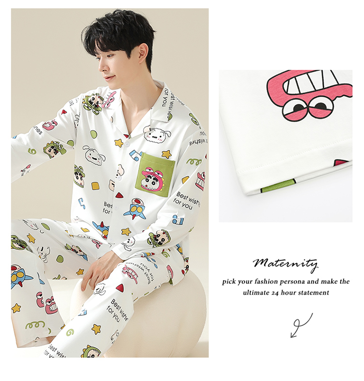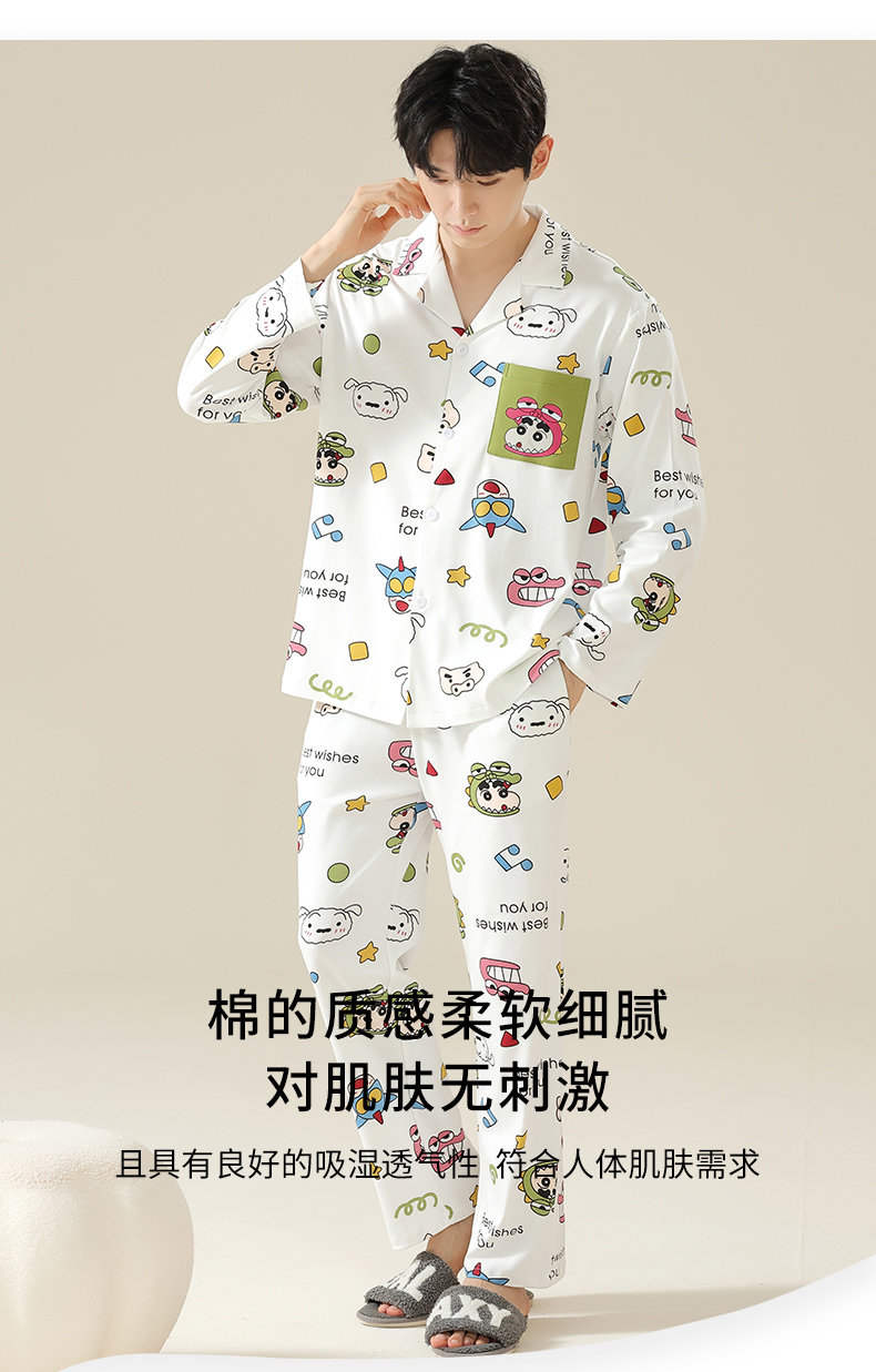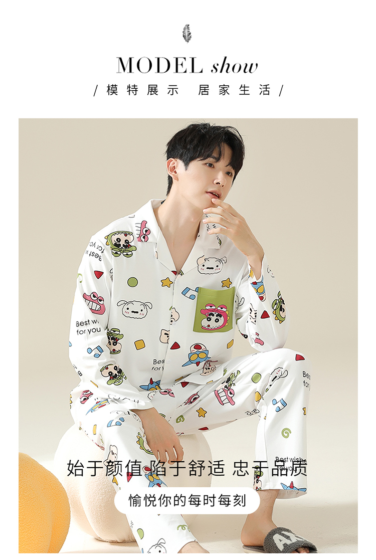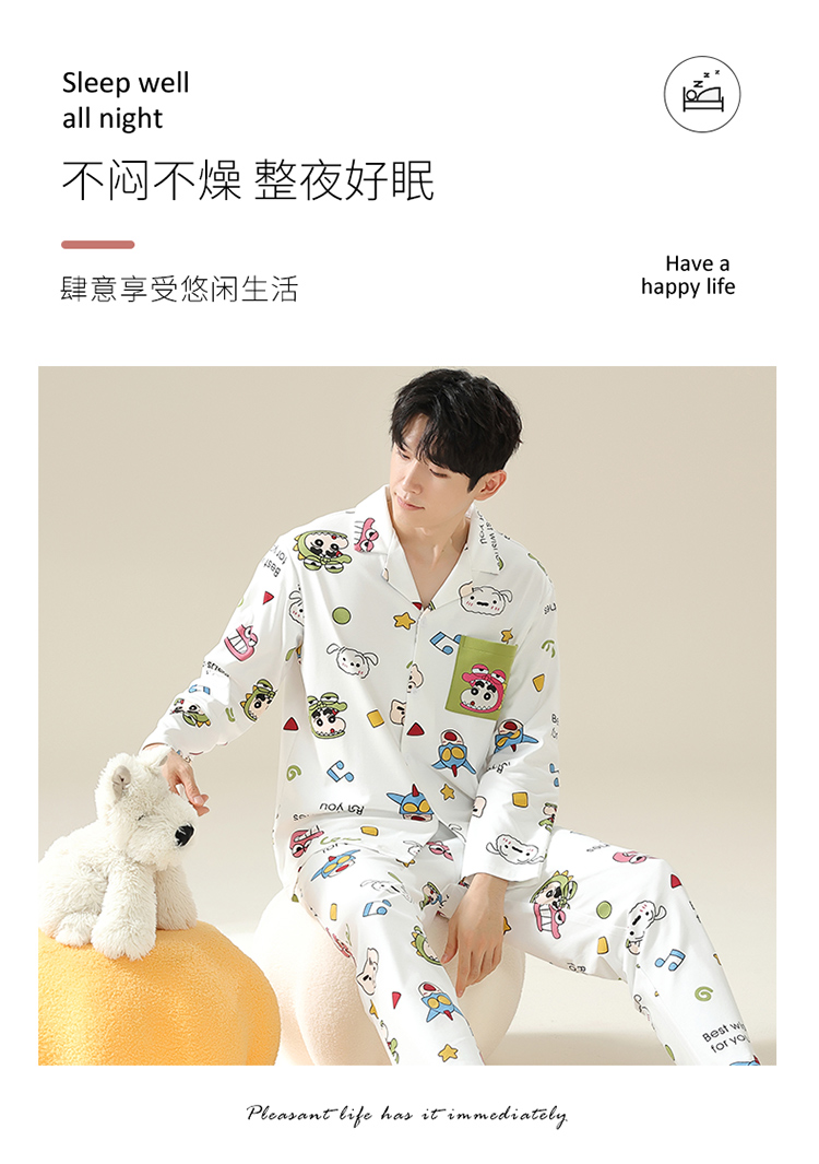 商品名称:洛兰沙 春秋季纯棉开衫长袖可外穿家居服睡衣 681男