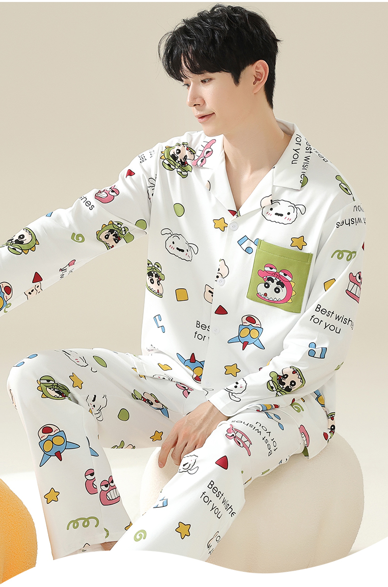 洛兰沙 春秋季纯棉开衫长袖可外穿家居服睡衣 681男