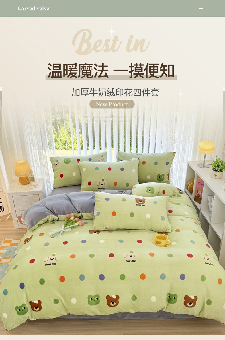 当前位置: 91家纺网 > 商品网购 > 床品套件 > 四件套 > 牛奶绒四件套 > 觅妮家纺 2025新款高克重秋冬加厚印花牛奶绒四件套 波点熊