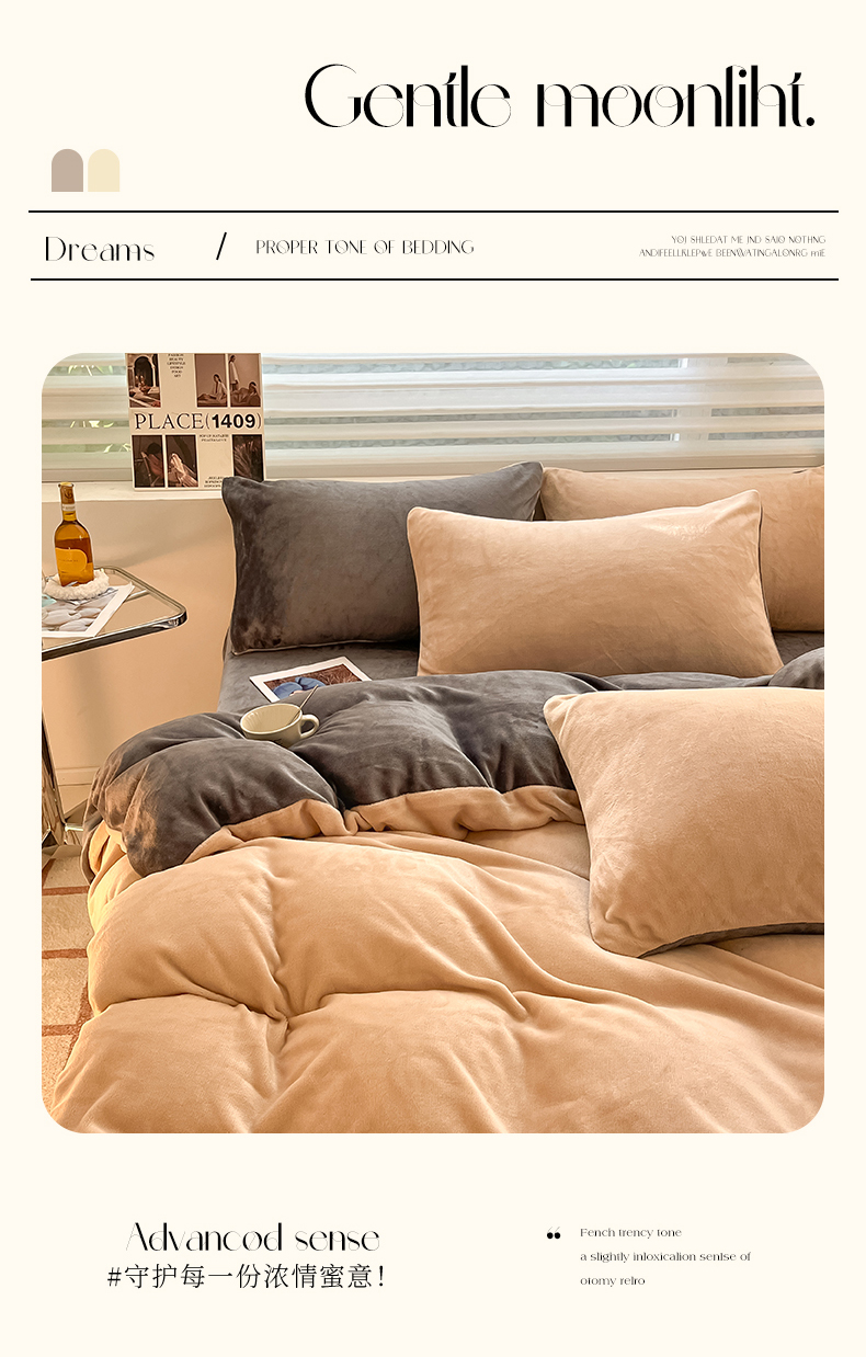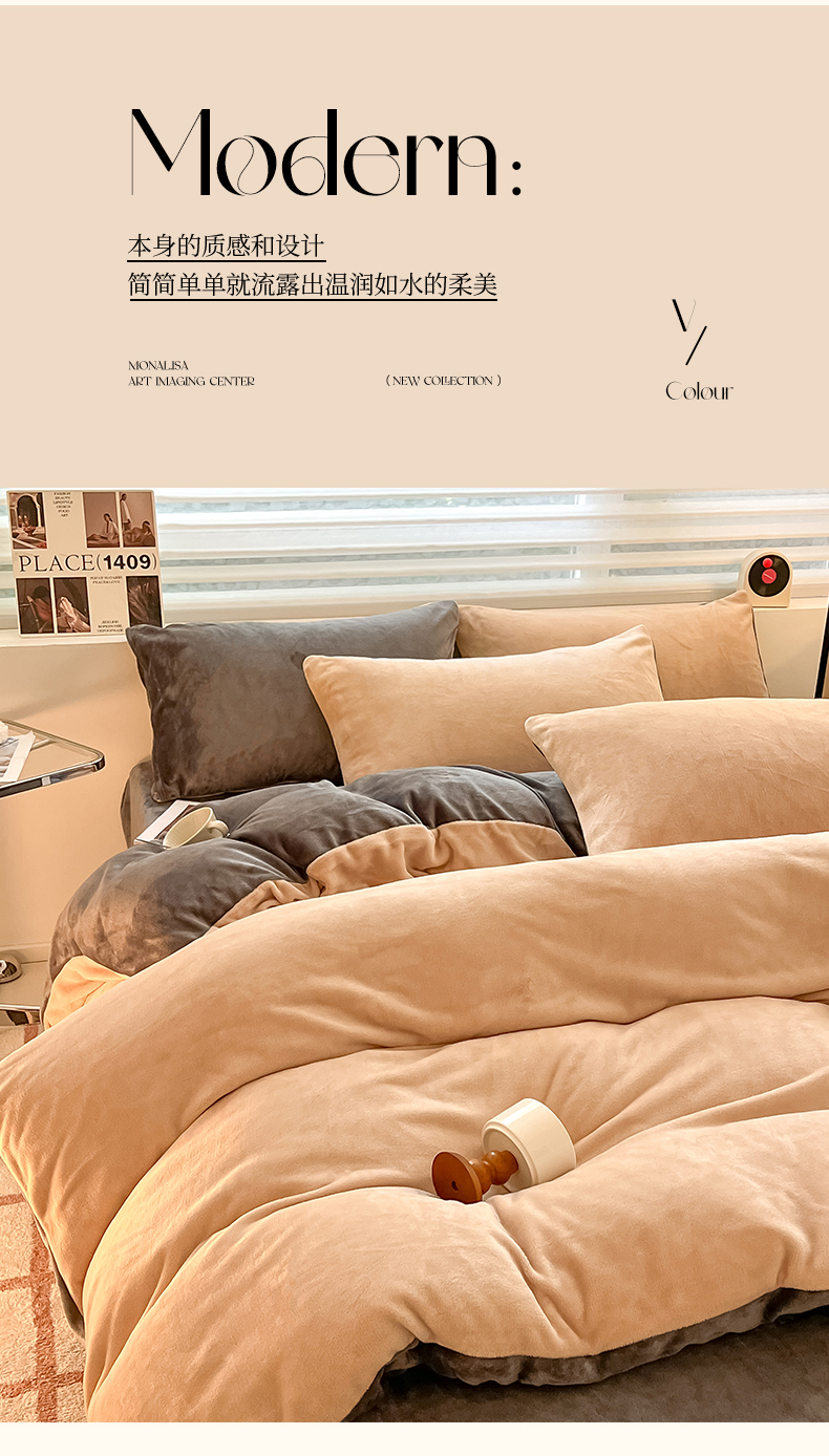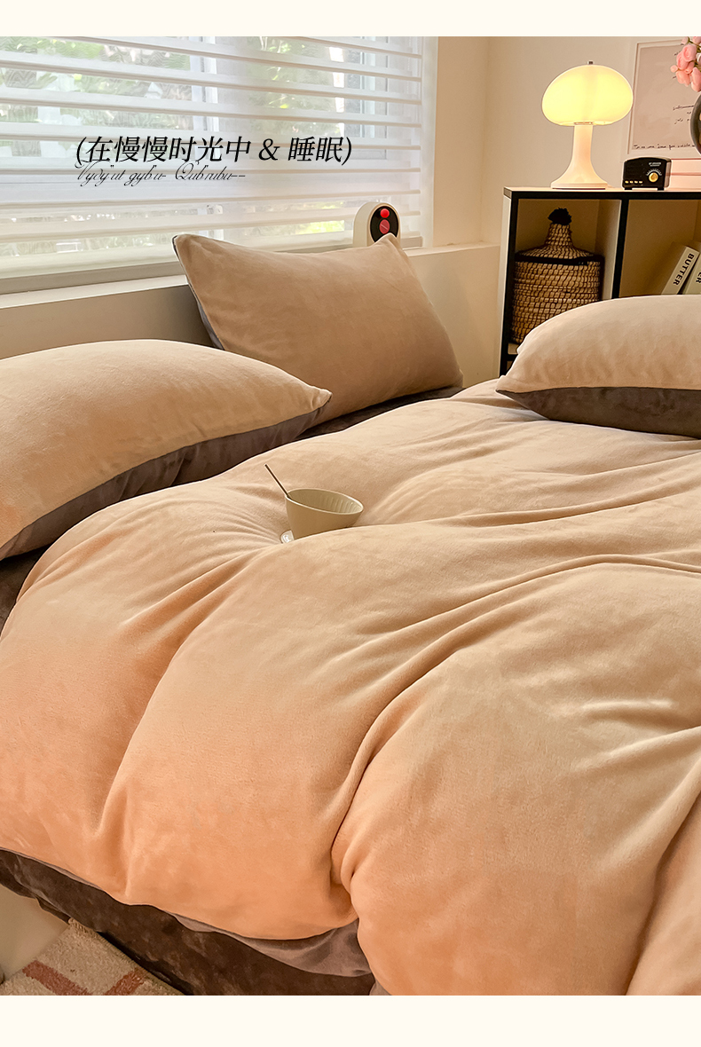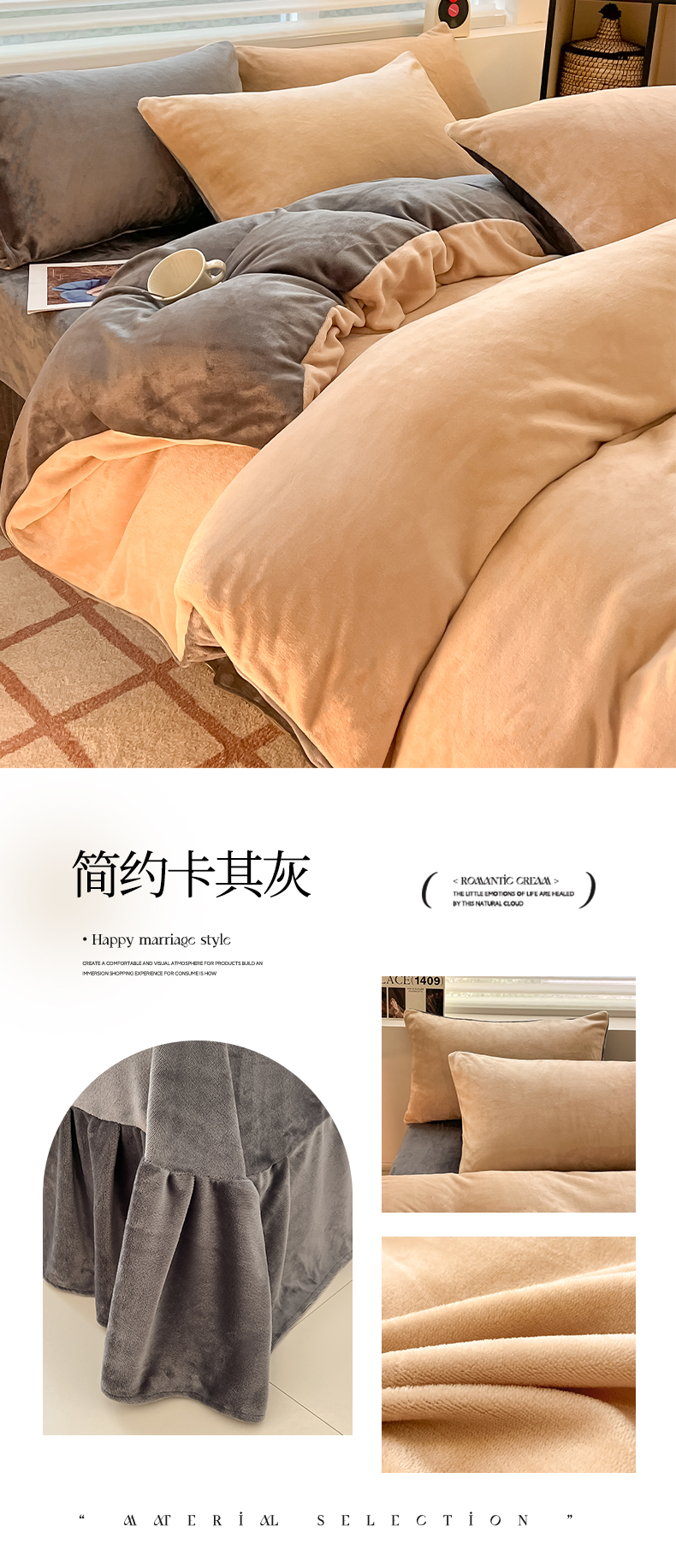 绘萱 2025新款高克重纯色双拼牛奶绒四件套 简约卡其灰