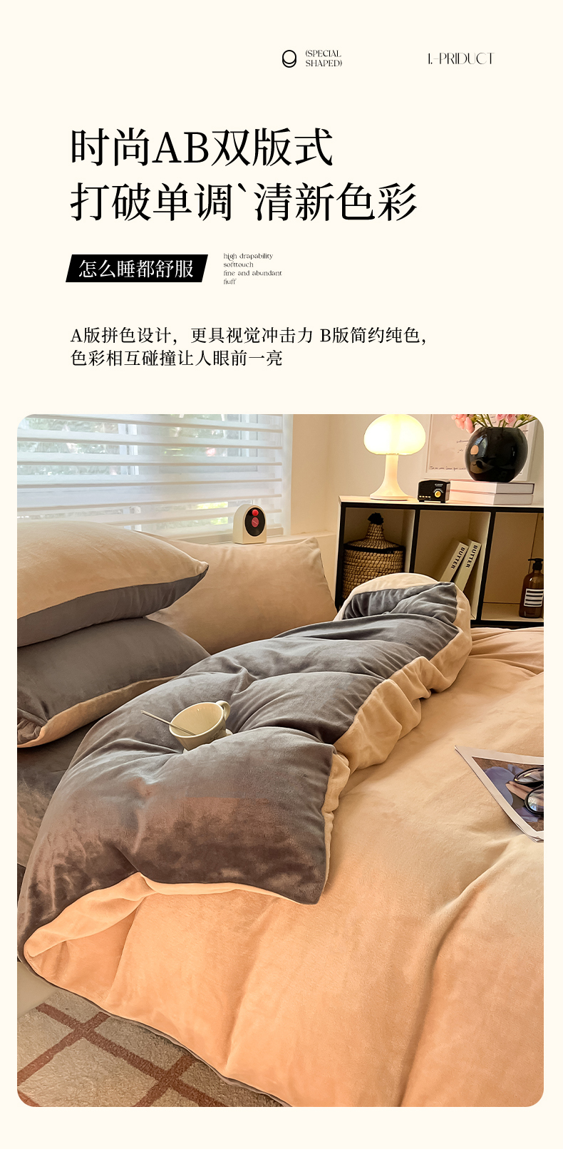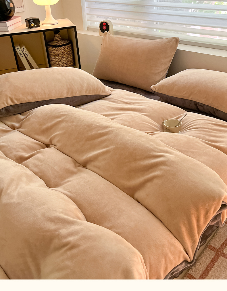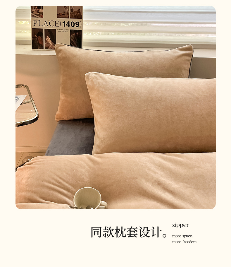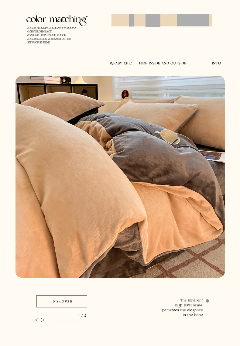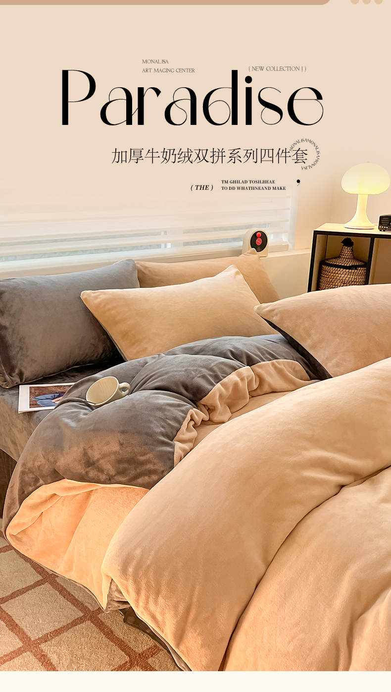 绘萱 2025新款高克重纯色双拼牛奶绒四件套 简约卡其灰