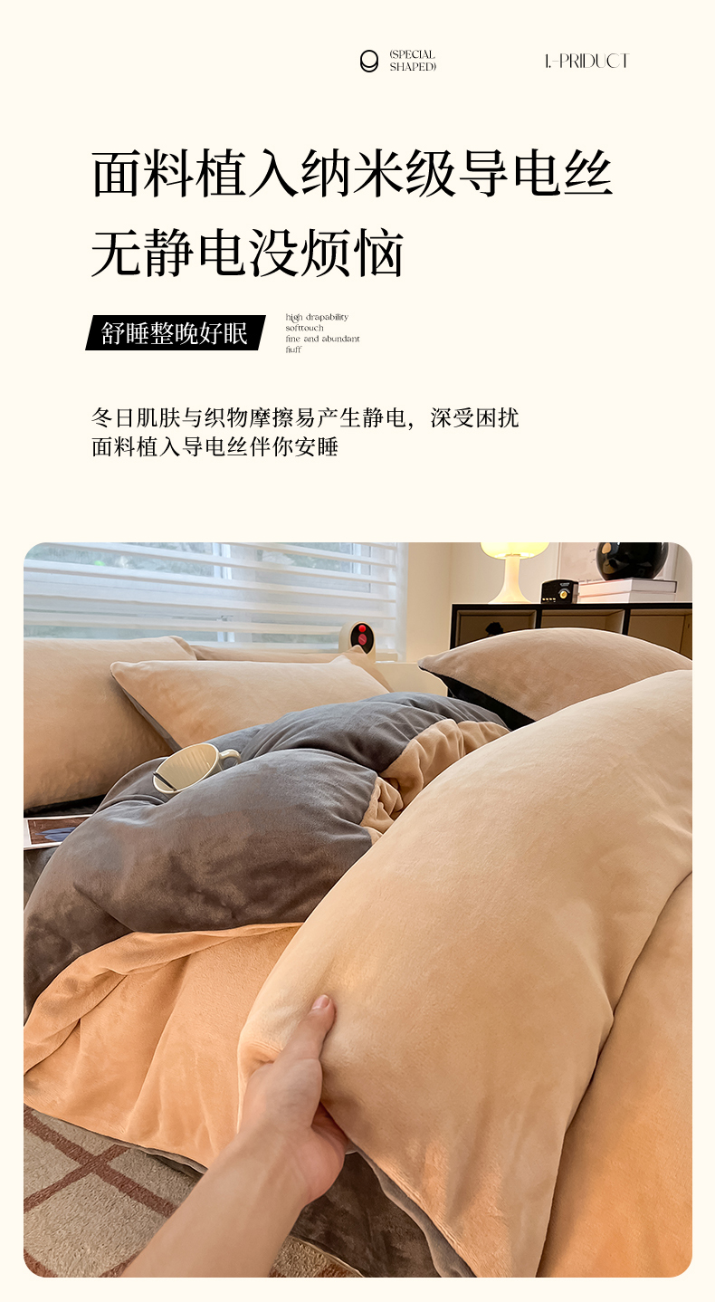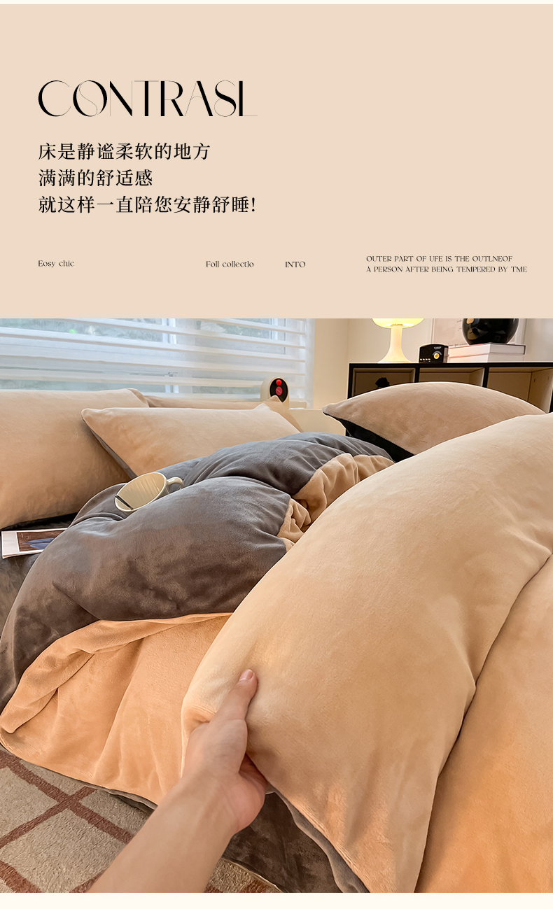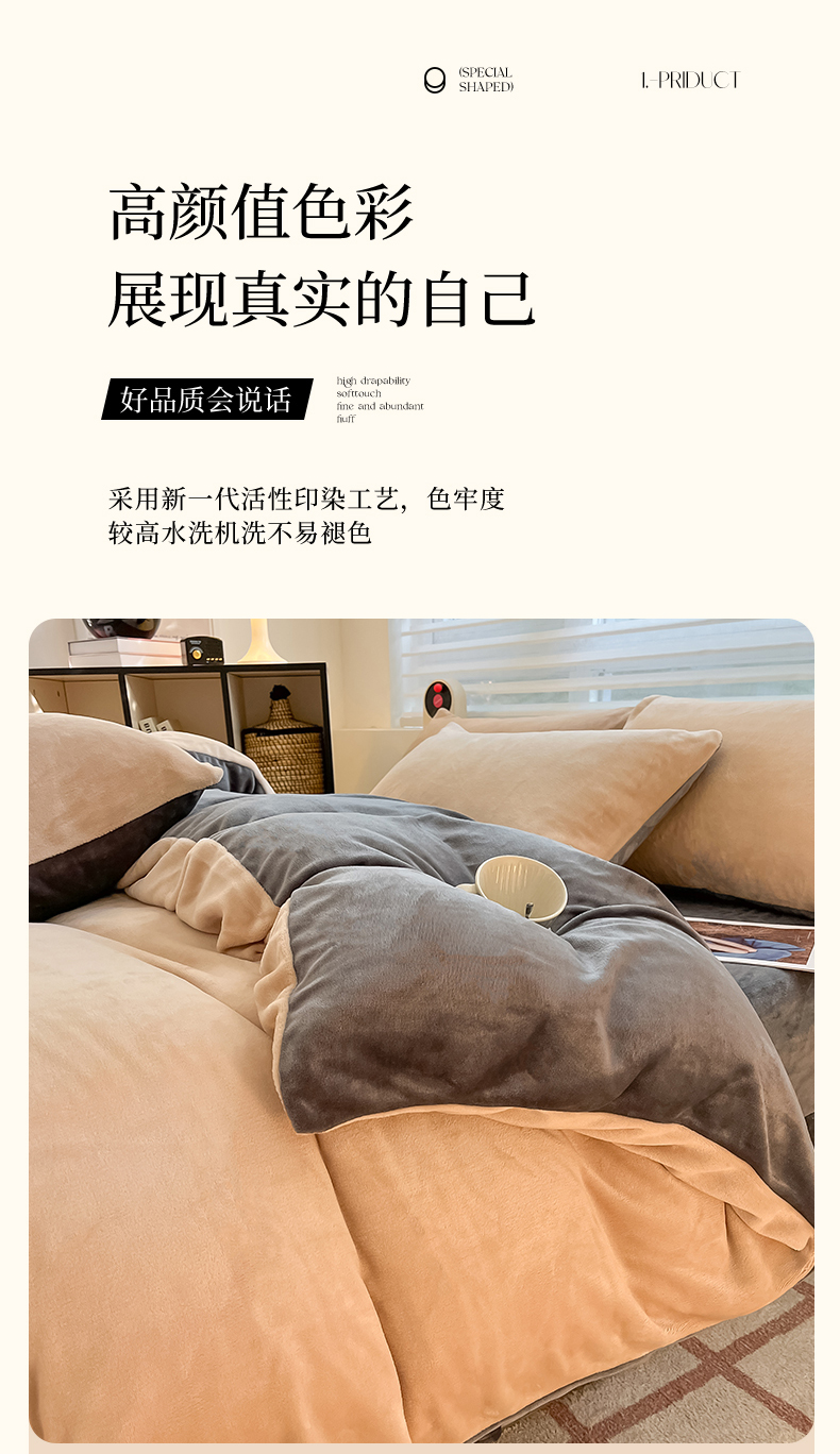 商品名称:绘萱 2025新款高克重纯色双拼牛奶绒四件套 简约卡其灰
