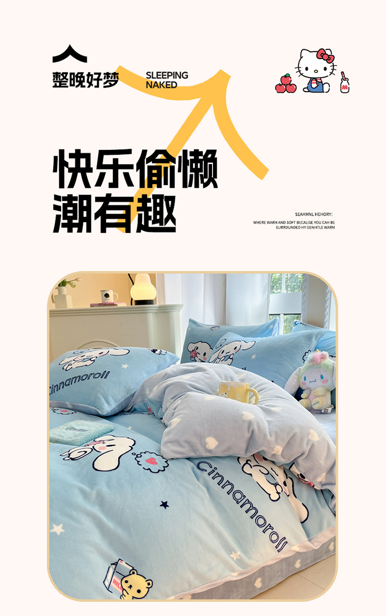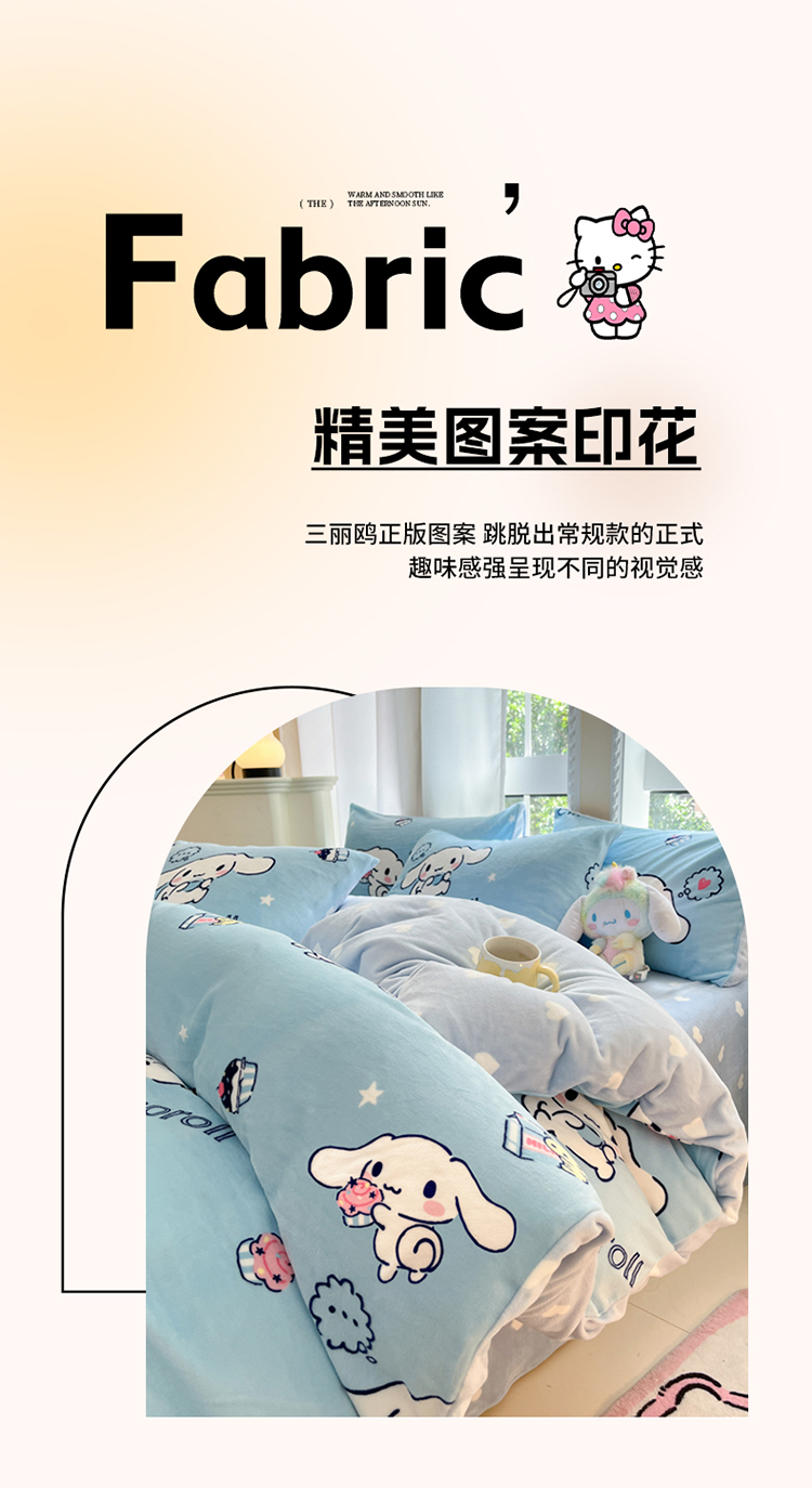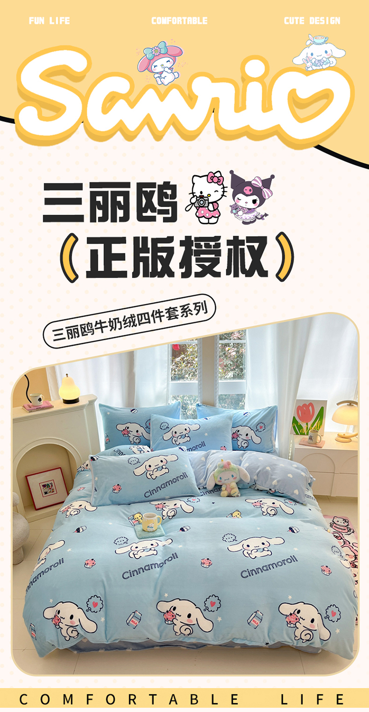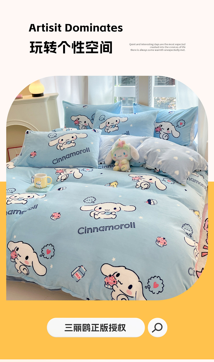 当前位置: 91家纺网 > 商品网购 > 床品套件 > 四件套 > 牛奶绒四件套 > 2024新款三丽鸥牛奶绒小版四件套 牛奶绒小版-蛋糕玉桂狗