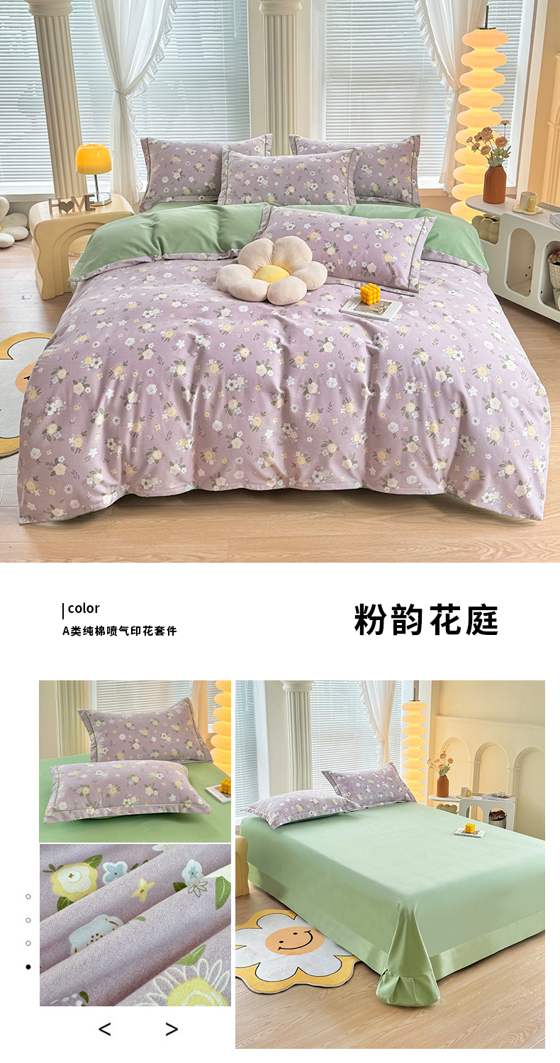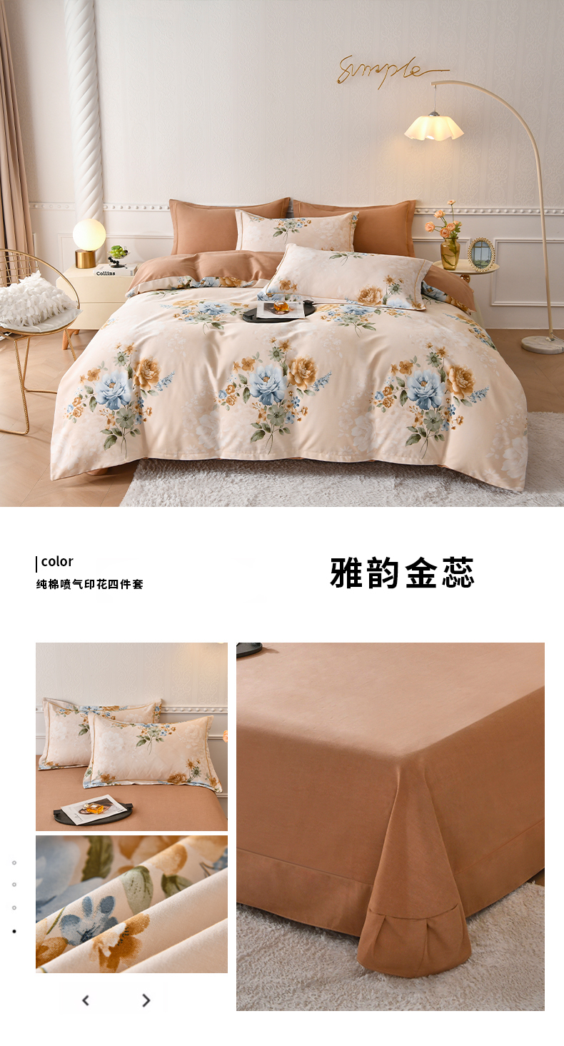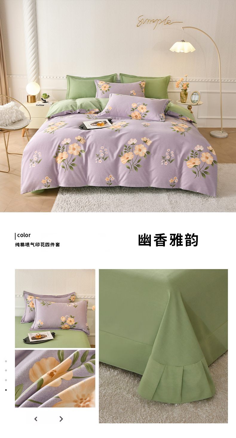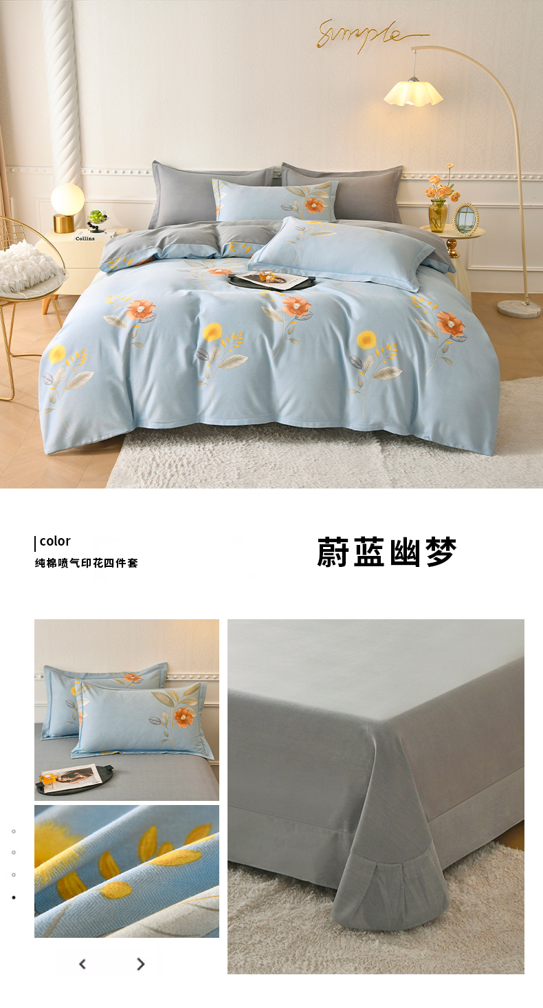 (总)优尚家纺 2025新款全棉磨毛纯棉喷气印花清新轻奢款四件套