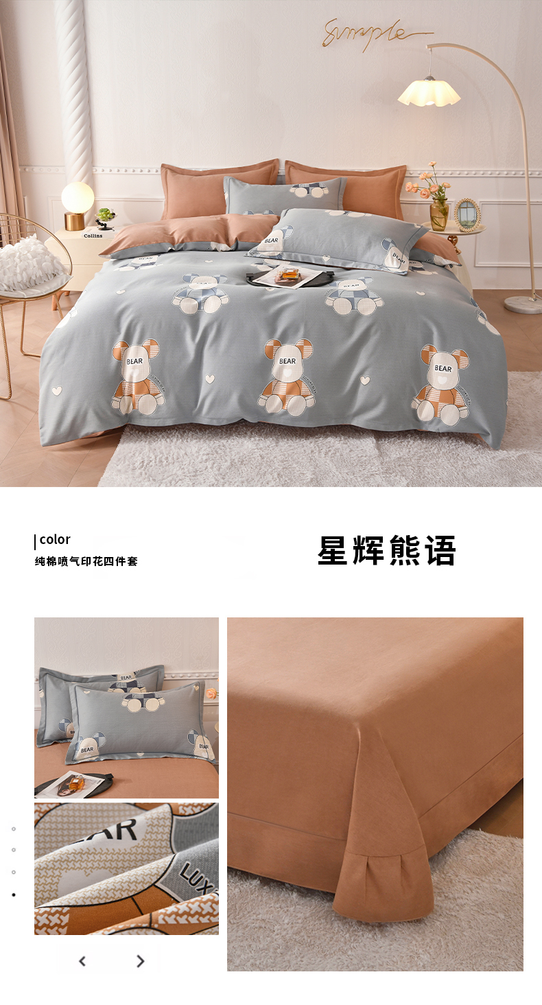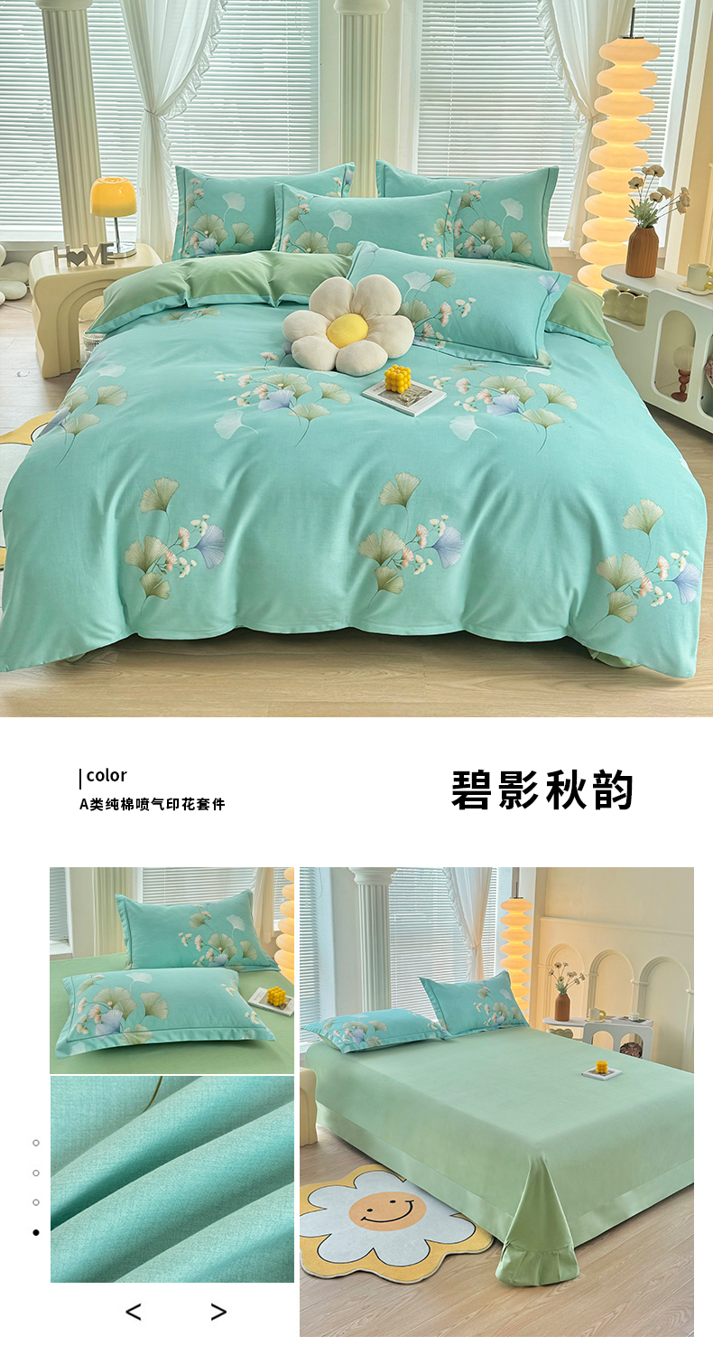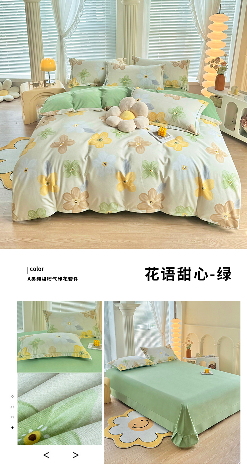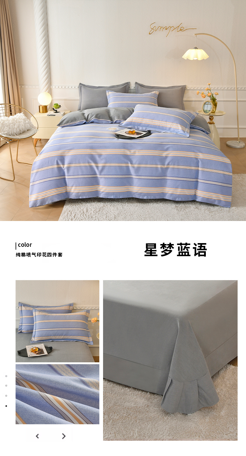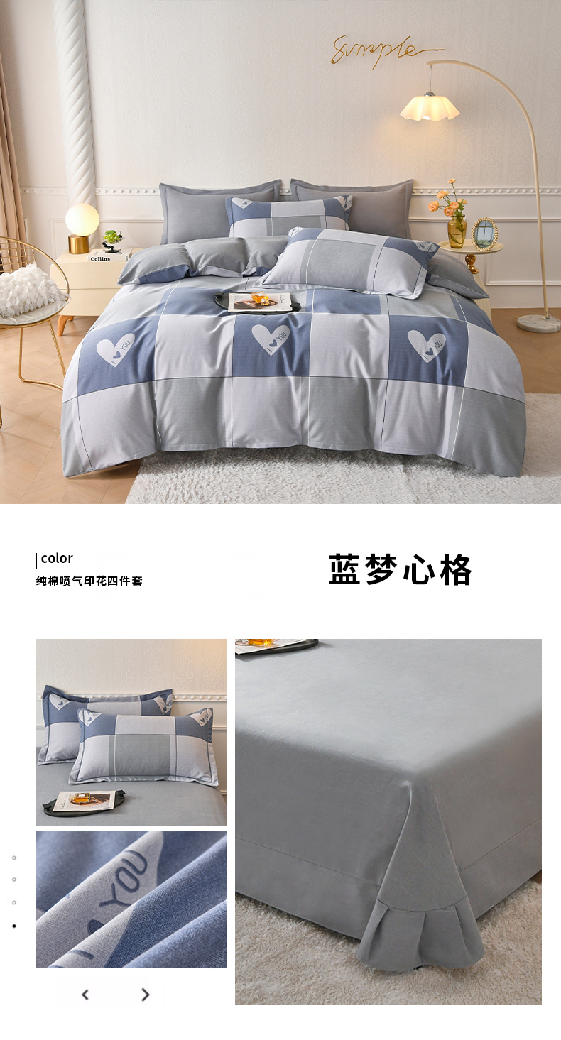 (总)优尚家纺 2025新款全棉磨毛纯棉喷气印花清新轻奢款四件套