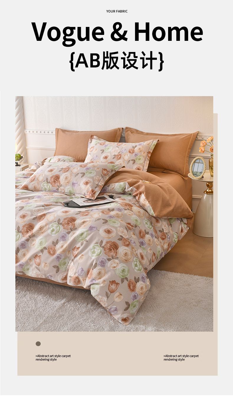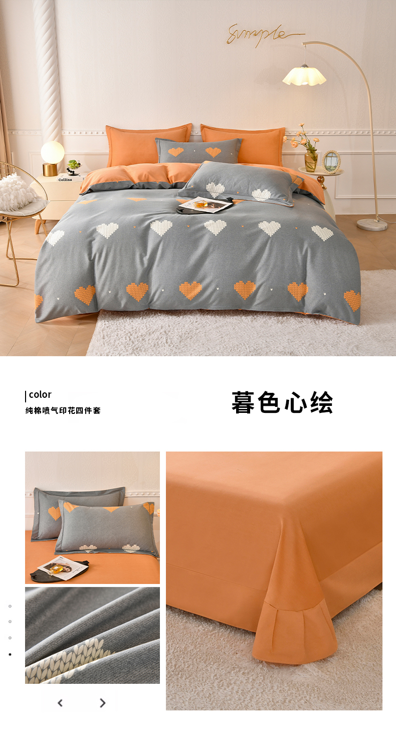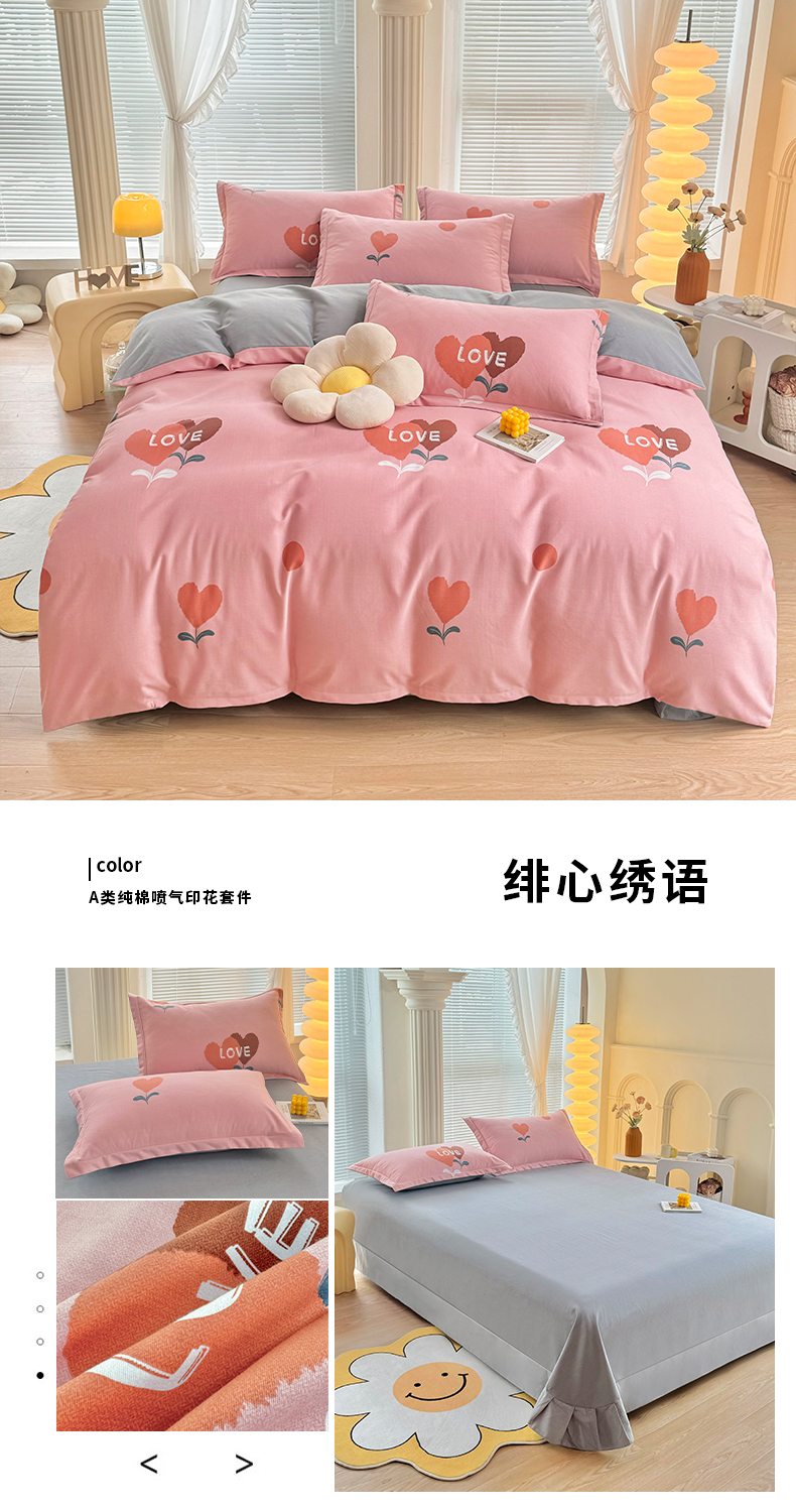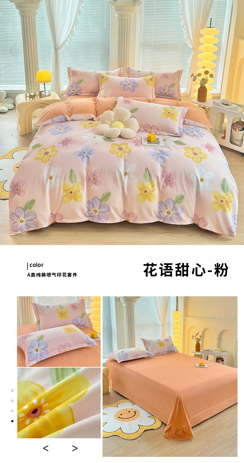(总)优尚家纺 2025新款全棉磨毛纯棉喷气印花清新轻奢款四件套