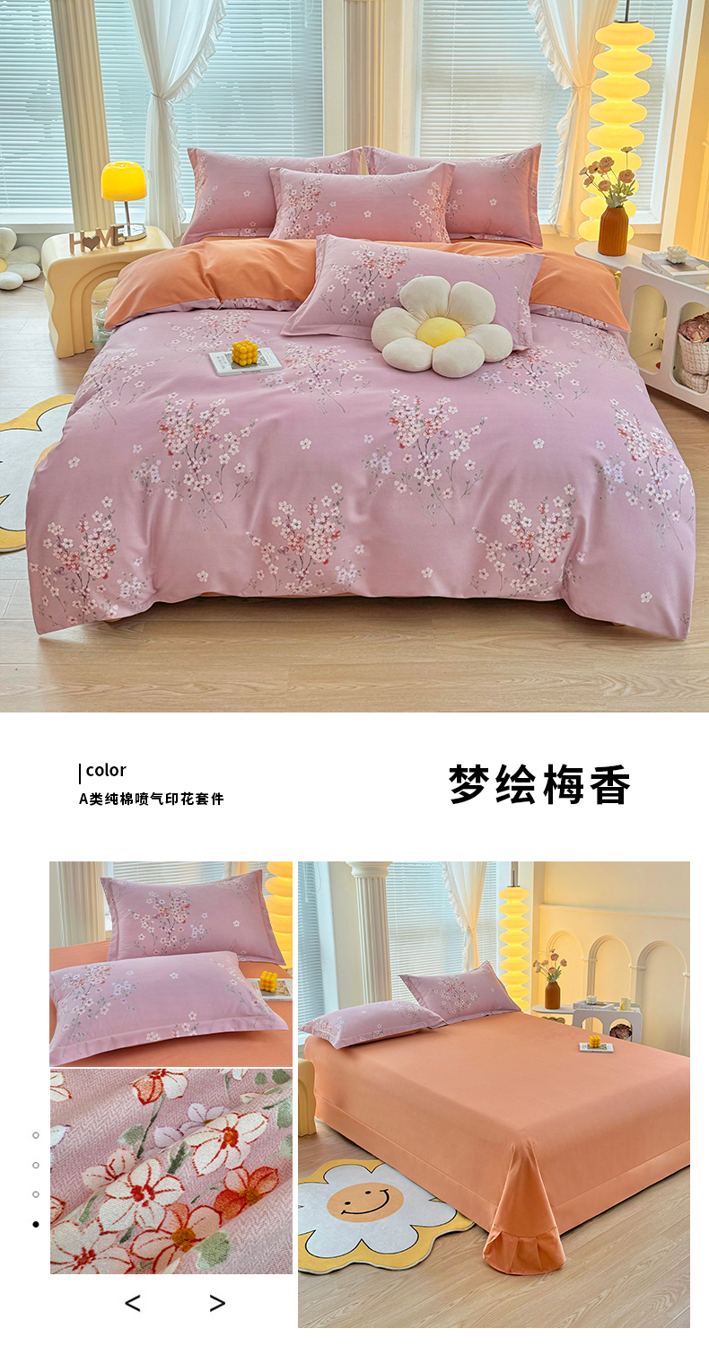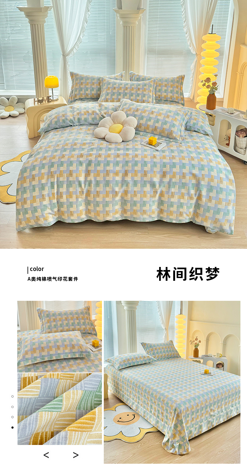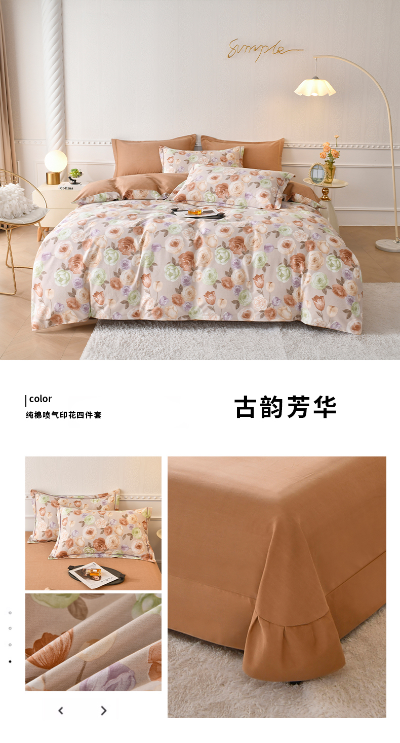 商品名称:(总)优尚家纺 2025新款全棉磨毛纯棉喷气印花清新轻奢款四件套