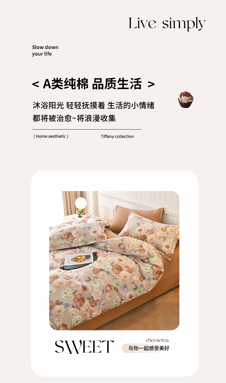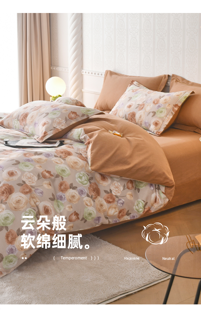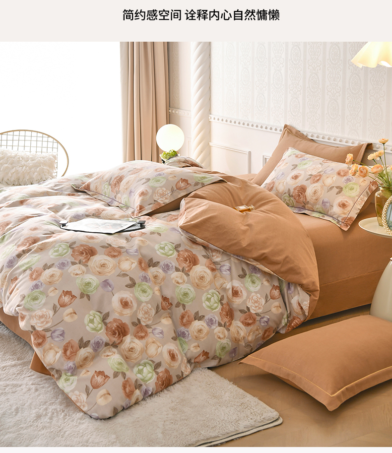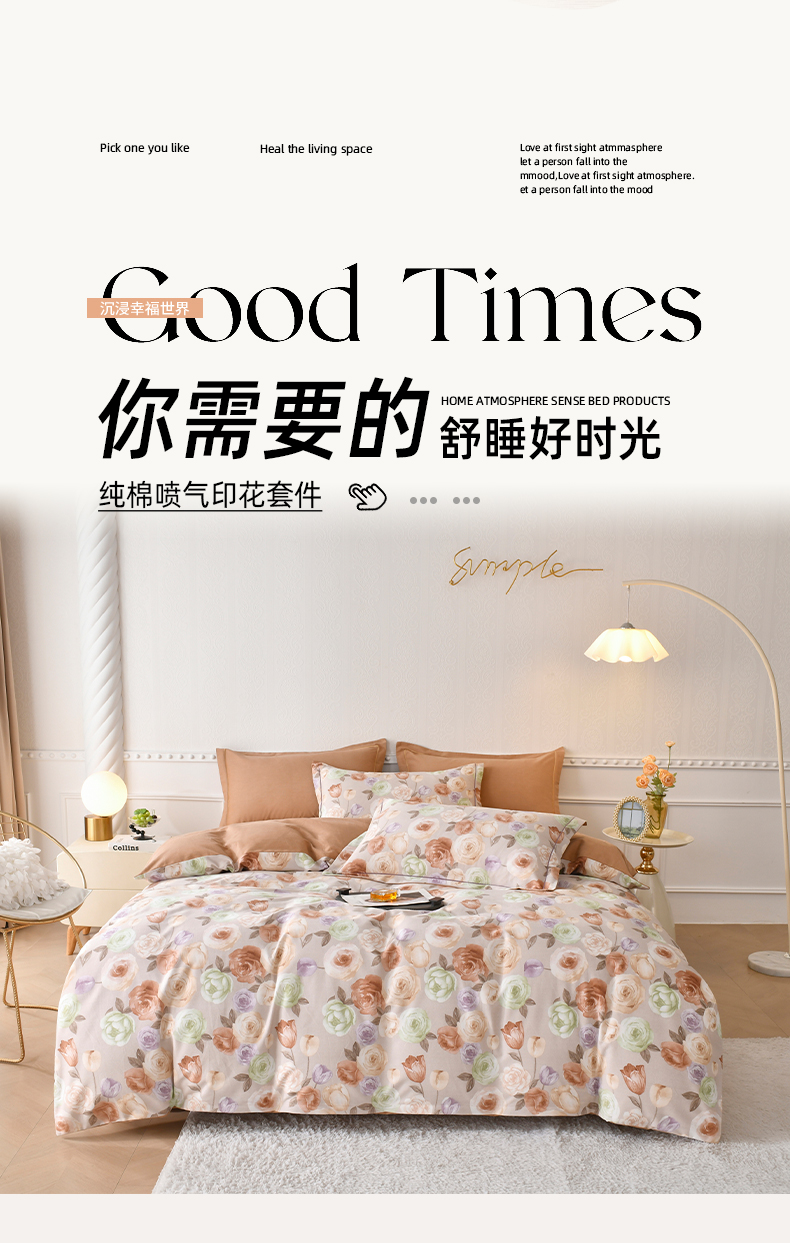 商品名称:(总)优尚家纺 2025新款全棉磨毛纯棉喷气印花清新轻奢款四件套