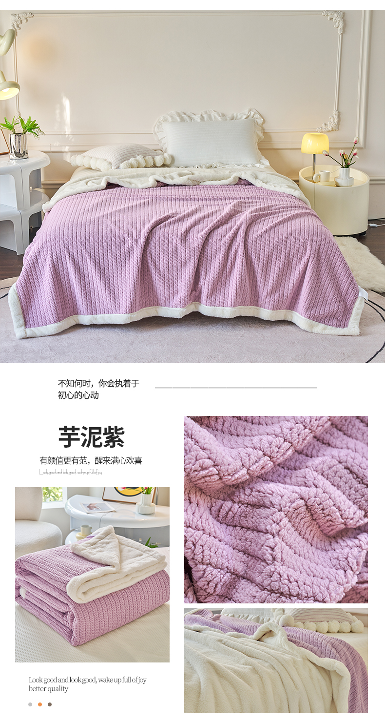 畅畅家纺 2024新款A面编织绒B面兔毛绒纯色毛毯 芋泥紫