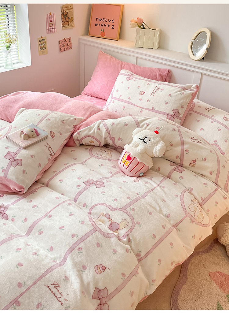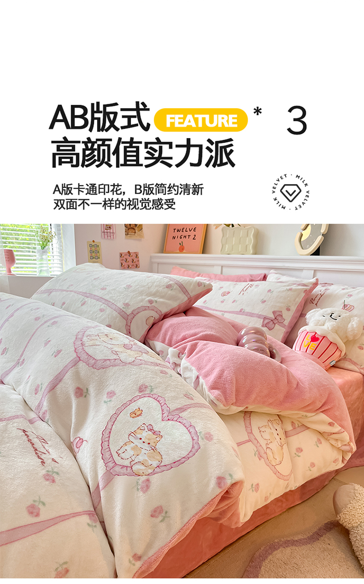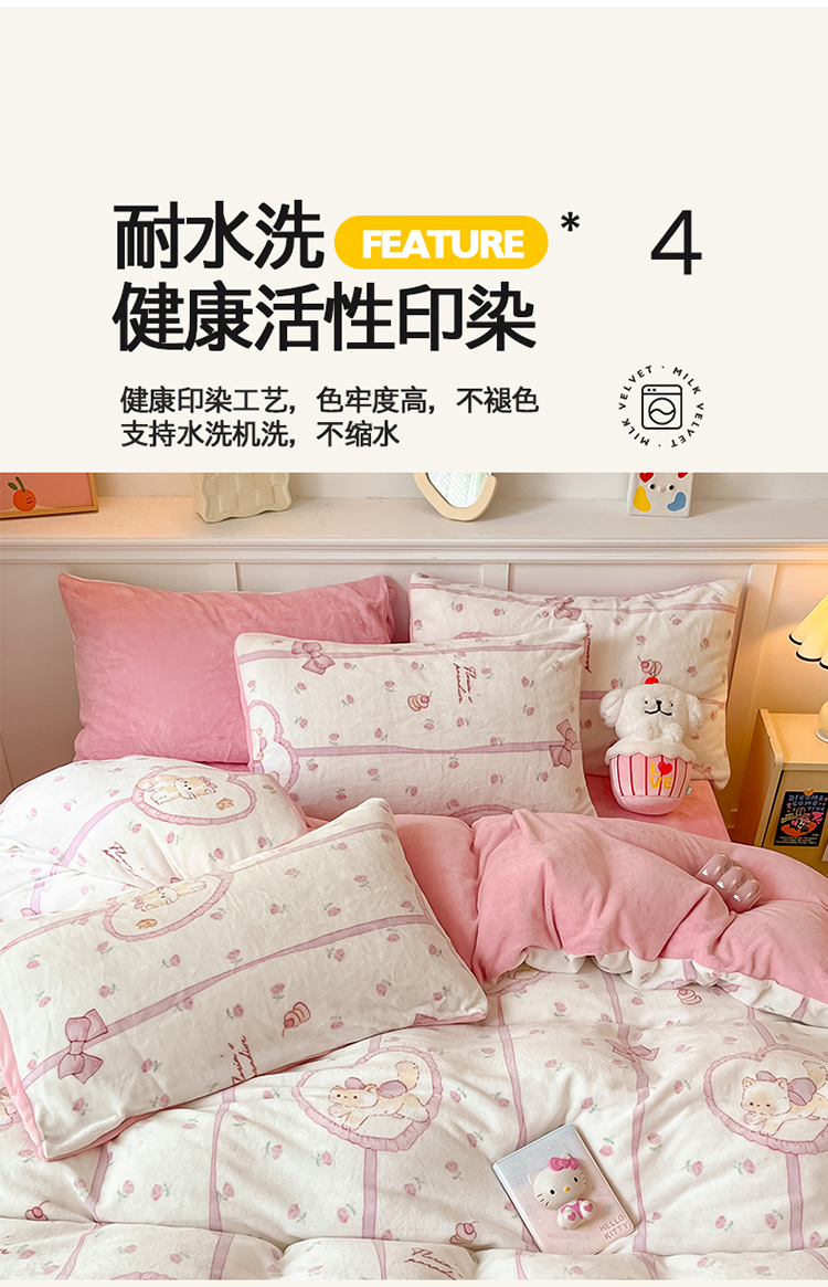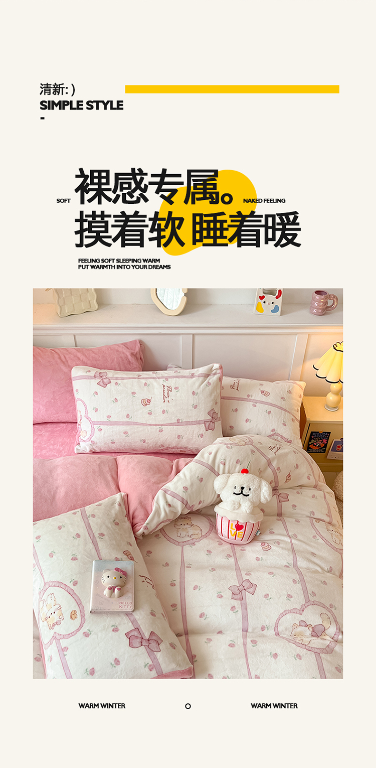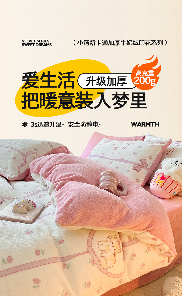 2024新款200g加厚防静电牛奶绒小清新四件套 绒-公主喵