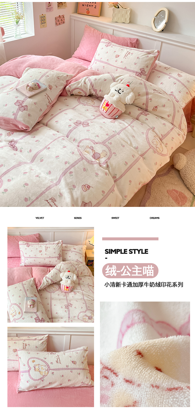 商品名称:2024新款200g加厚防静电牛奶绒小清新四件套 绒-公主喵