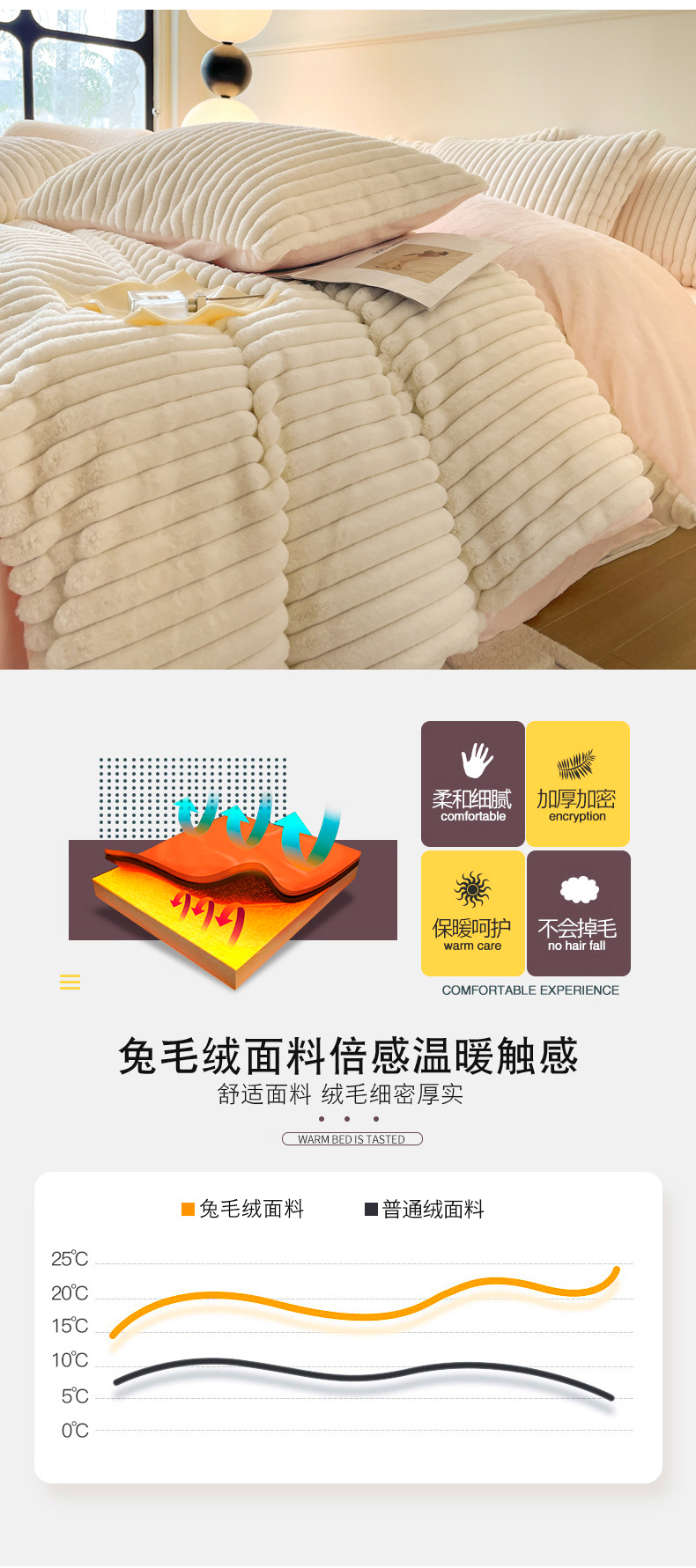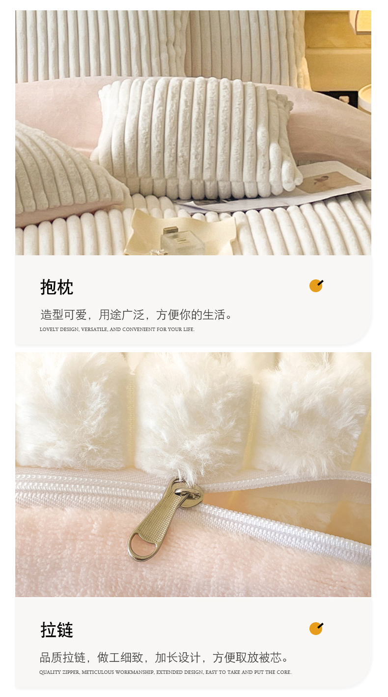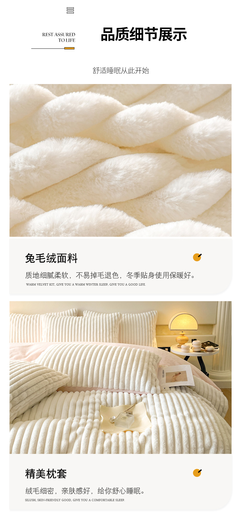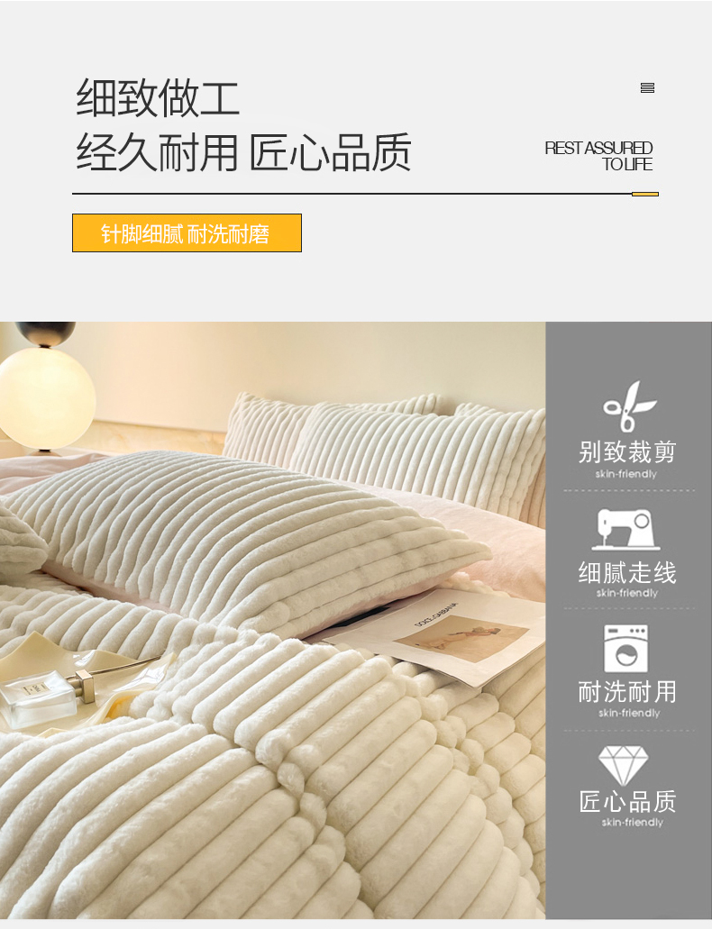 商品名称:2024新款全消光兔毛320克牛奶绒A类纯色立体四件套 兔毛抽条白粉
