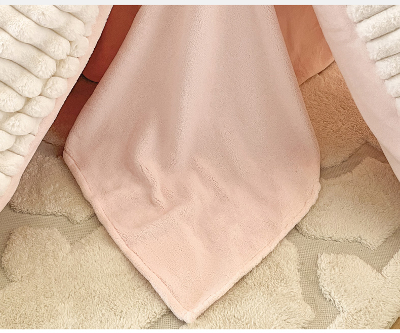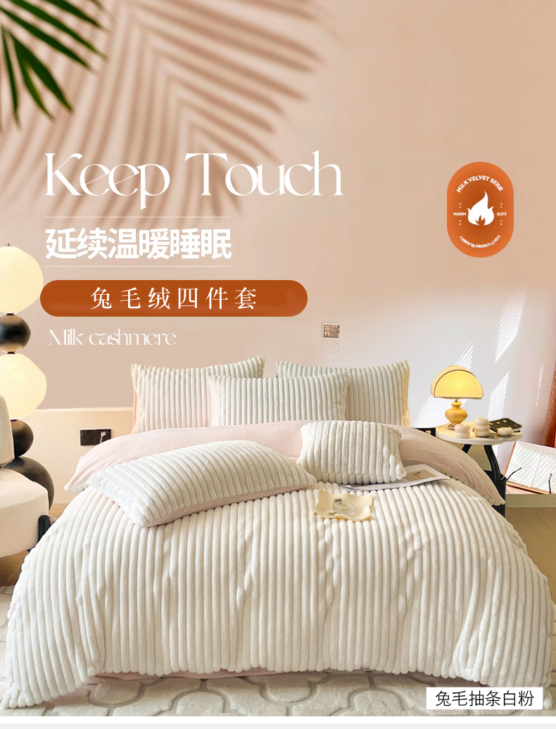 2024新款全消光兔毛320克牛奶绒A类纯色立体四件套 兔毛抽条白粉