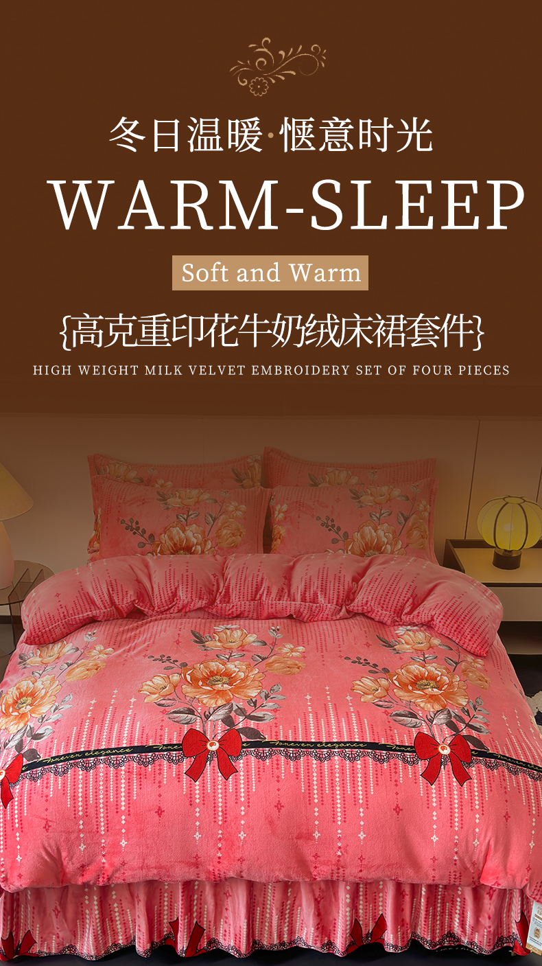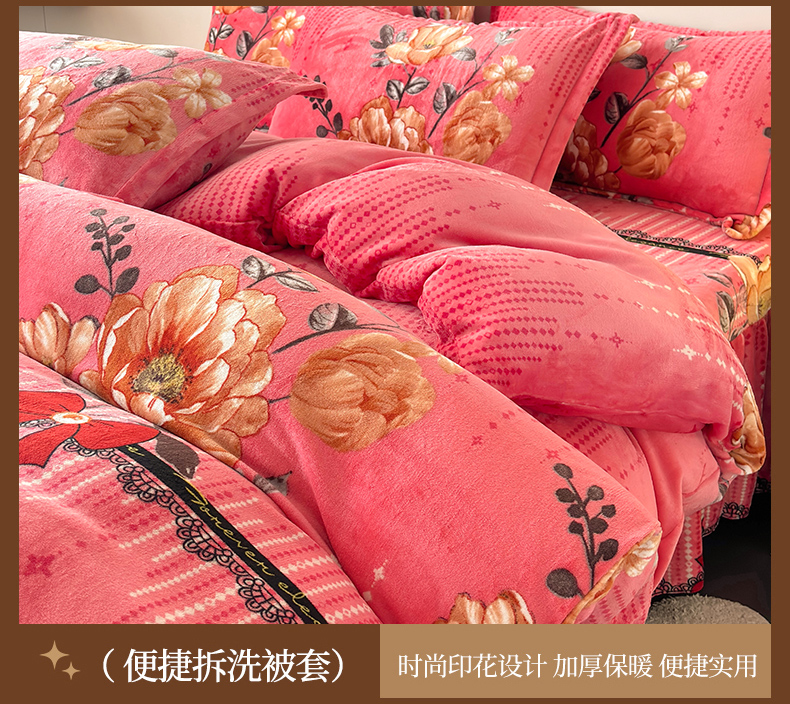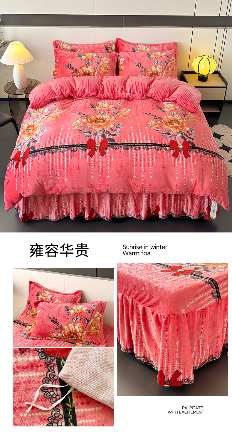 当前位置: 91家纺网 > 商品网购 > 床品套件 > 四件套 > 牛奶绒四件套 > 董韵家纺 2025新款高克重全消光牛奶绒法莱绒金貂绒印花单品被套床裙四件套(提供买家秀)雍容华贵