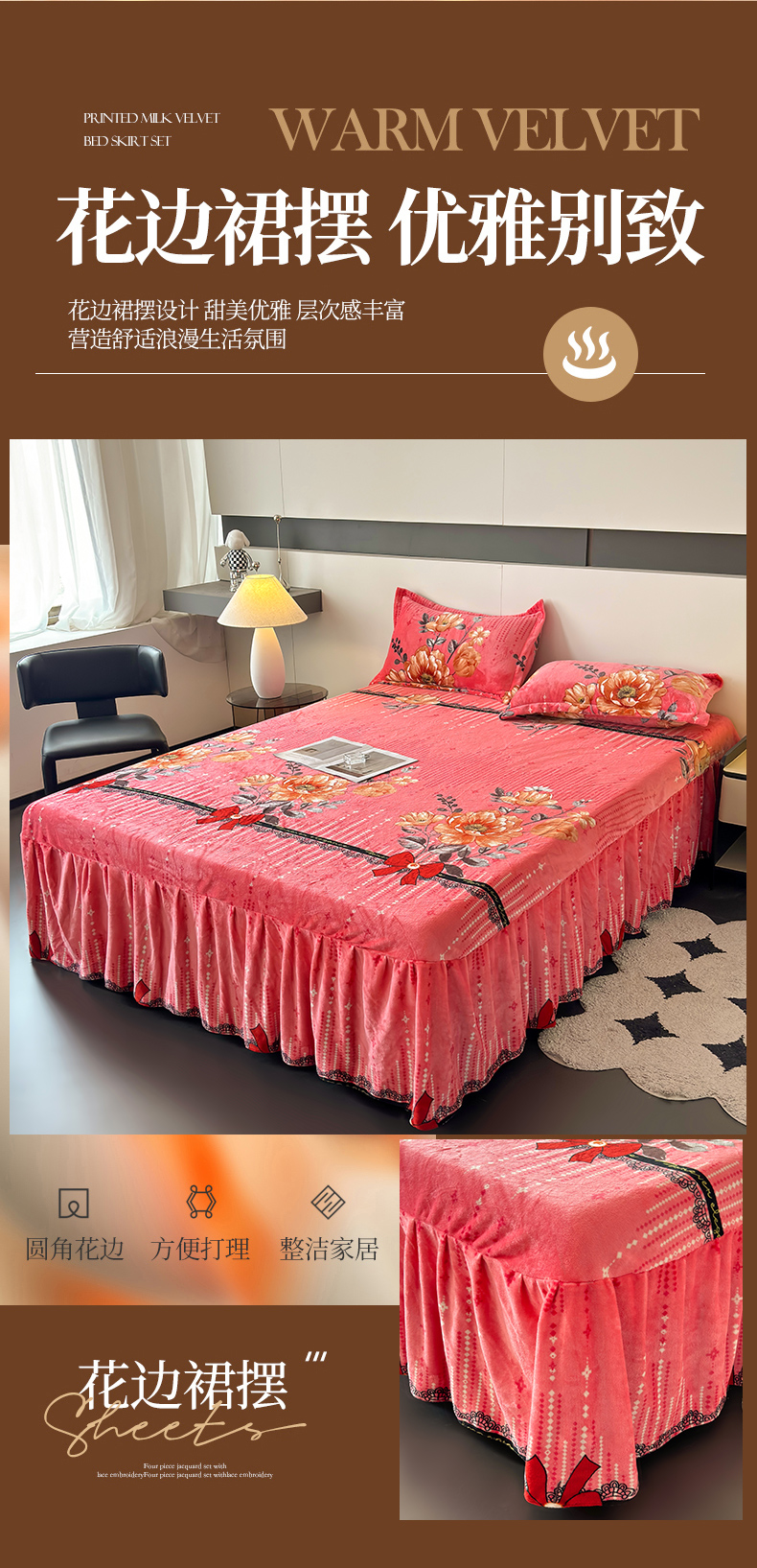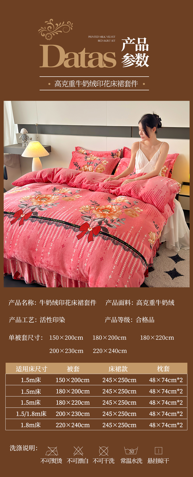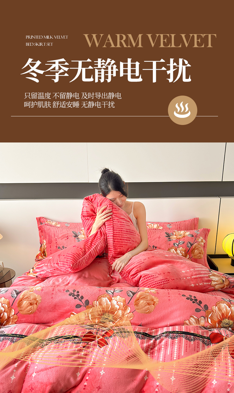 当前位置: 91家纺网 > 商品网购 > 床品套件 > 四件套 > 牛奶绒四件套 > 董韵家纺 2025新款高克重全消光牛奶绒法莱绒金貂绒印花单品被套床裙四件套(提供买家秀)雍容华贵