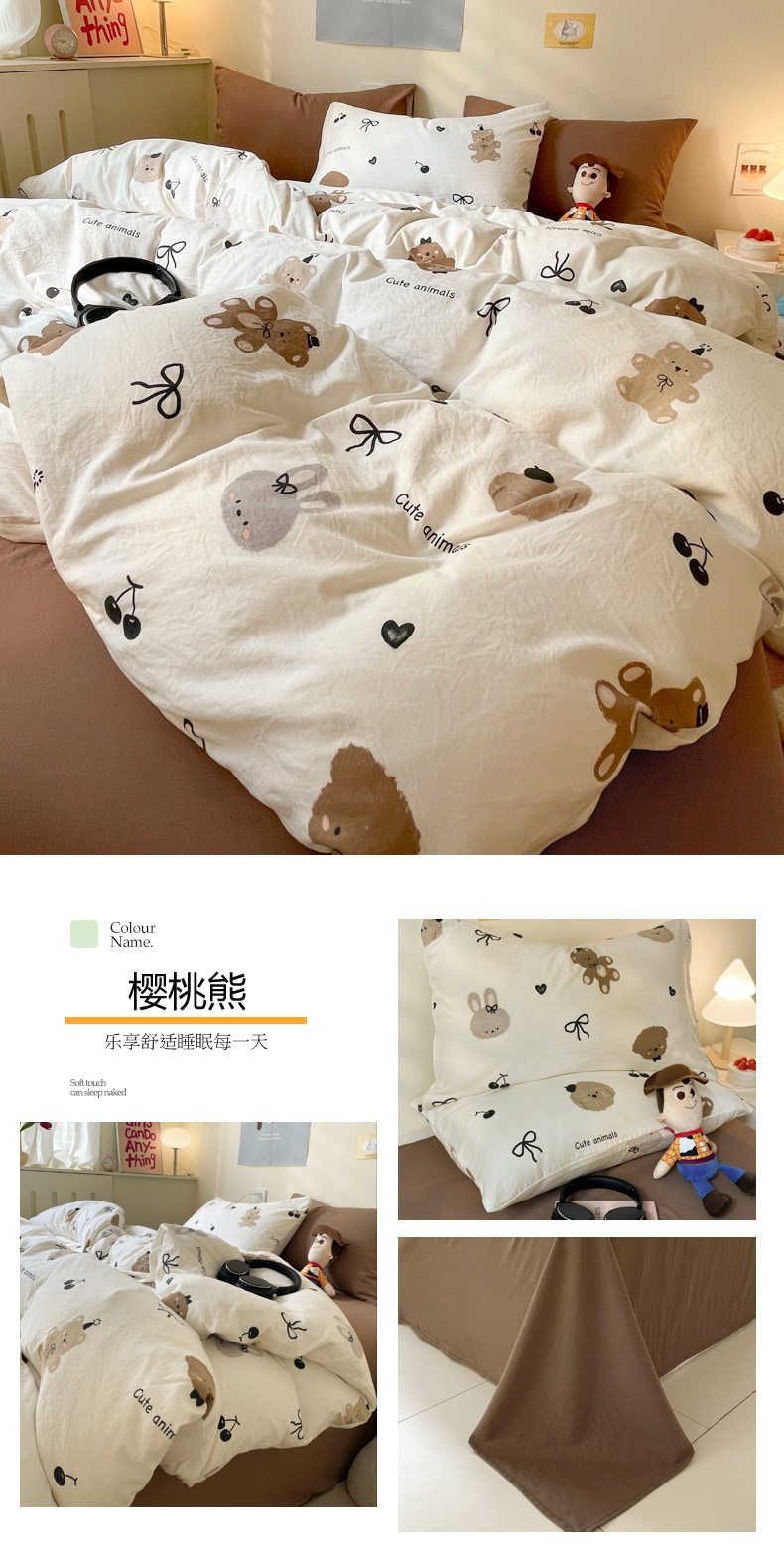 当前位置: 91家纺网 > 商品网购 > 床品套件 > 四件套 > 其它四件套 > 2024新款亲肤舒适可爱卡通四件套系列 樱桃熊