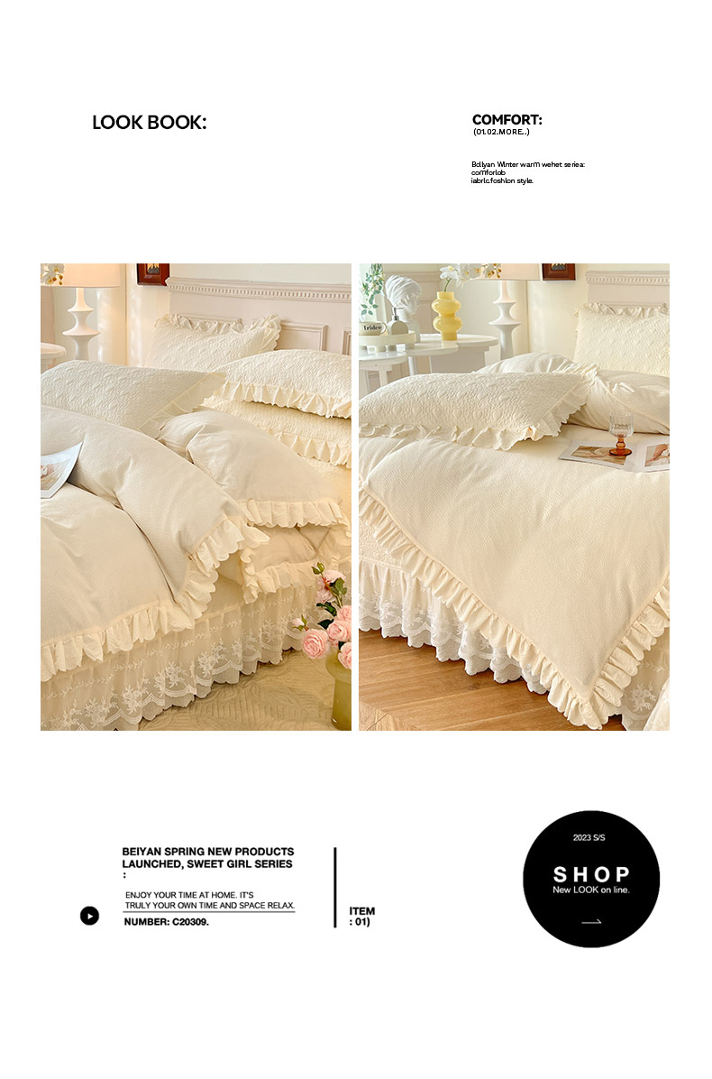 当前位置: 91家纺网 > 商品网购 > 床品套件 > 四件套 > 其它四件套 > 绒世界 2024新款秋冬泡泡双层纱夹棉床盖四件套 米黄