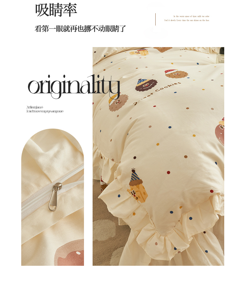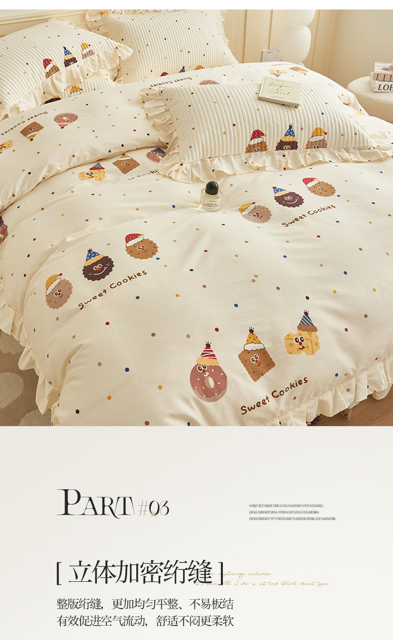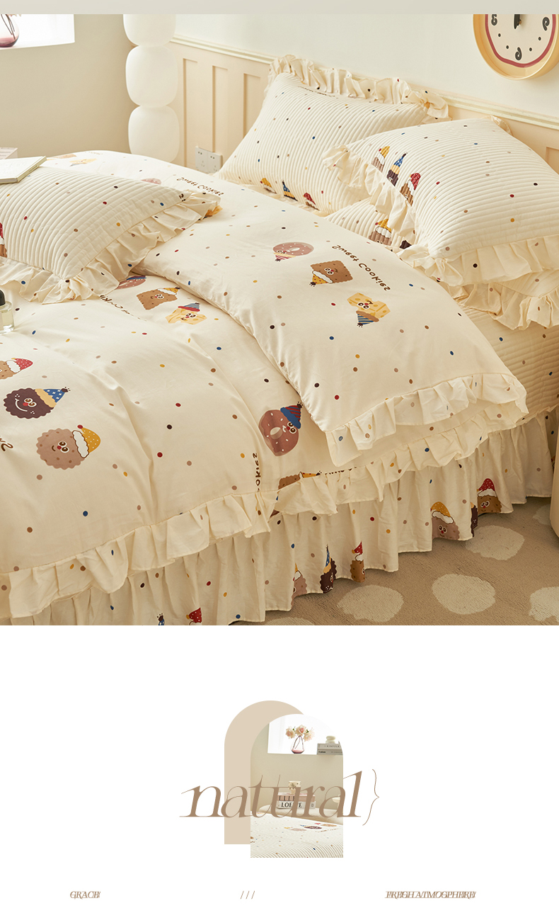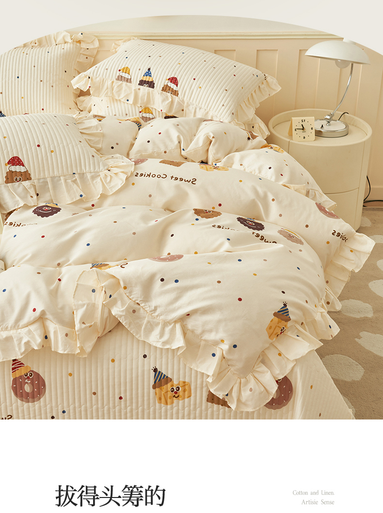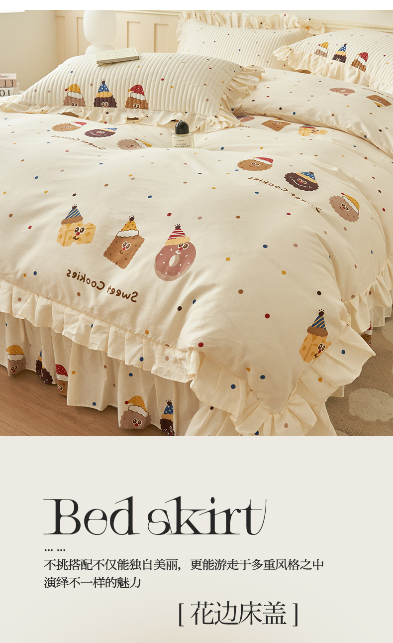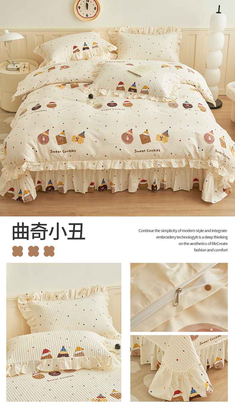 恒爱家纺 2024新款全棉甜美少女四件套曲奇小丑