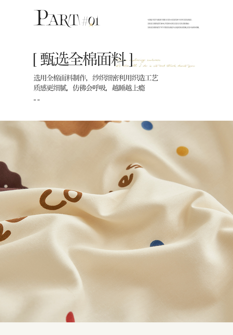 商品名称:恒爱家纺 2024新款全棉甜美少女四件套曲奇小丑