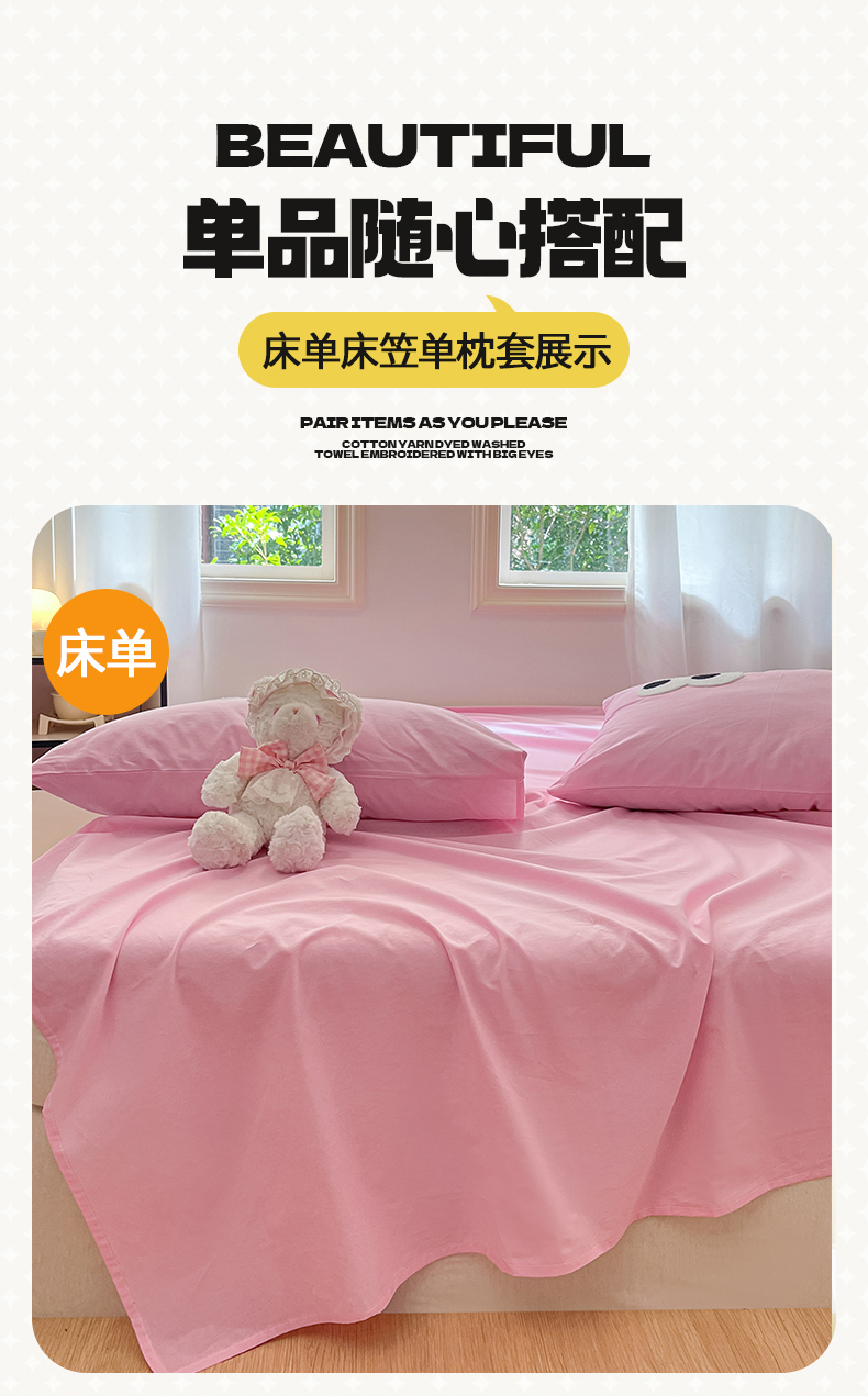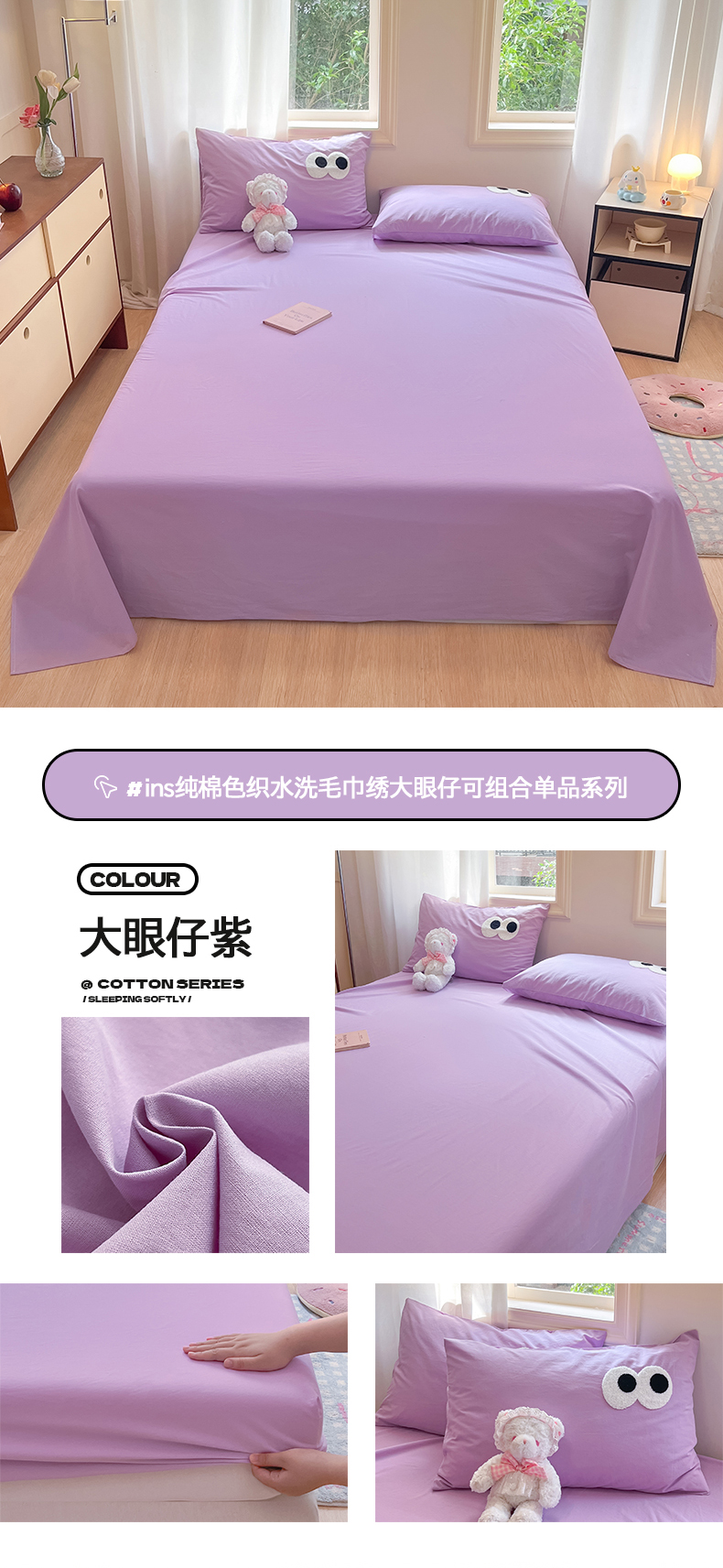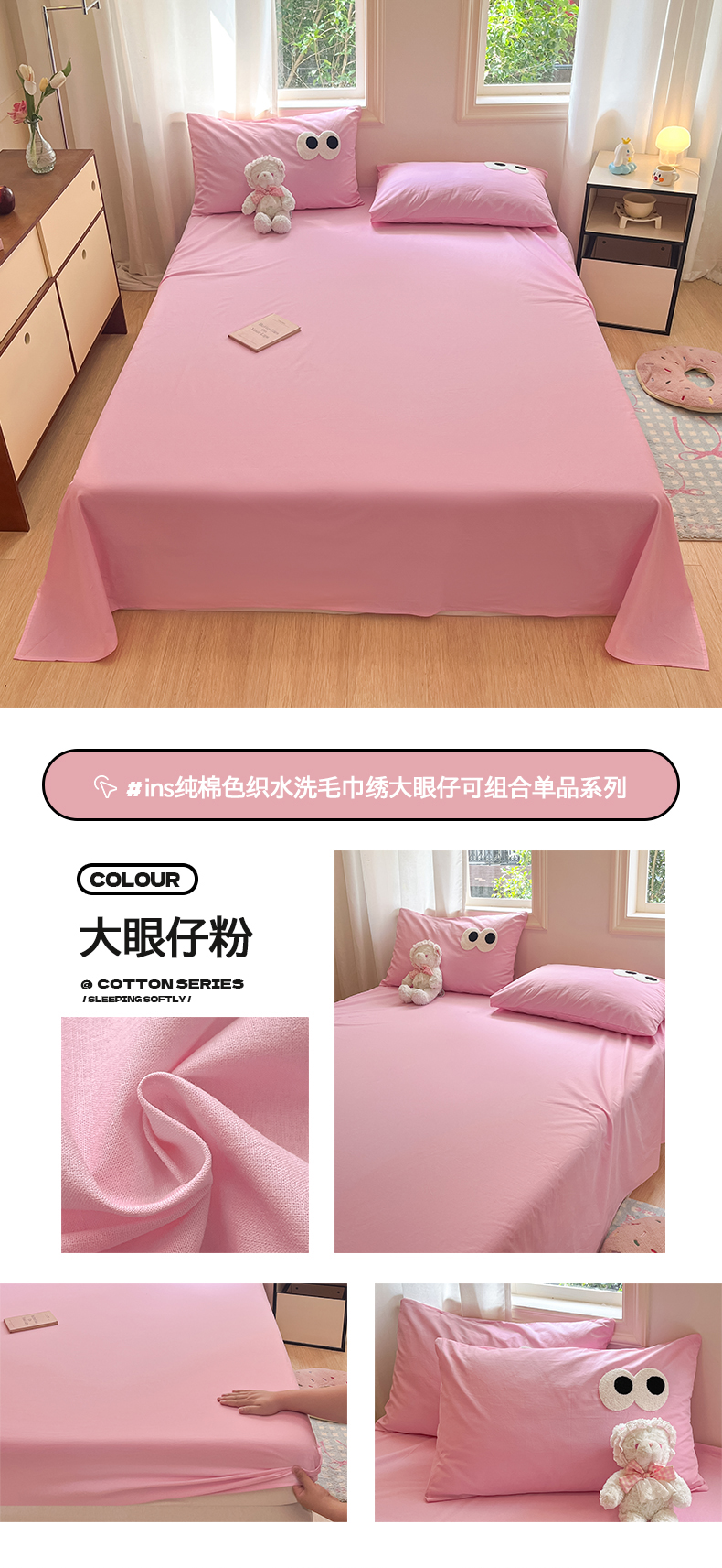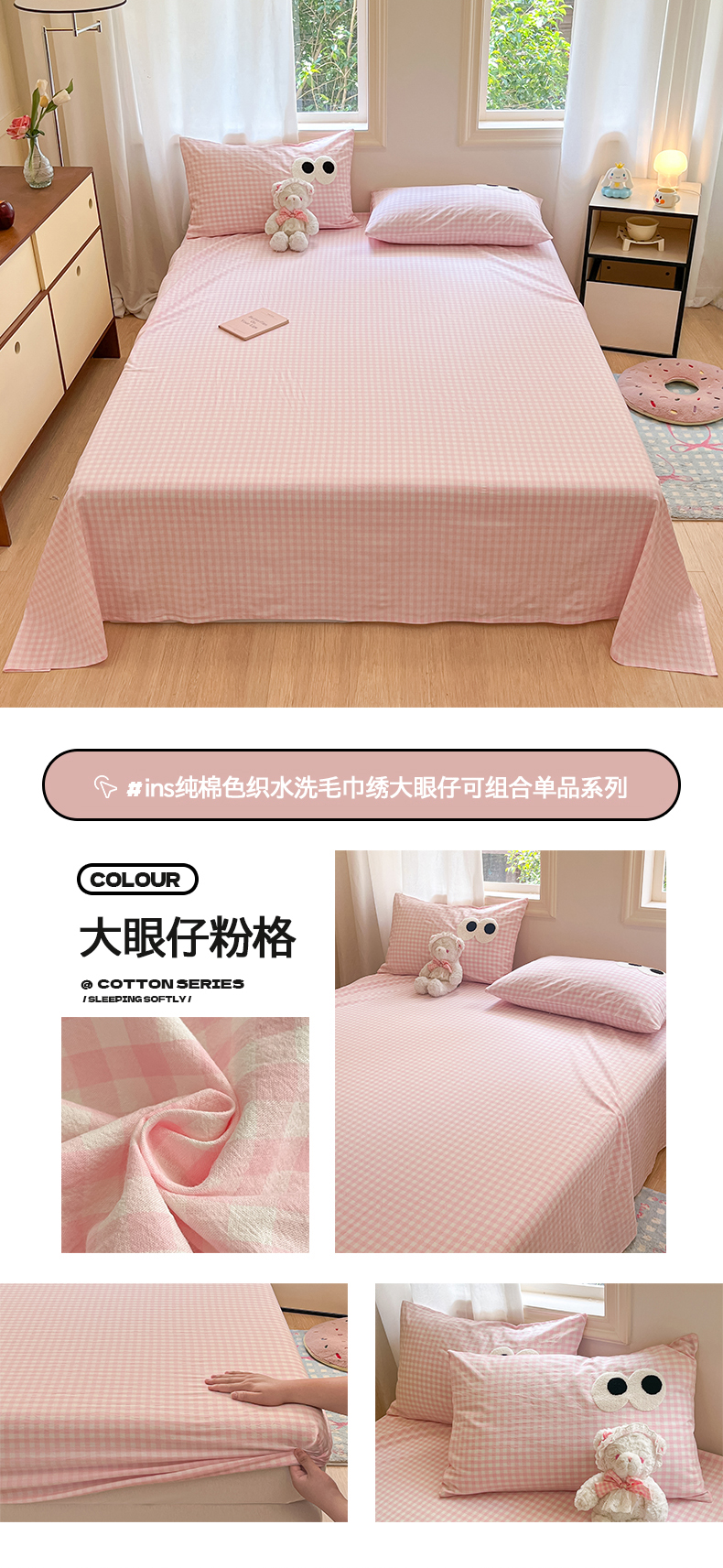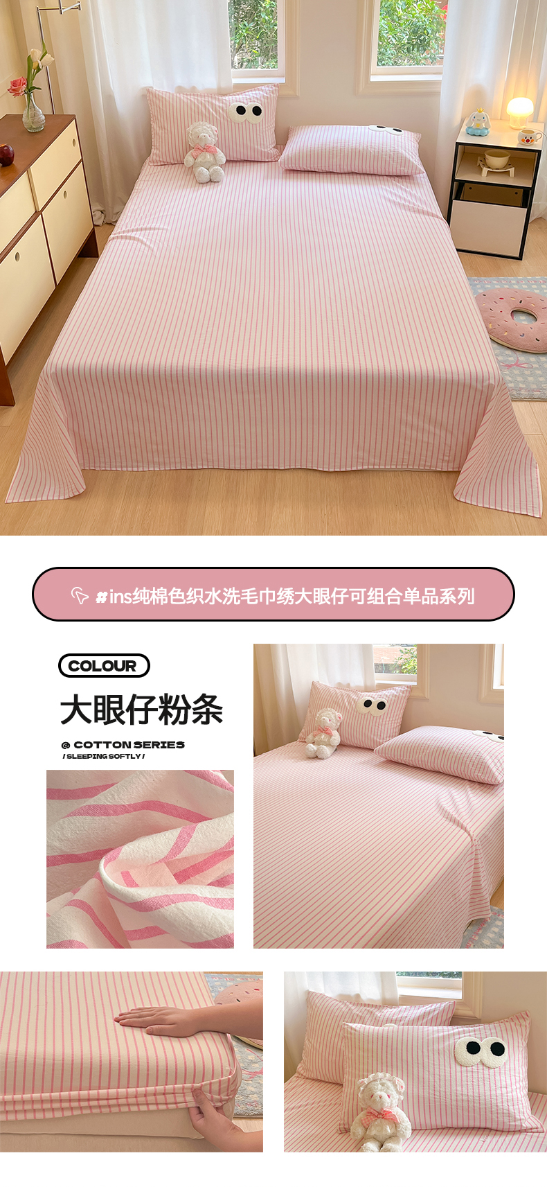 (总)桃子 2024新款ins纯棉色织水洗毛巾绣大眼仔单床笠