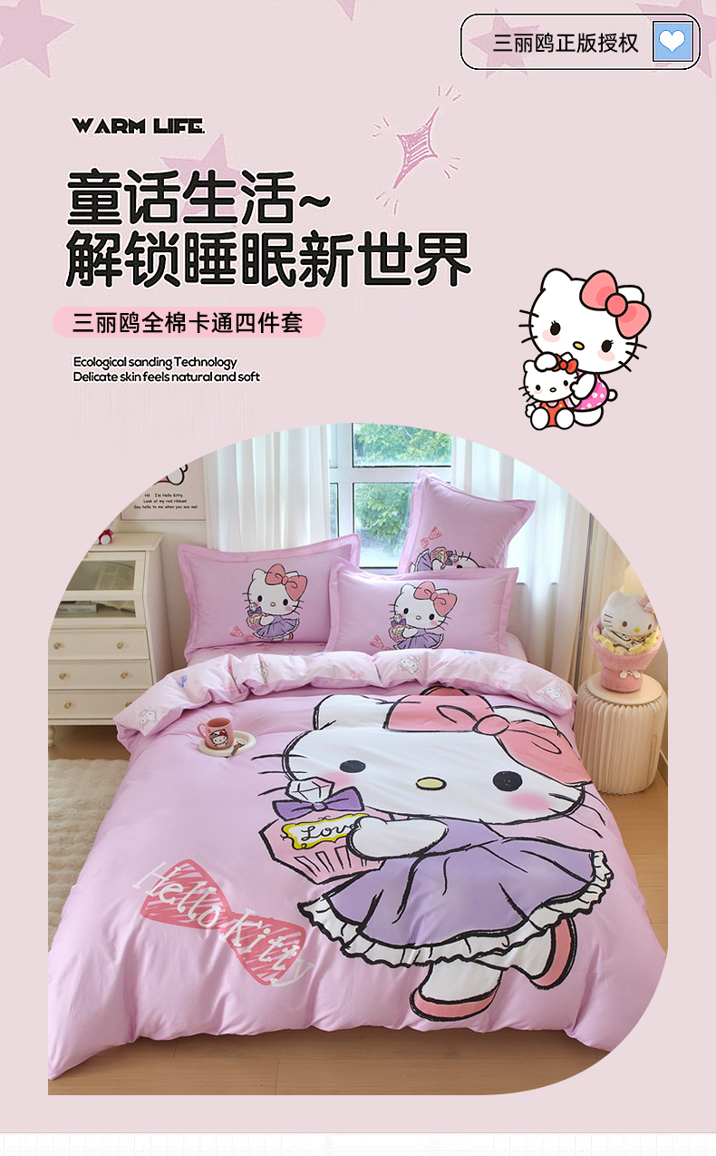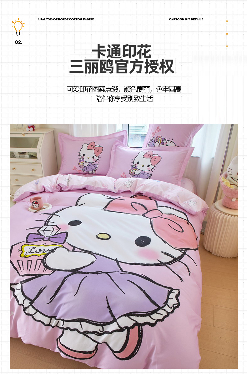 商品名称:蘭菲家纺 2024新款全棉大版卡通三丽鸥四件套 咪咪