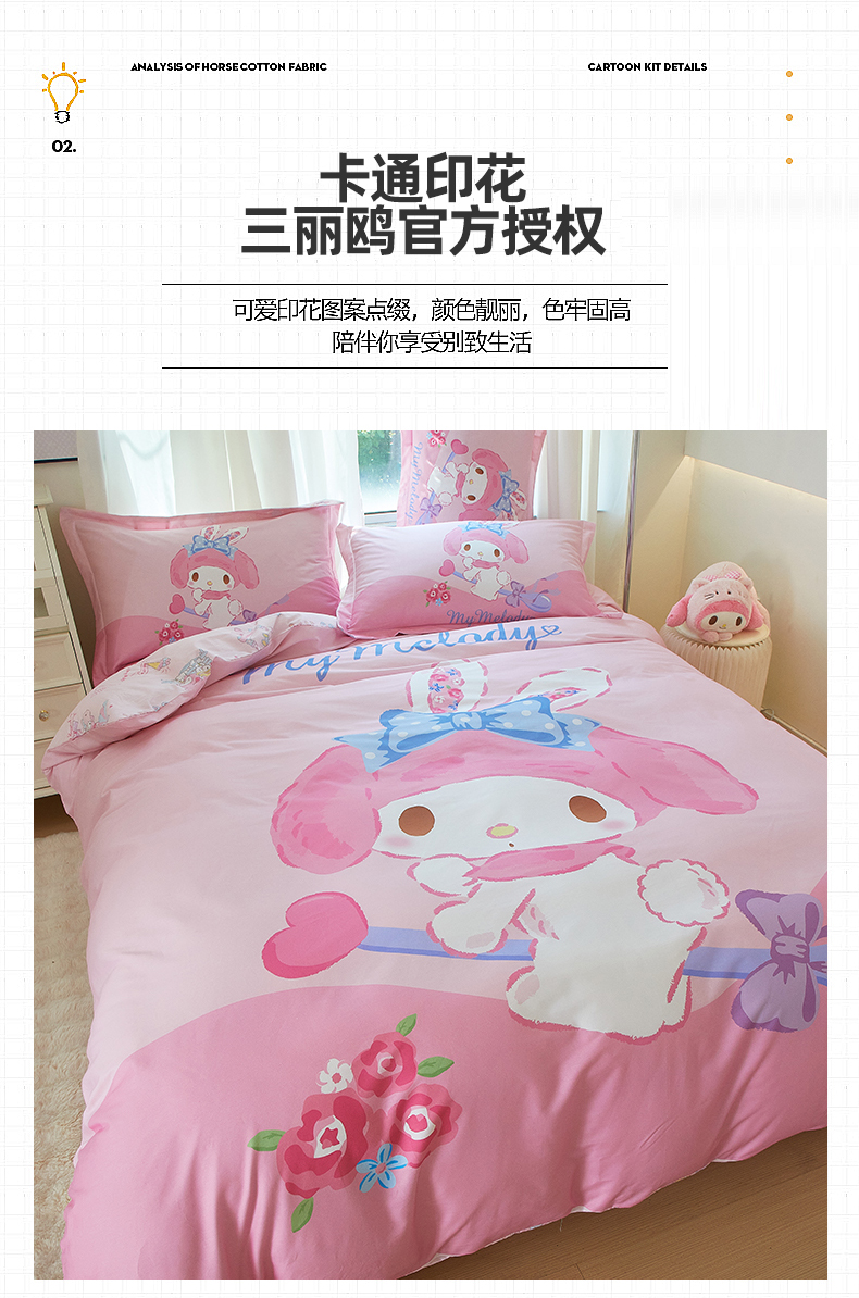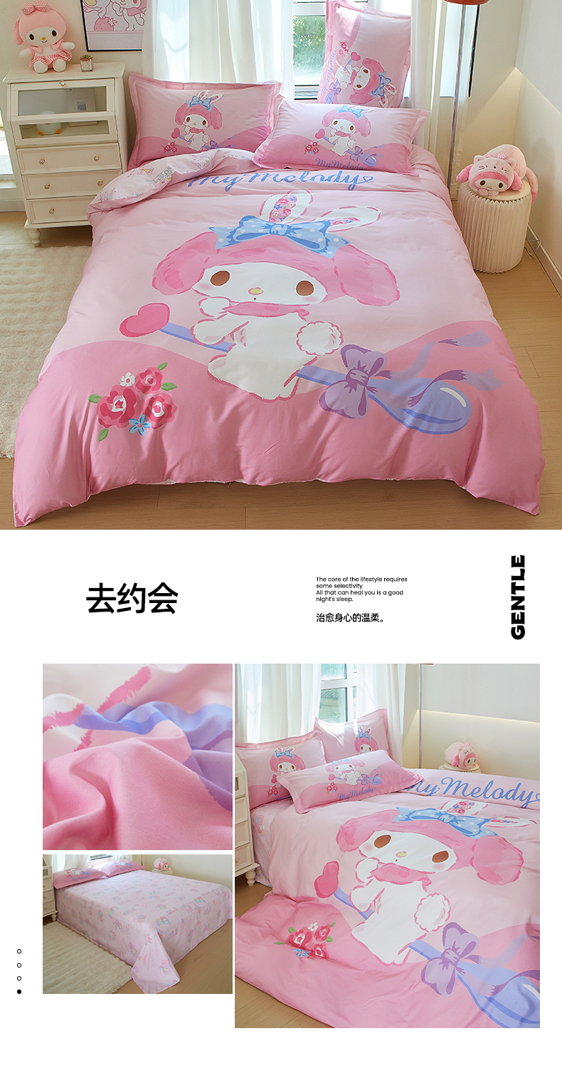 蘭菲家纺 2024新款全棉大版卡通三丽鸥四件套 去约会