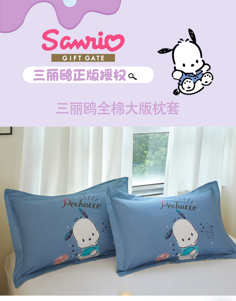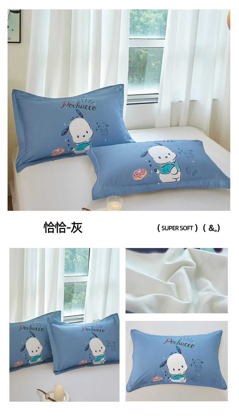 商品名称:蘭菲家纺 2024新款全棉大版卡通三丽鸥单品枕套 恰恰-灰